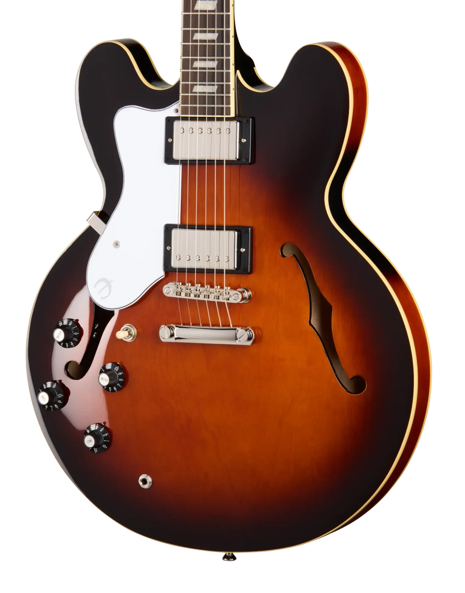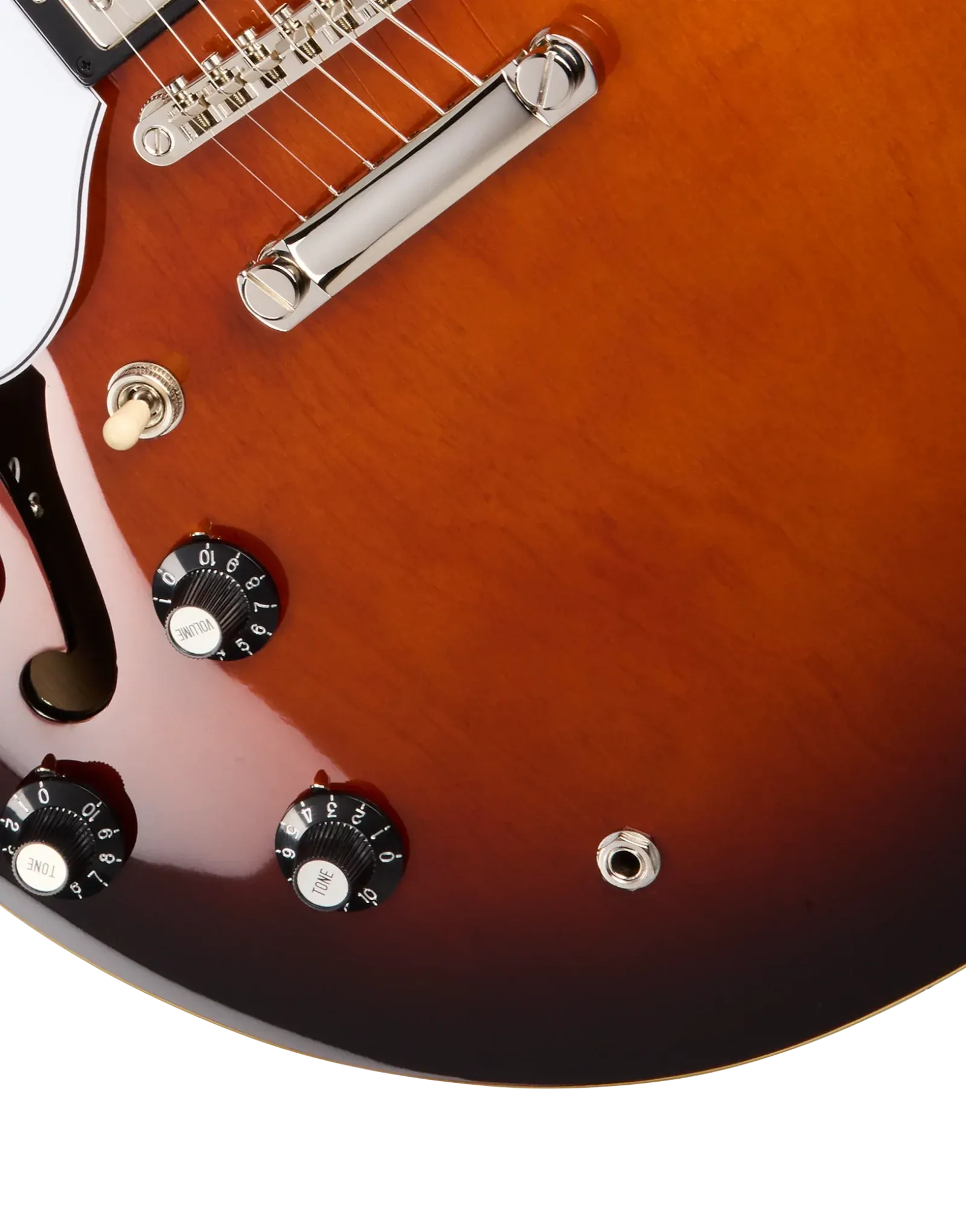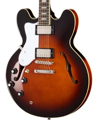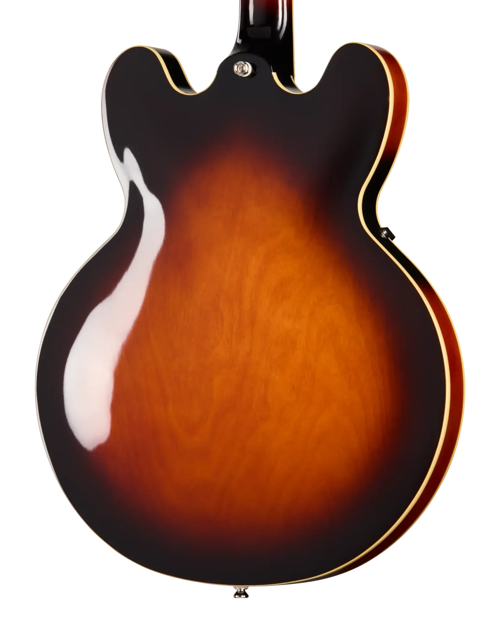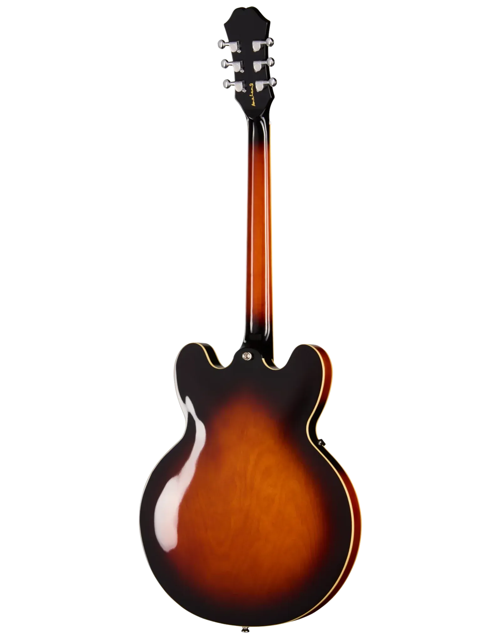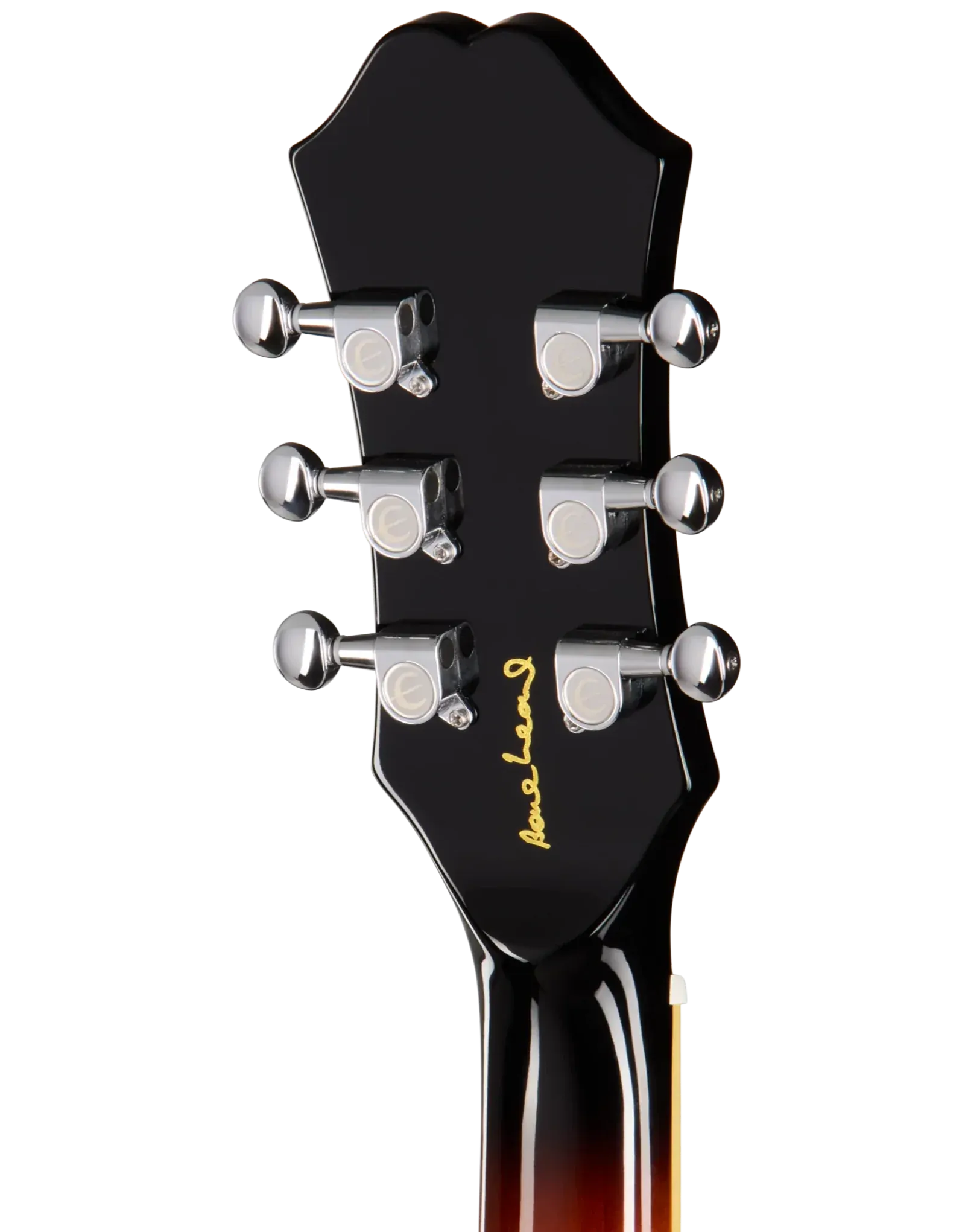 The Epiphone Bonehead Oasis Signature Riviera Left-Handed is a faithful recreation of Paul “Bonehead” Arthurs’ iconic 1984 Riviera — the guitar behind Oasis’s defining 90s sound. With its 5-ply maple body and solid maple centre block, this semi-hollow thinline design delivers the sustain and clarity that powered hits like “Supersonic” and “Cigarettes & Alcohol.” The three-piece maple neck features a SlimTaper C profile and bound rosewood fretboard, while a pair of Alnico Classic PRO humbuckers provide warm, vintage-inspired tone. Finished in Dark Tobacco Sunburst with Bonehead’s signature in gold on the headstock rear, this left-handed Riviera is built for tone, style, and attitude. A hardshell case is included.