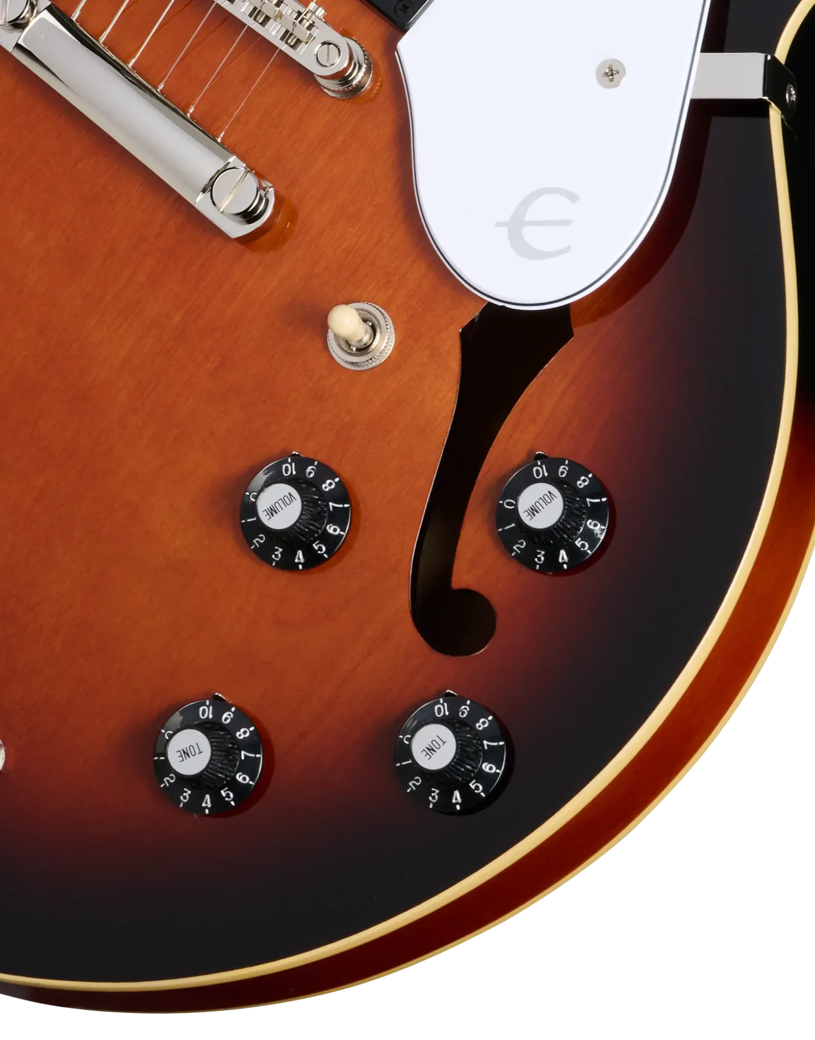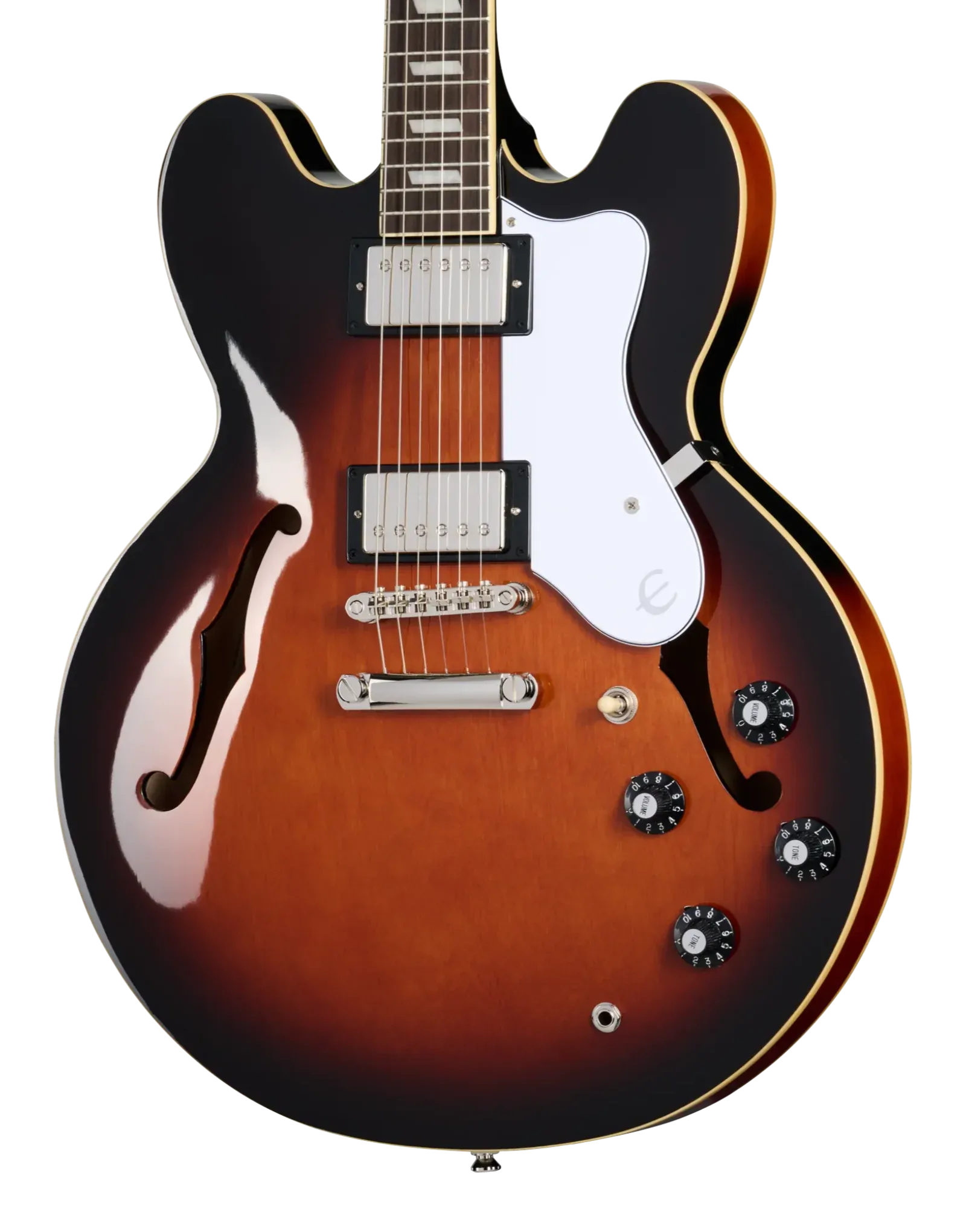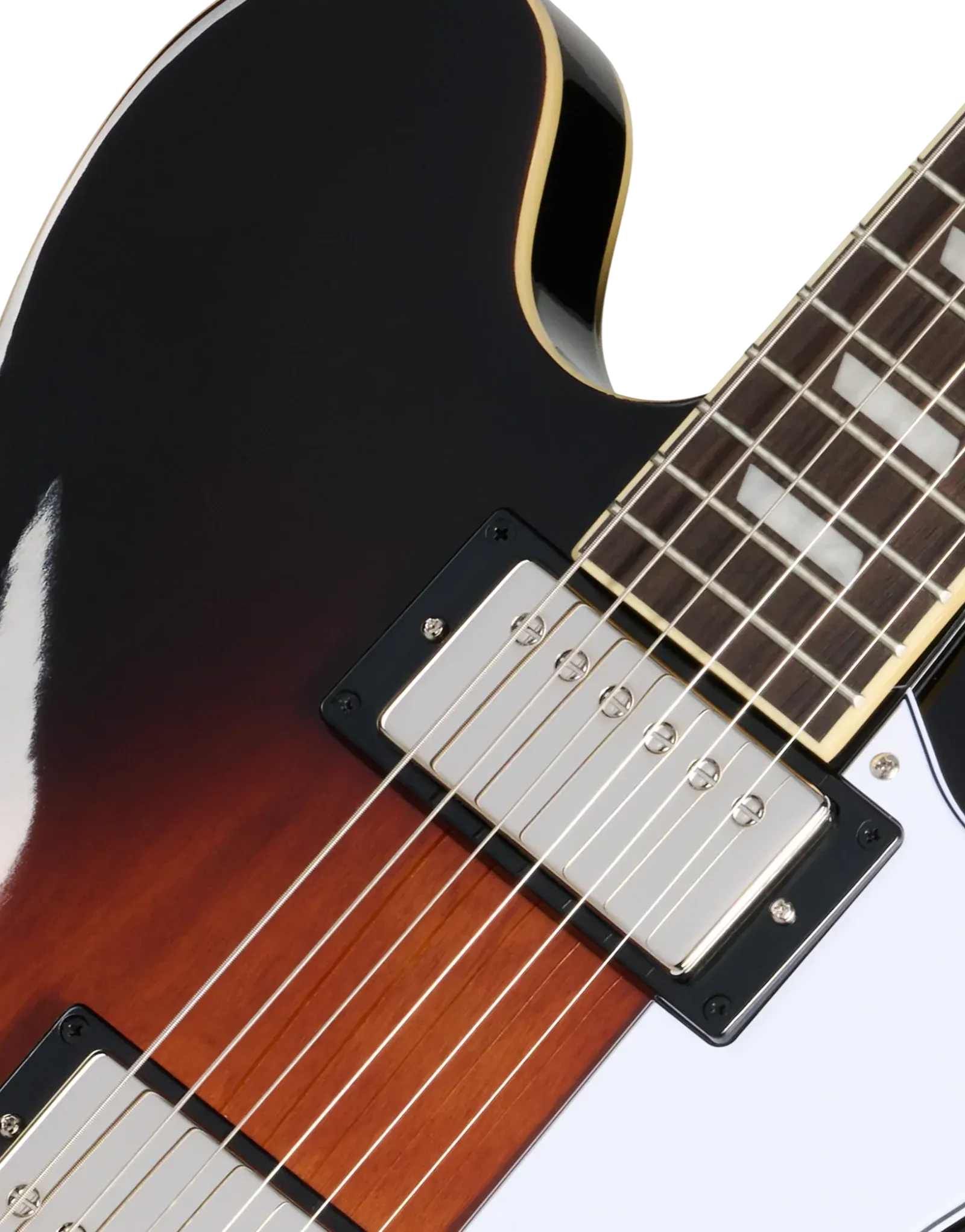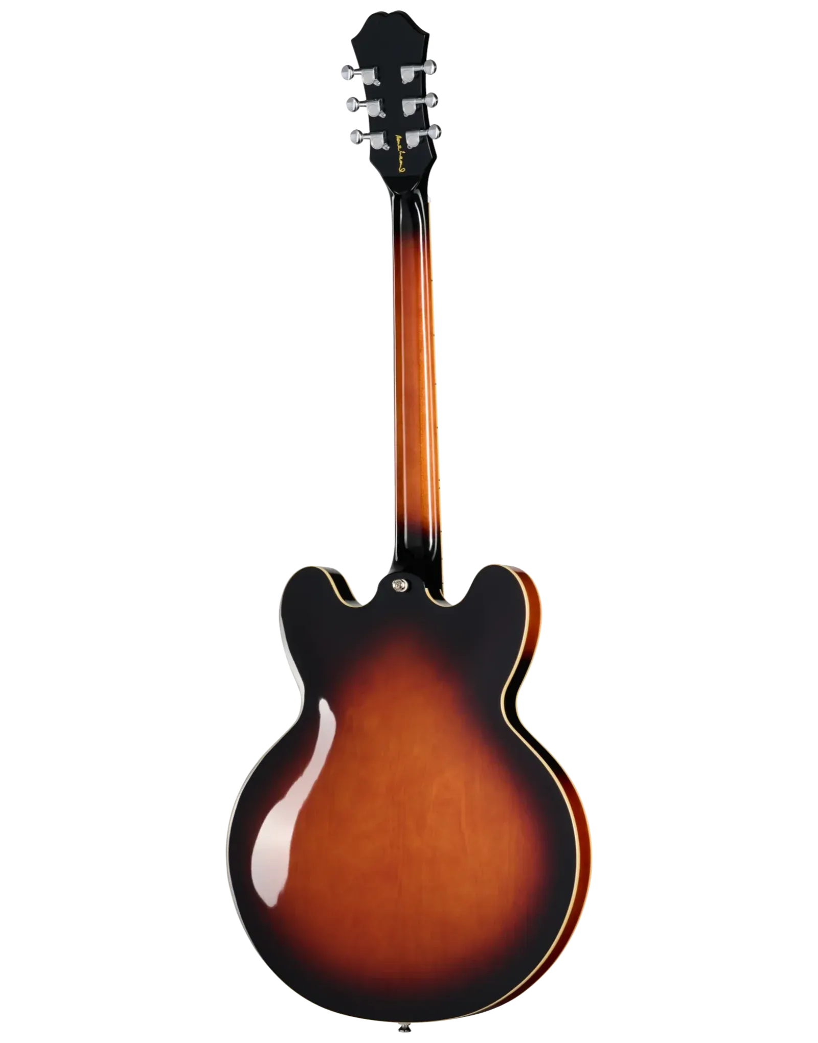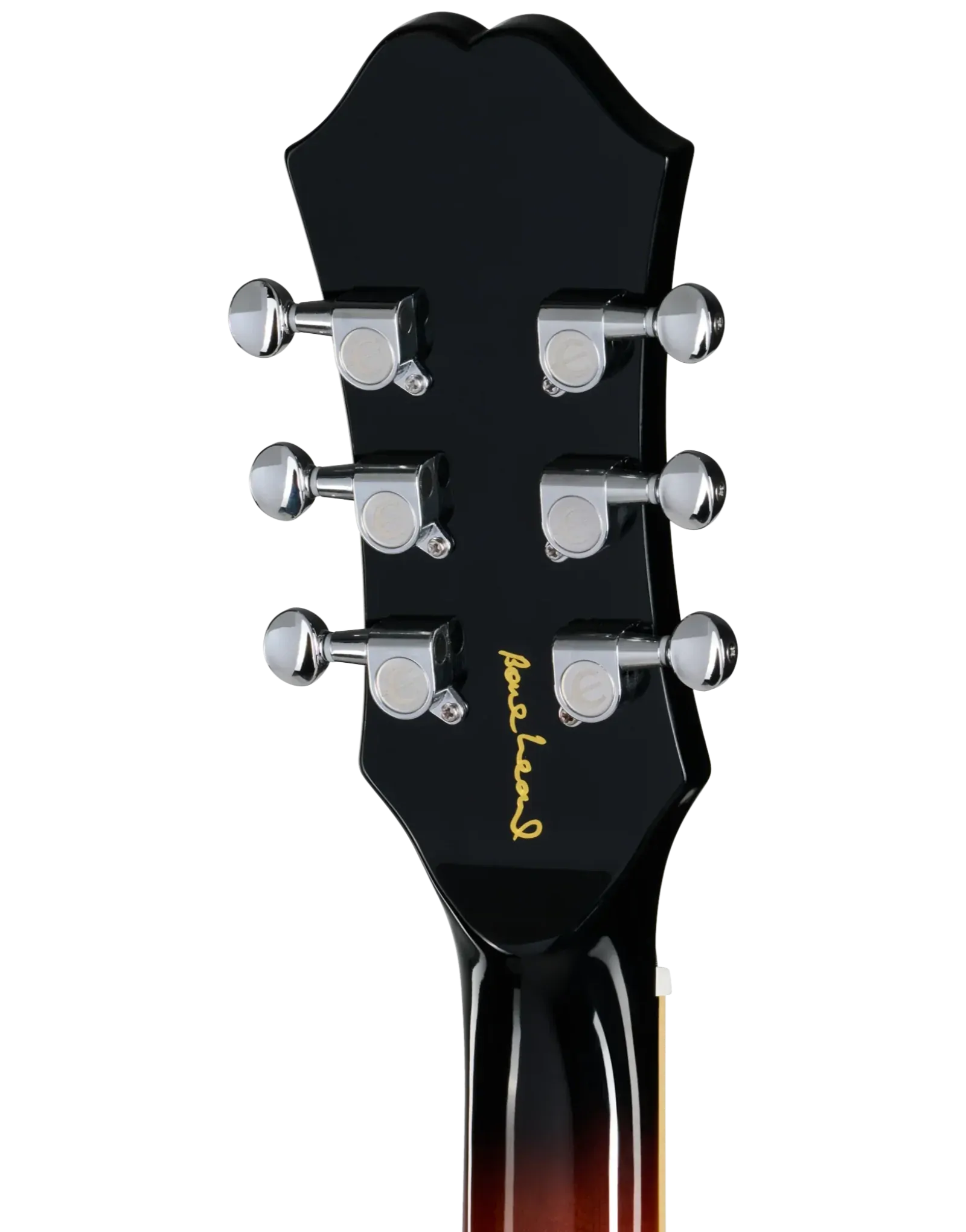The Epiphone Bonehead Oasis Signature Riviera celebrates the unmistakable tone and swagger of Paul “Bonehead” Arthurs, whose Riviera powered Oasis’s biggest anthems. Modelled after his iconic 1984 semi-hollow, this thinline masterpiece features a 5-ply maple body with a solid maple centre block for rich sustain and reduced feedback. A three-piece maple neck with a SlimTaper C profile and bound rosewood fretboard delivers smooth playability, while a pair of Alnico Classic PRO humbuckers offer warm, articulate tone with vintage character. Finished in Dark Tobacco Sunburst and fitted with Bonehead’s signature on the back of the headstock, this stunning guitar includes a hardshell case for ultimate protection.