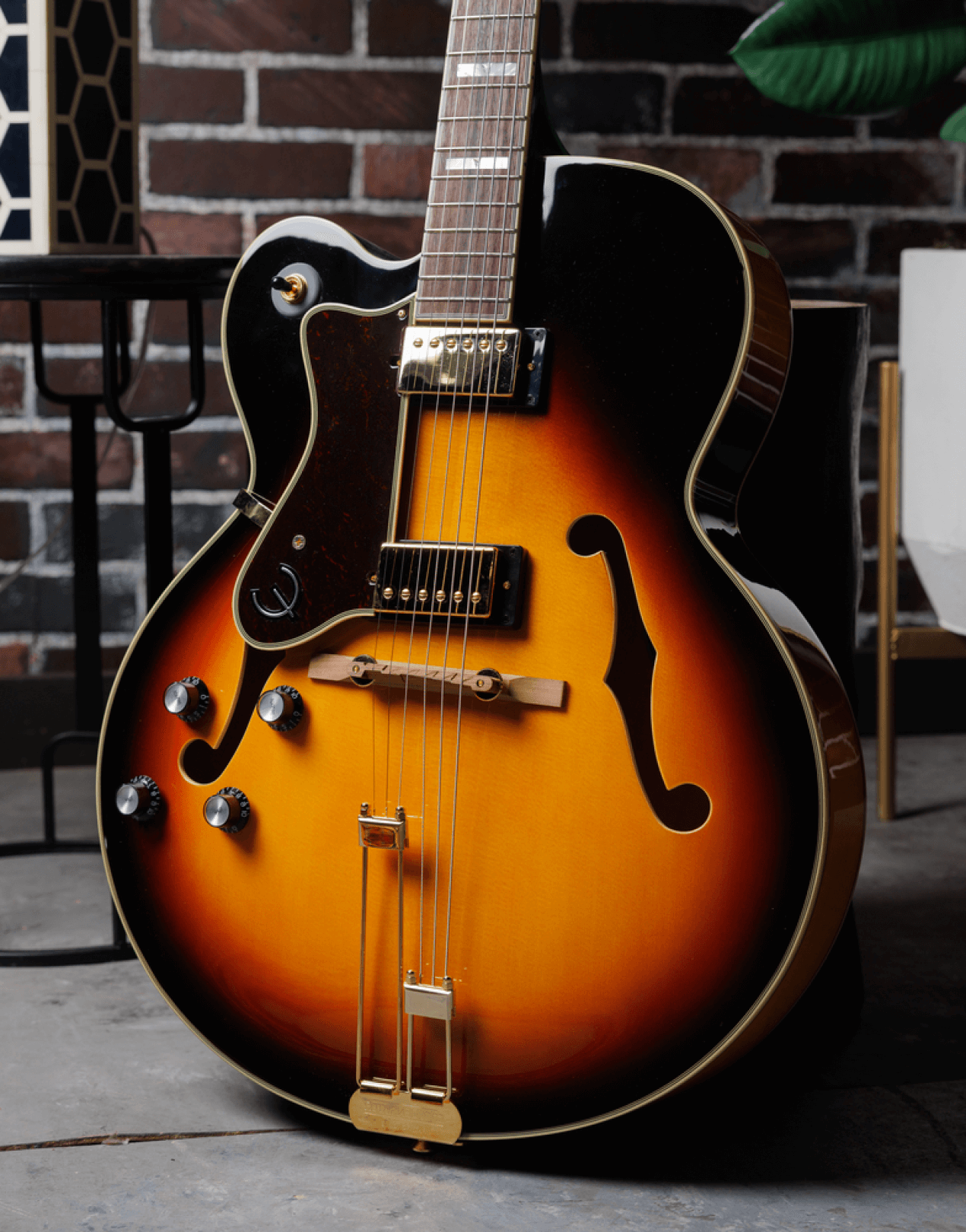 At Riffs & Licks Music, we think the Epiphone Broadway Traditional Hollowbody Left-Handed Vintage Sunburst is a testament to timeless jazz heritage, now tailored for left-handed musicians to create their next musical masterpiece.