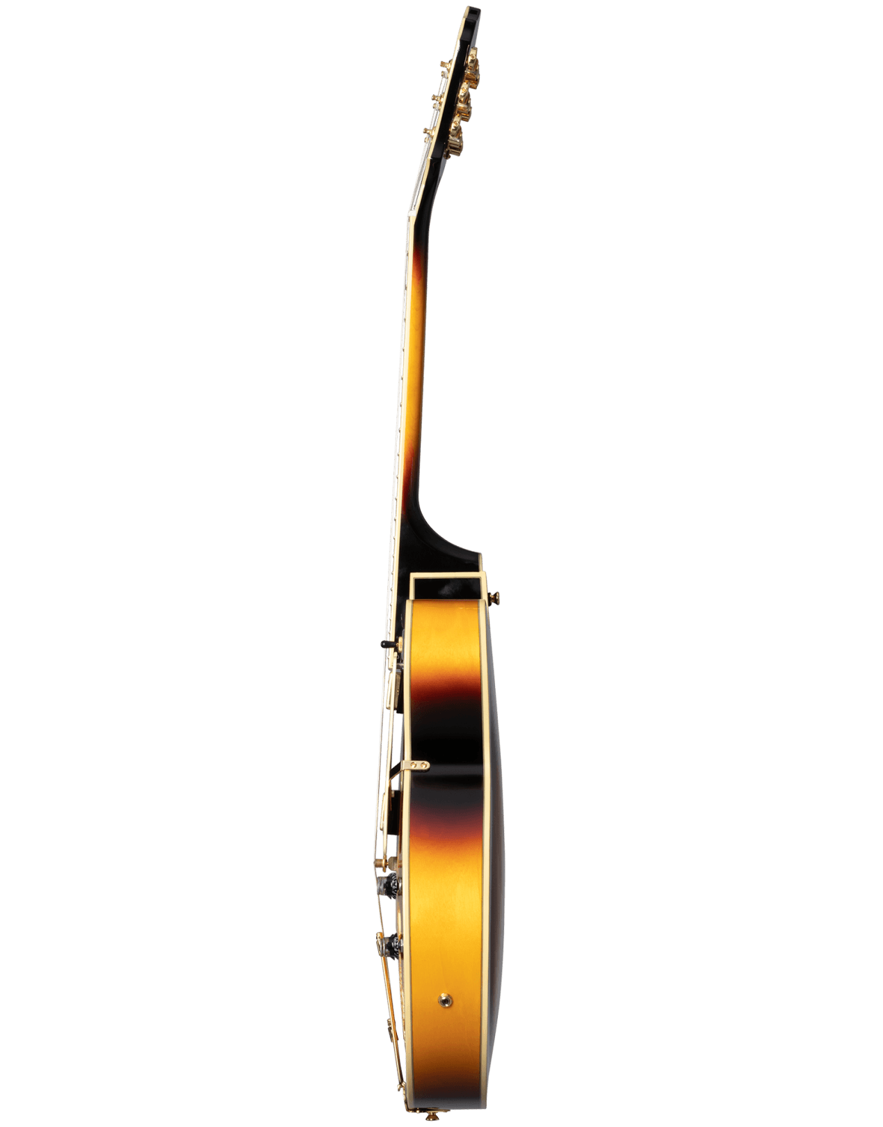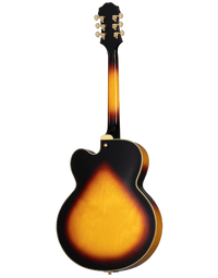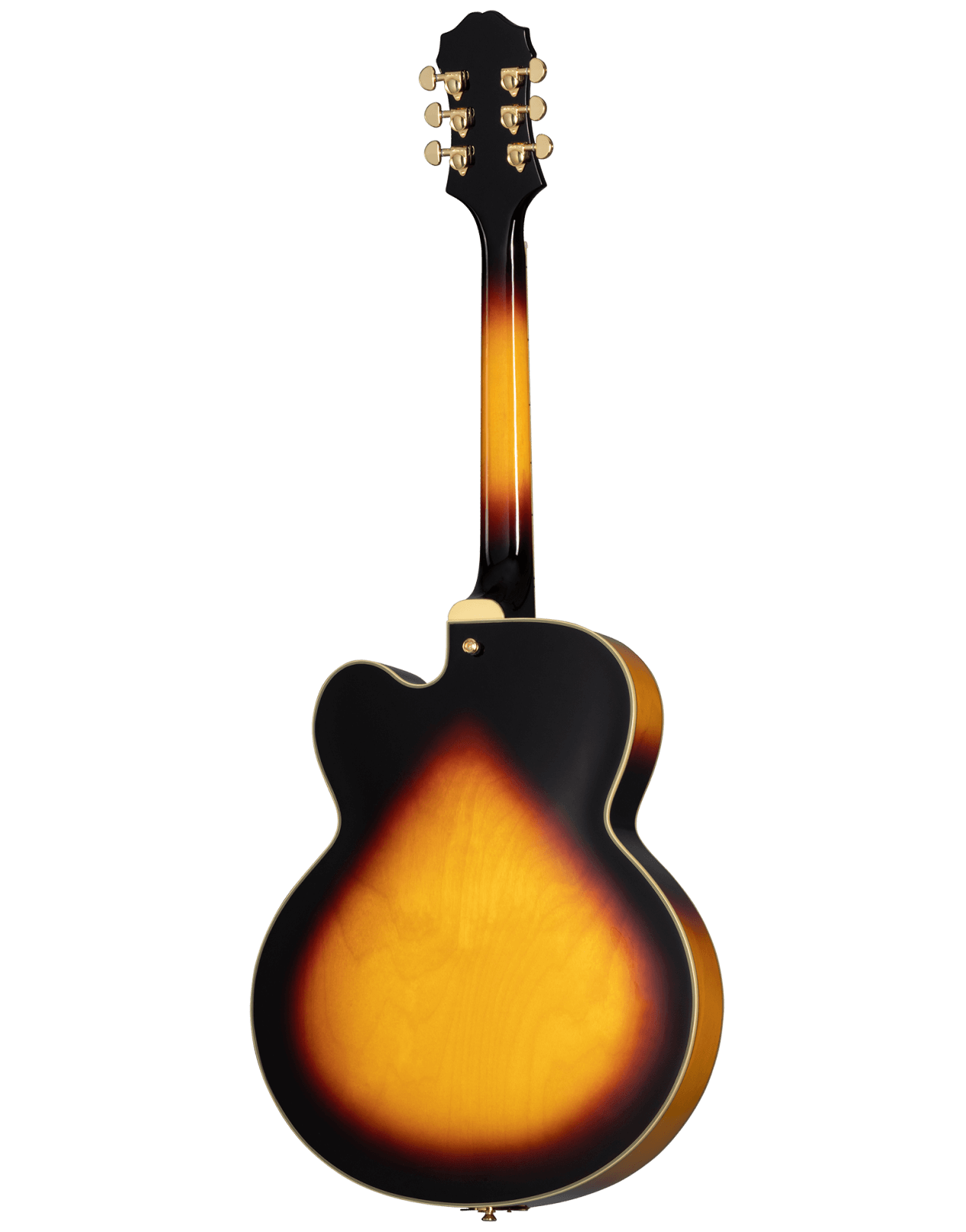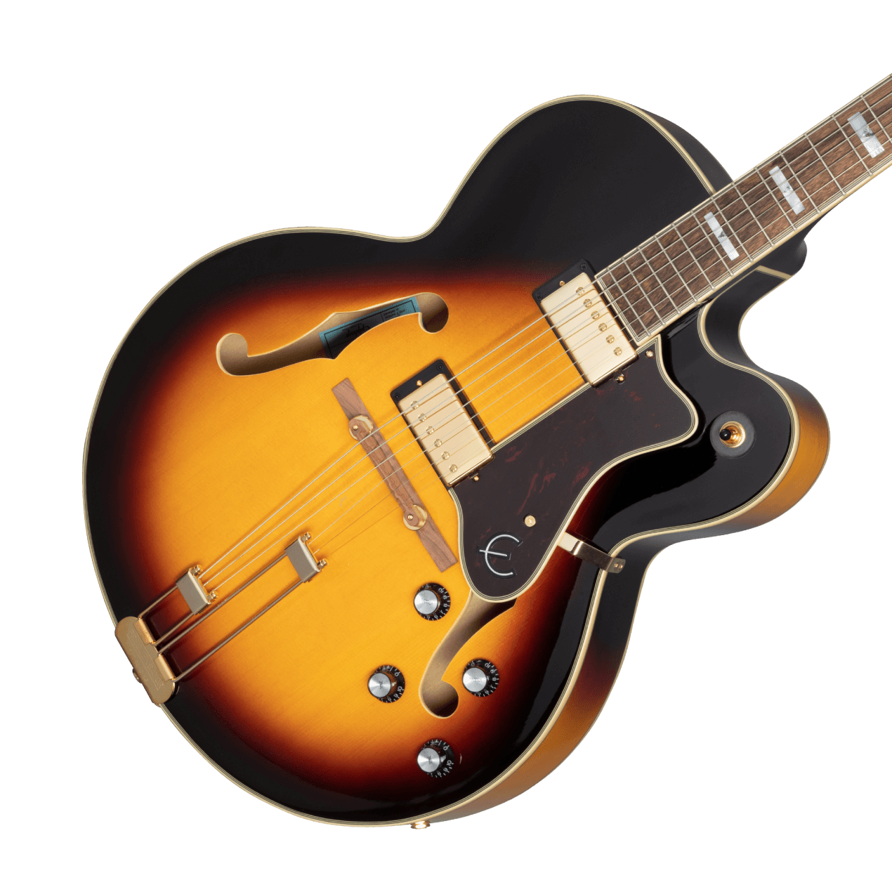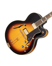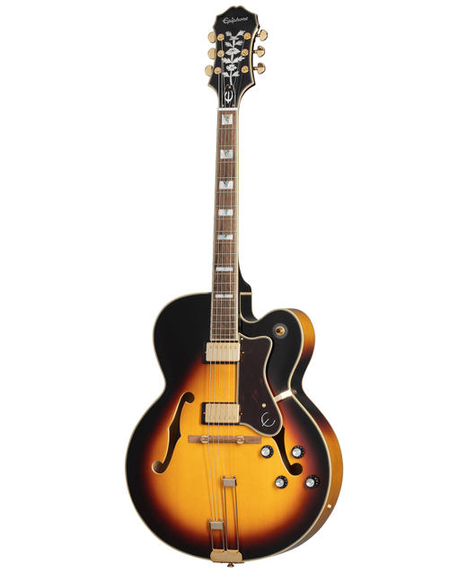 Experience the timeless allure of the Epiphone Broadway Traditional Hollowbody in Vintage Sunburst. For over 70 years, this legendary guitar has been cherished by jazz enthusiasts and embraced by those seeking a versatile instrument for various genres, including roots rock. Equipped with Alnico Classic PRO humbuckers, a vintage-style gold Frequensator Split Trapeze tailpiece, and premium tuners, this instrument exudes elegance and offers exceptional tone. The gold hardware and exquisite details like mother-of-pearl and abalone fretboard and headstock inlays further enhance its classic appeal.