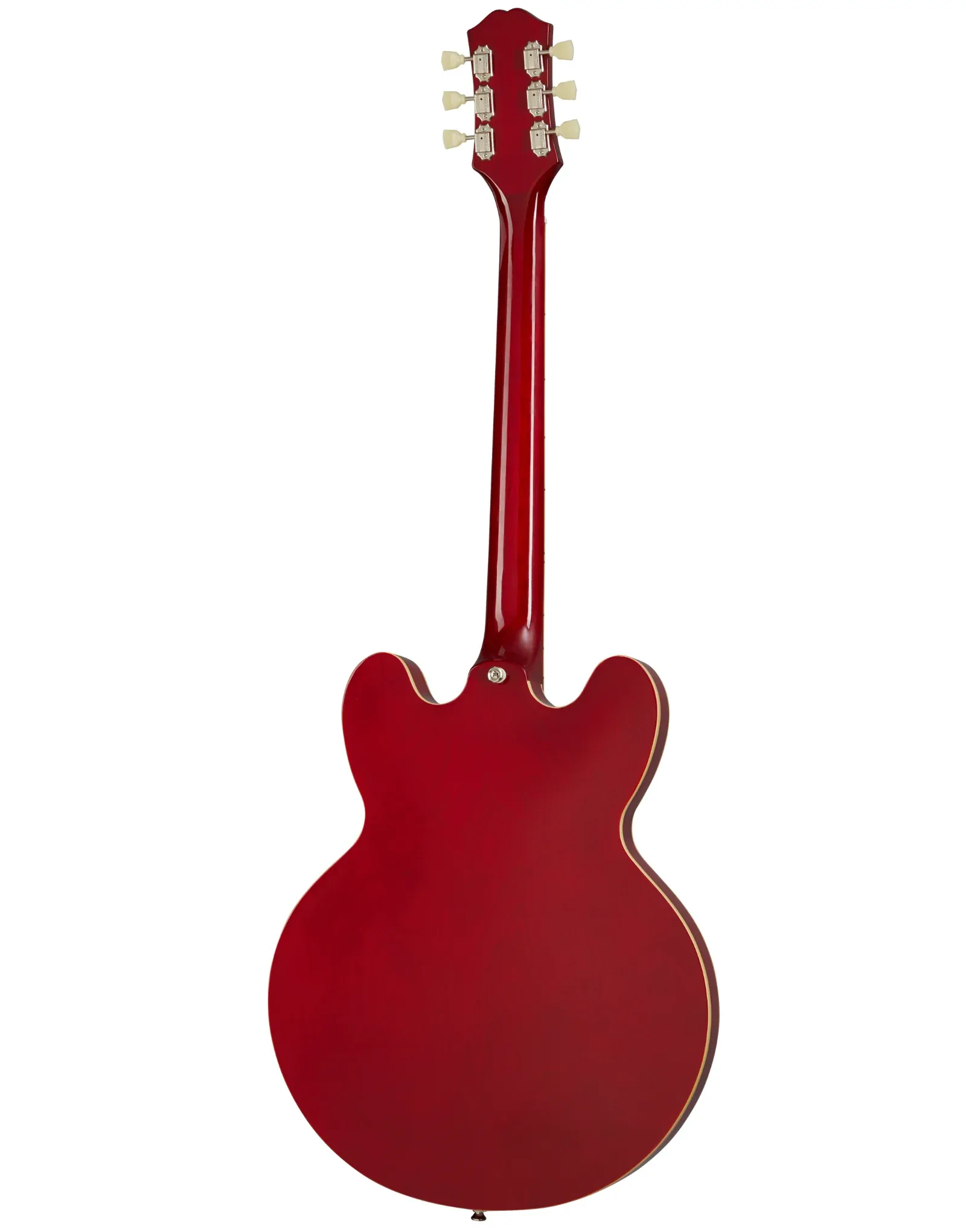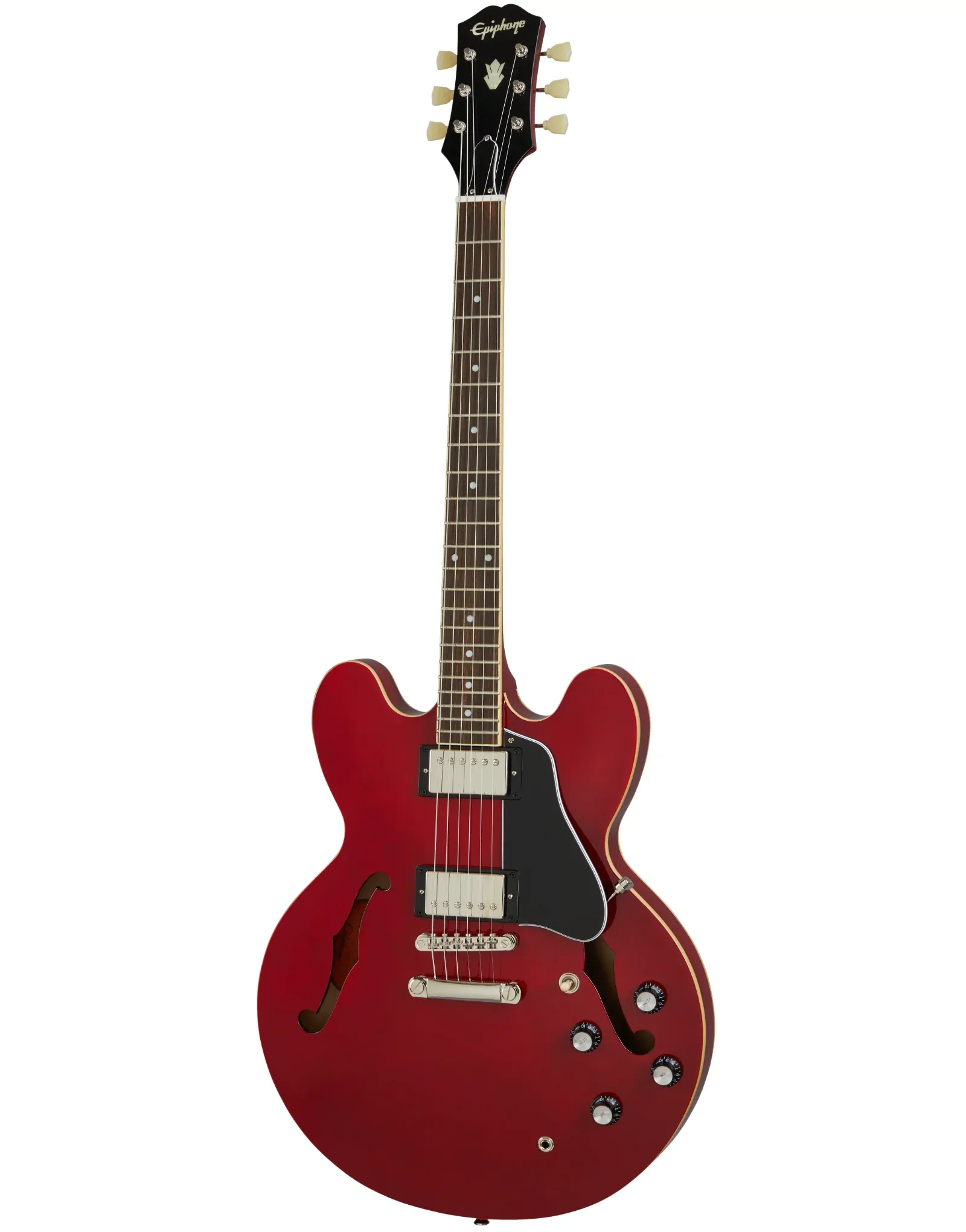 The Epiphone ES-335, finished in Cherry, is Epiphone's version of the iconic ES-335, which has inspired musicians and shaped the history of music for more than six decades. The ES-335 has been the benchmark against which other semi-hollow bodies are compared, ever since its first appearance in '58. The Epiphone ES-335 is no exception to this rule, offering the classic and sought after tone of the ES-335 at an affordable price.