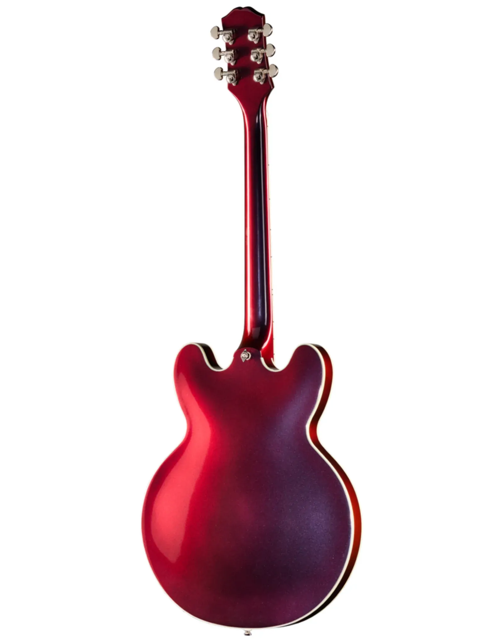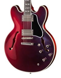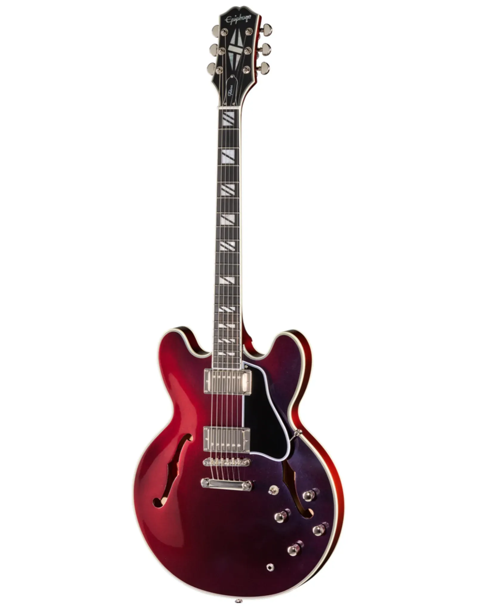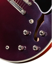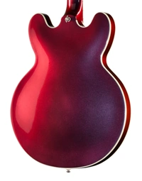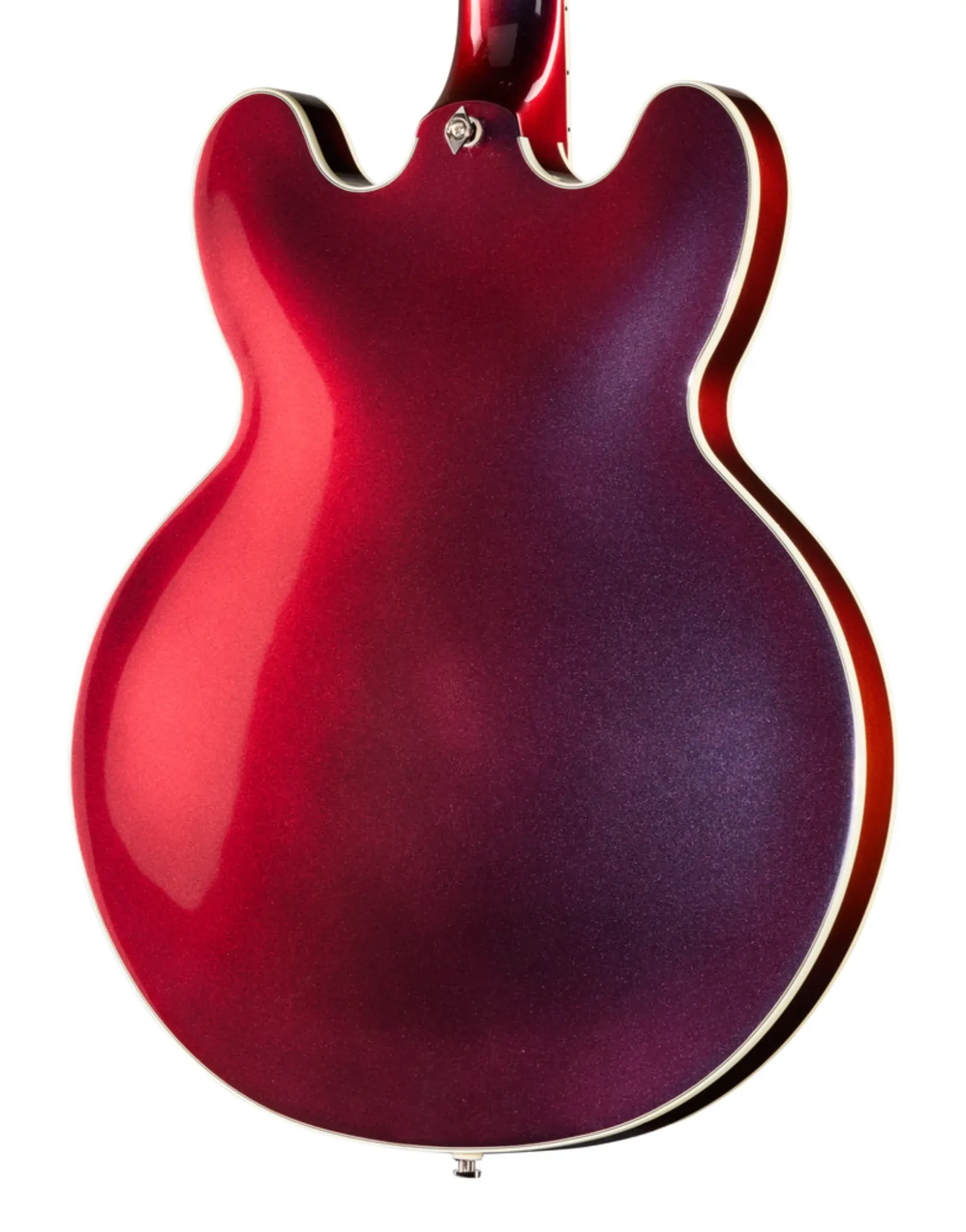 The Epiphone Futura ES-355 Thinline Semi-Hollowbody Midnight Ember Shift leans toward a more controlled semi-hollow response, making it easier to manage once you start adding gain. The layered maple and poplar body with a centre block keeps the low end tight and the top end clear, so chords stay separated when you’re playing with a band or stacking parts in the studio.