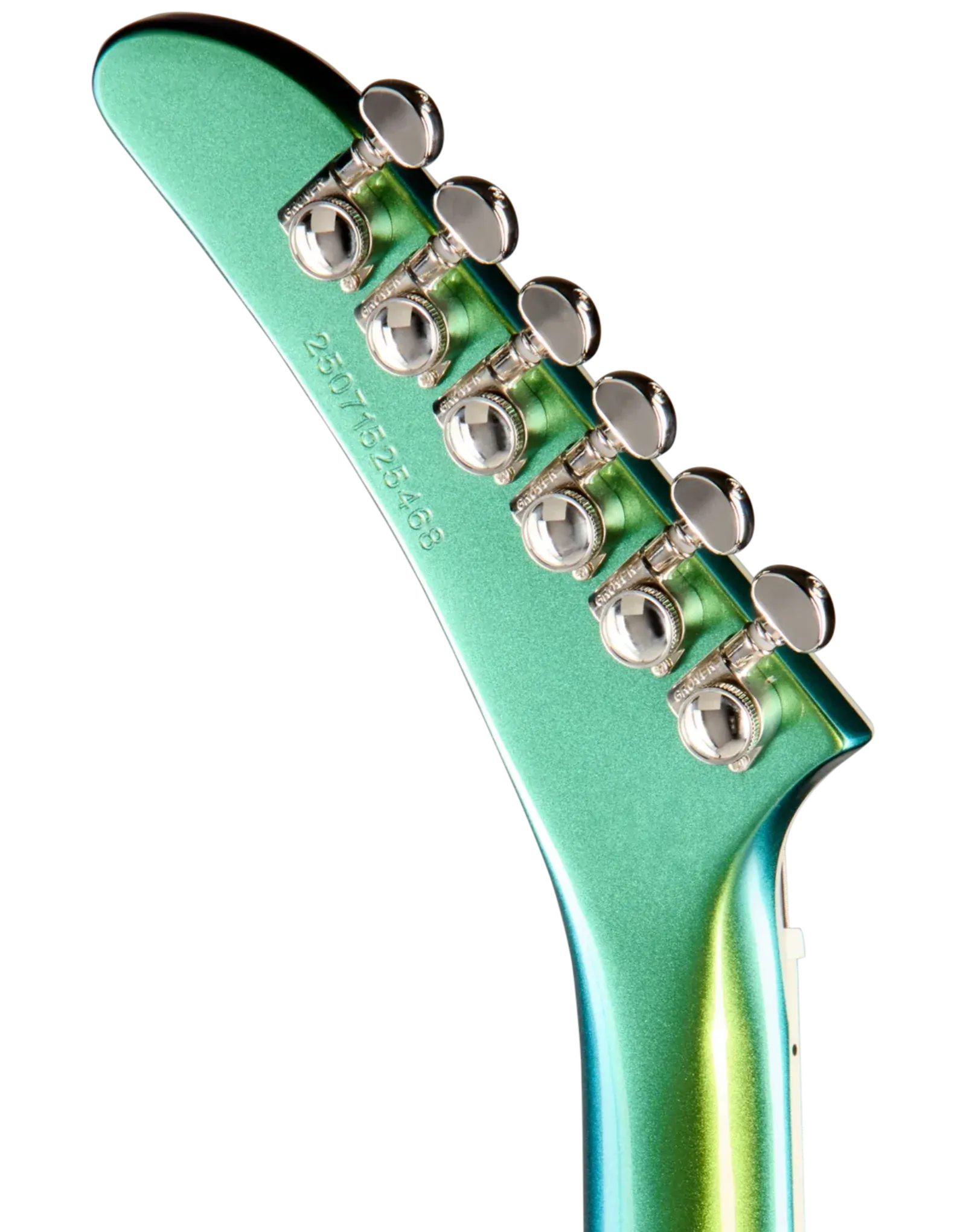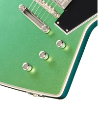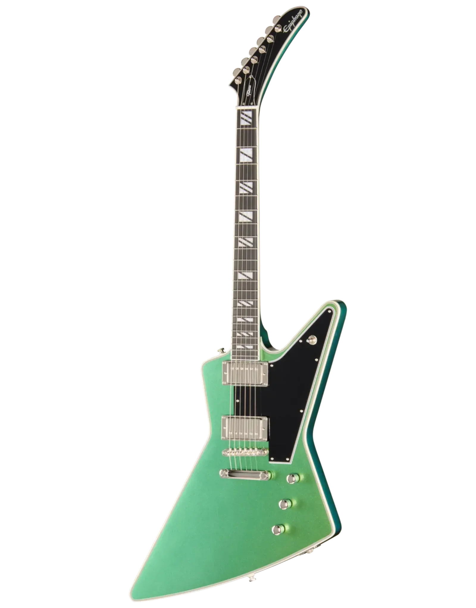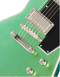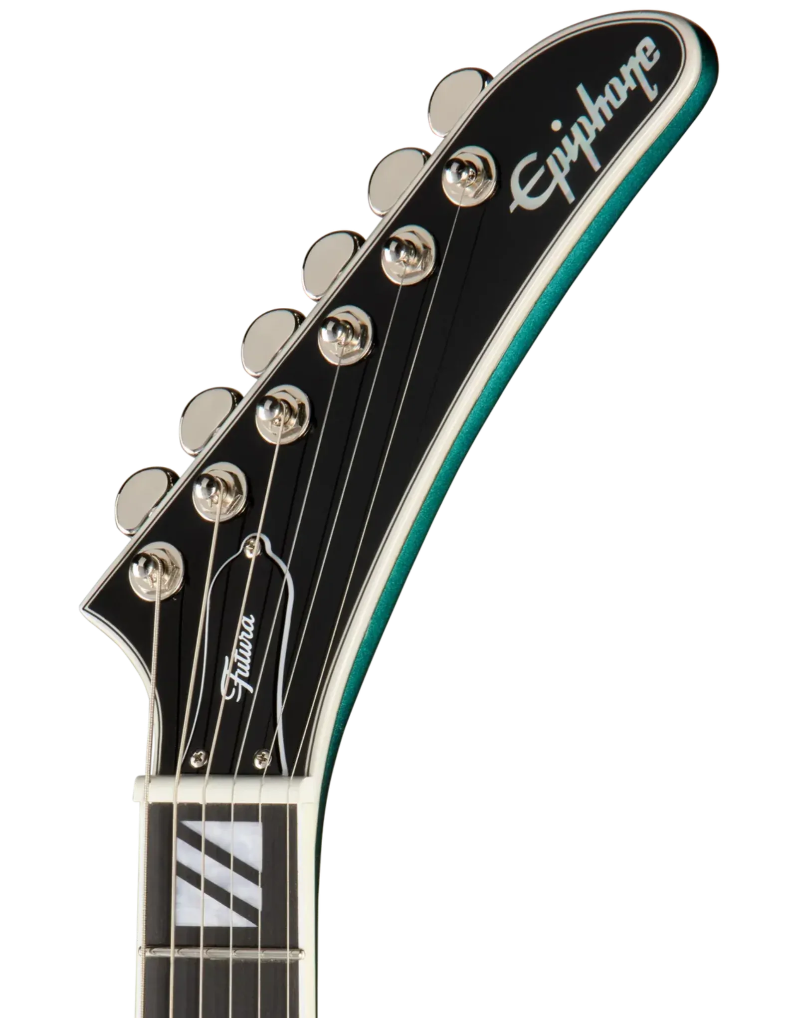 The Epiphone Futura Explorer Custom is built around a solid mahogany body that leans into a heavier, more direct response. There’s no weight relief here, so the low end feels firm and planted, and notes carry with a bit more authority when you start pushing gain, perfect for players who want something that holds together when things get loud.
