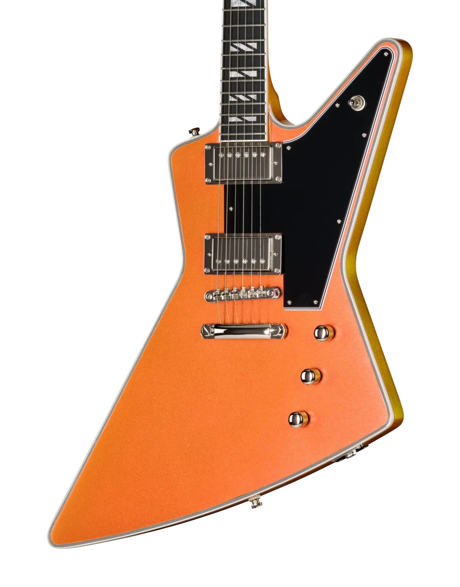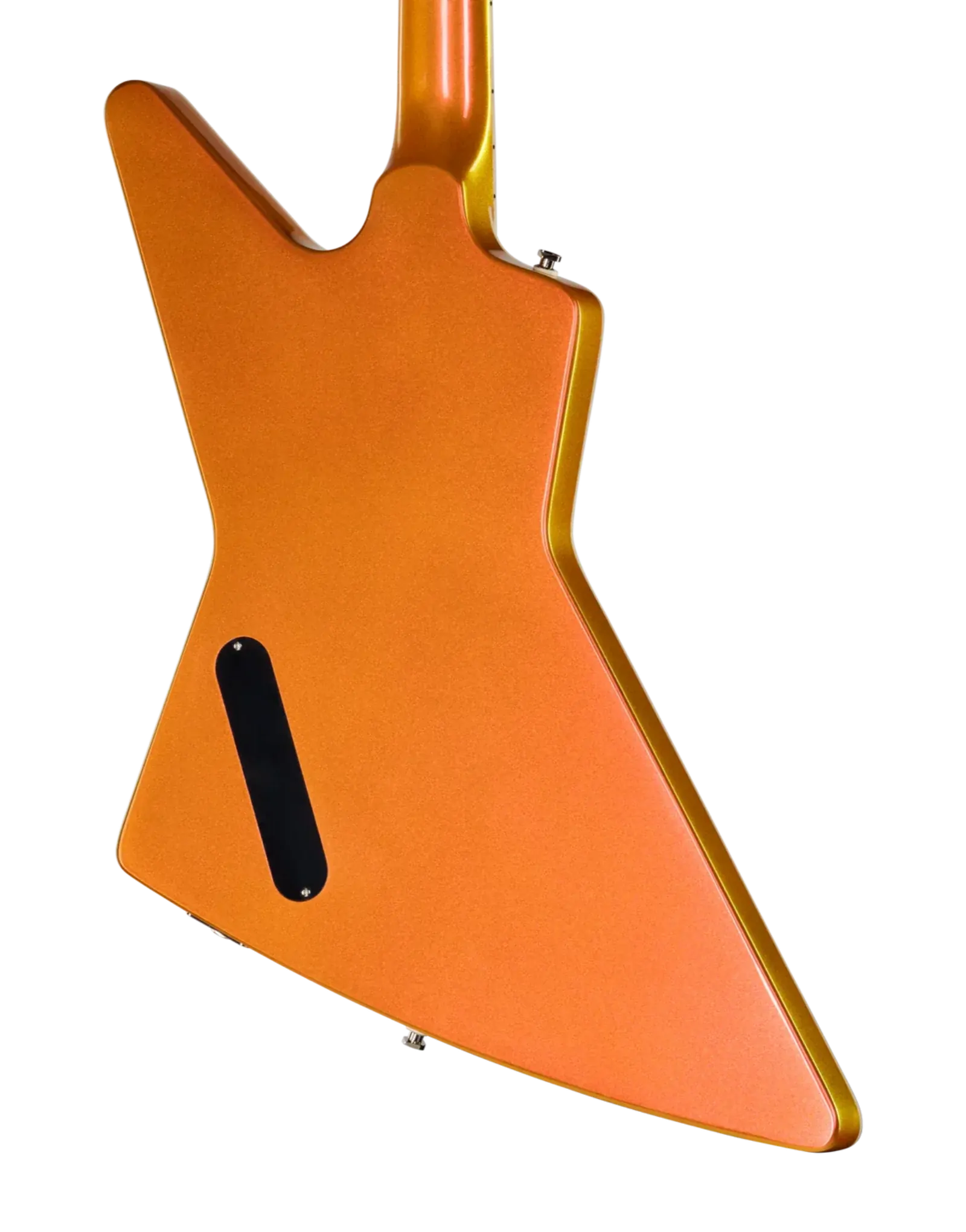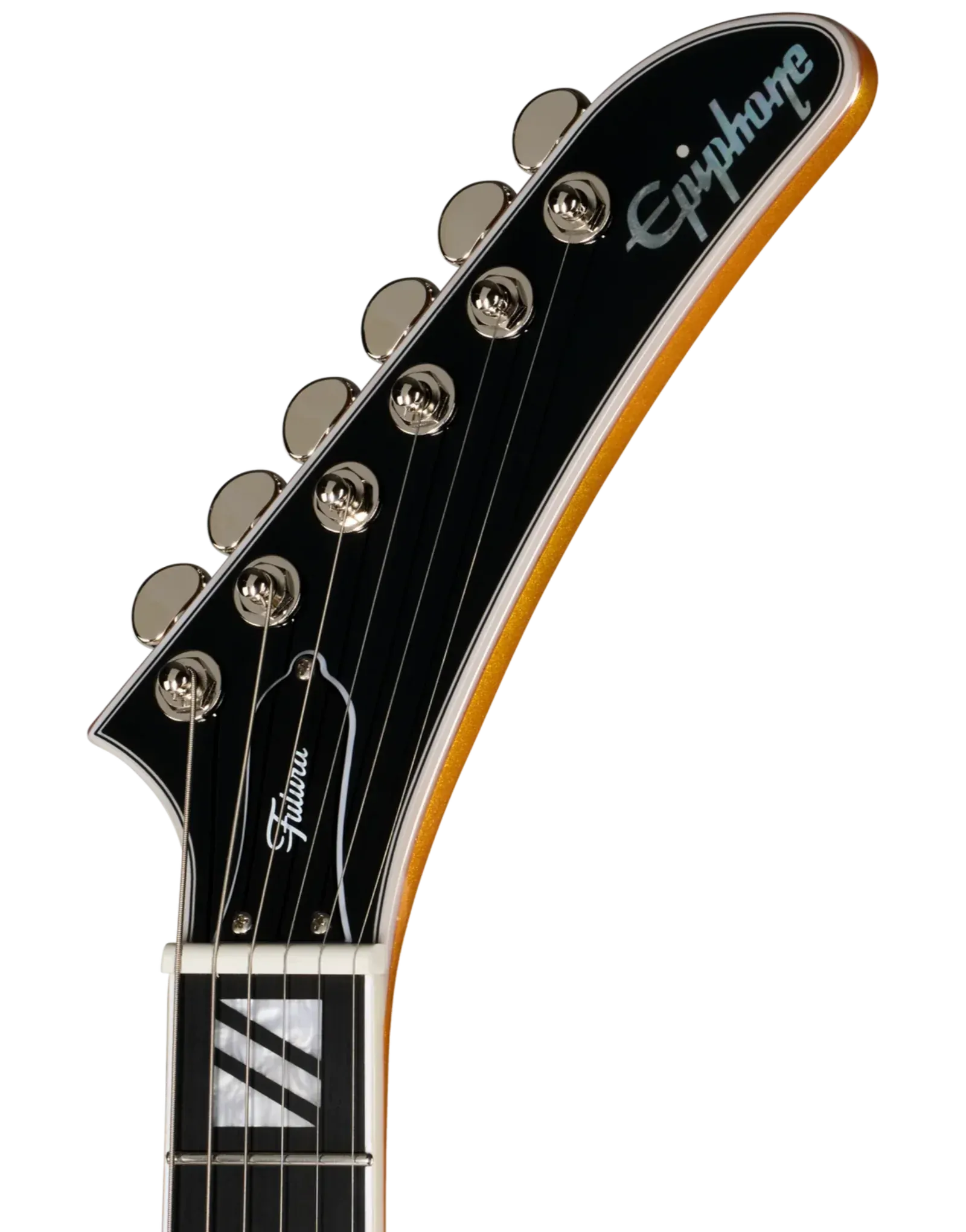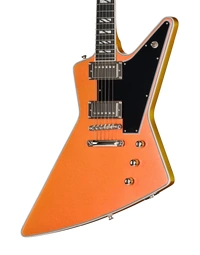 The Epiphone Futura Explorer Custom Firestorm Shift leans into a solid, grounded feel thanks to its mahogany body with no weight relief. That added mass gives the low end a bit more authority, so riffs stay tight and defined when you push gain.