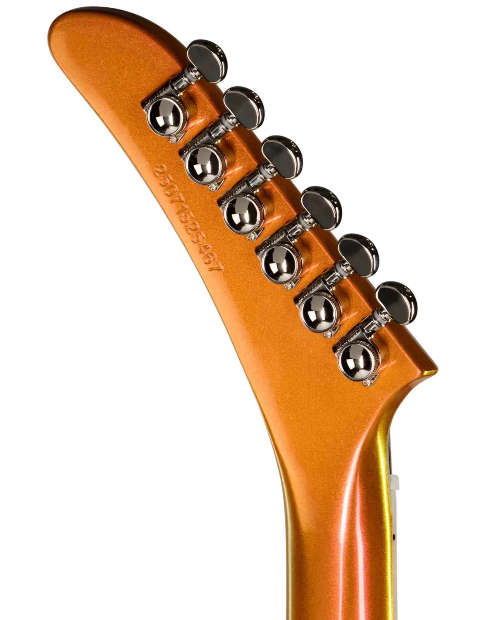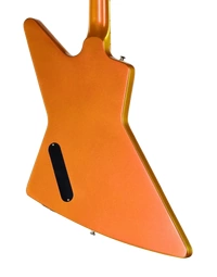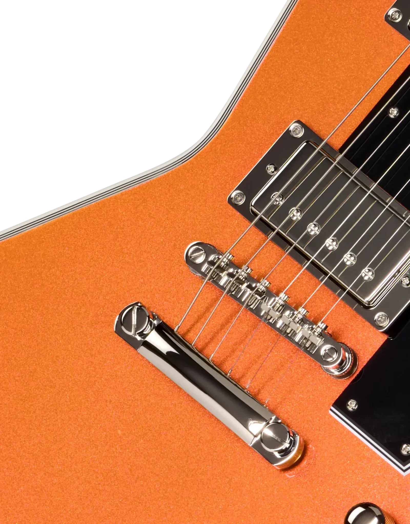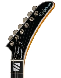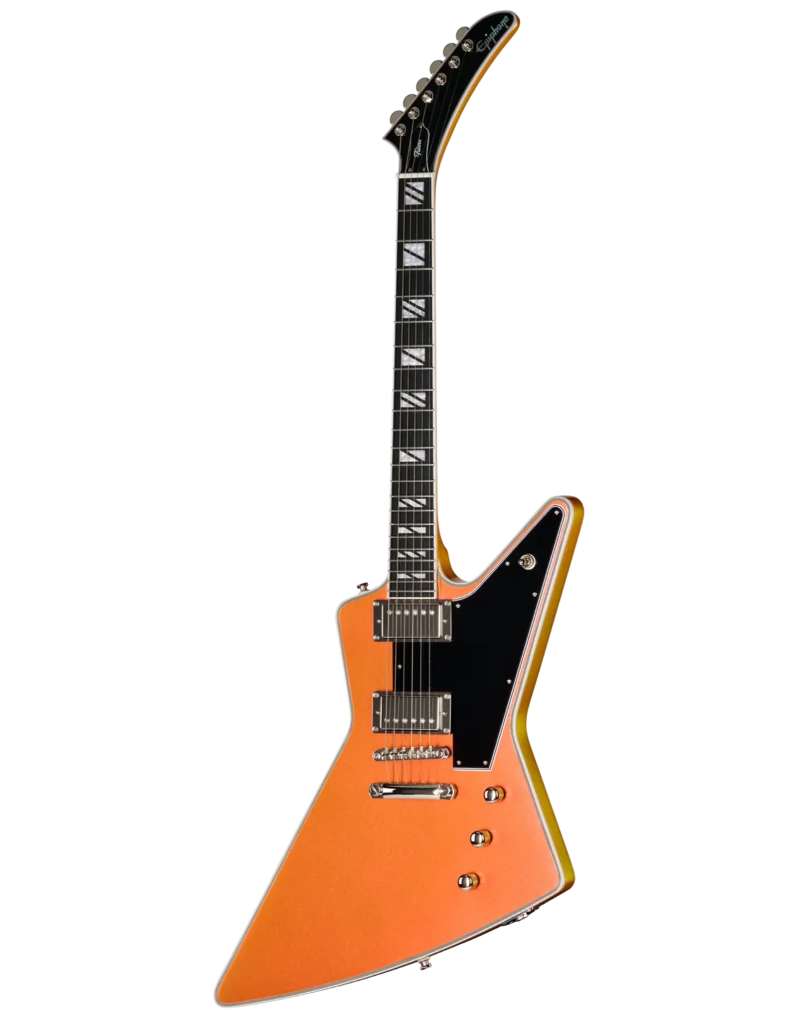 The Epiphone Futura Explorer Custom Firestorm Shift leans into a solid, grounded feel thanks to its mahogany body with no weight relief. That added mass gives the low end a bit more authority, so riffs stay tight and defined when you push gain.