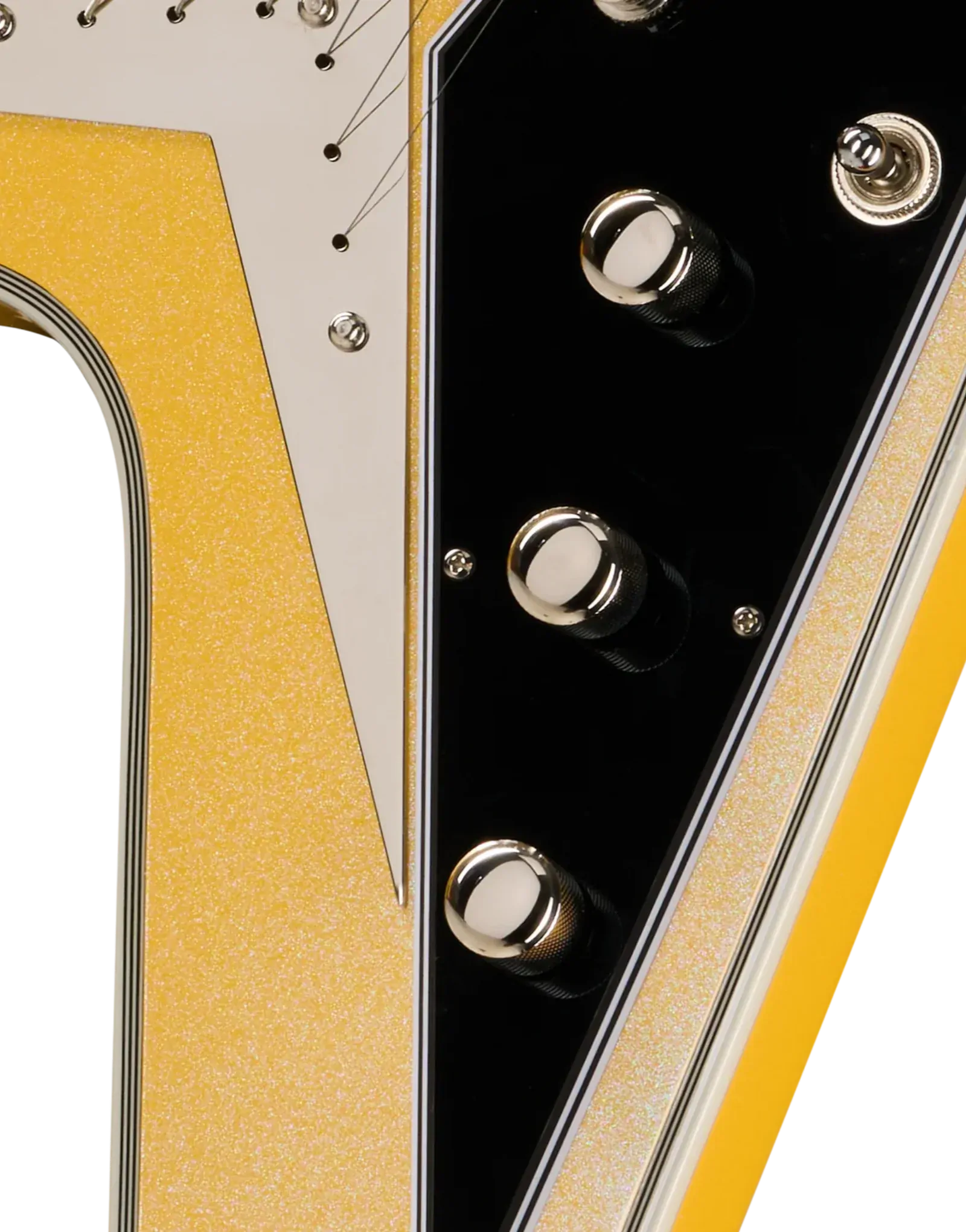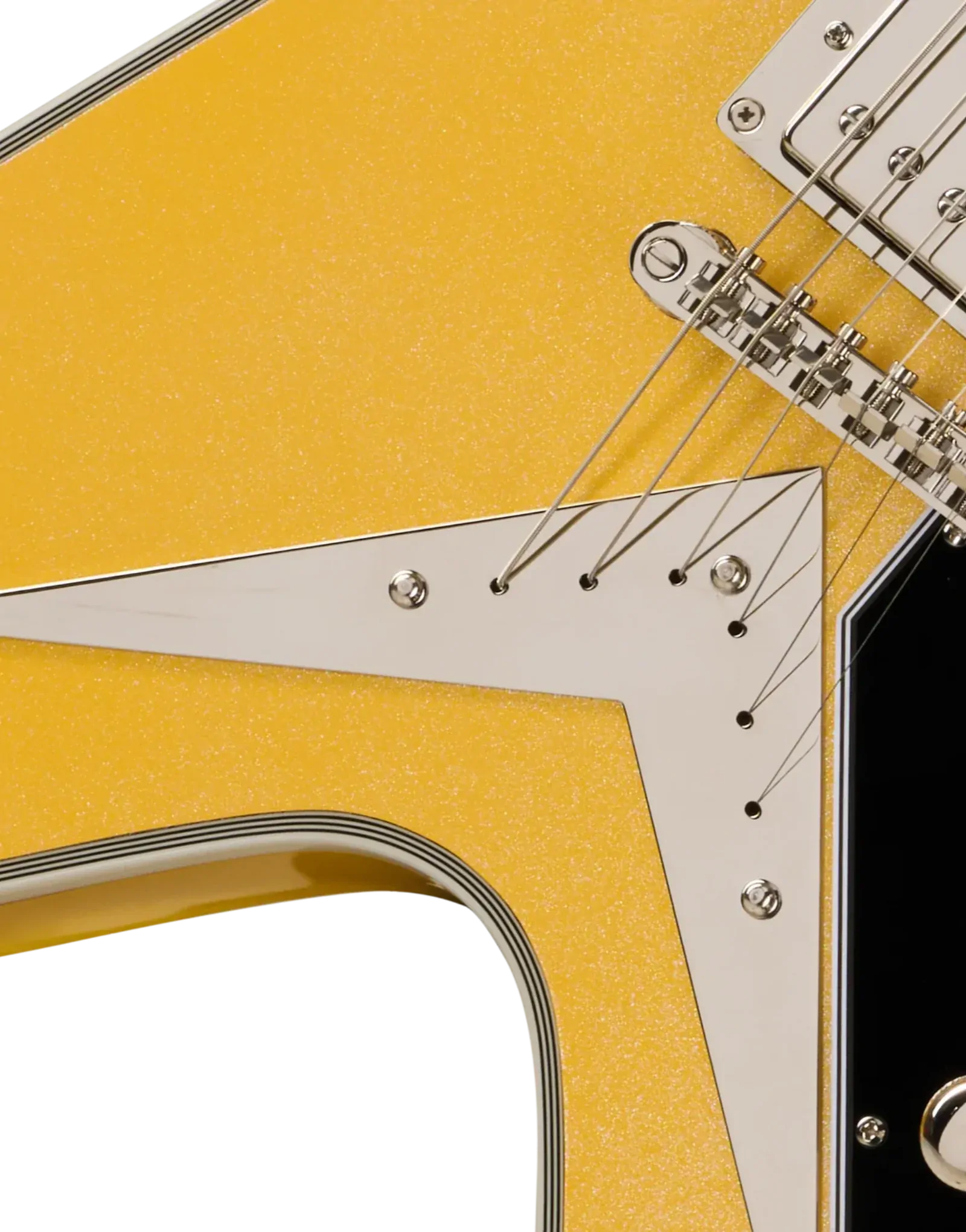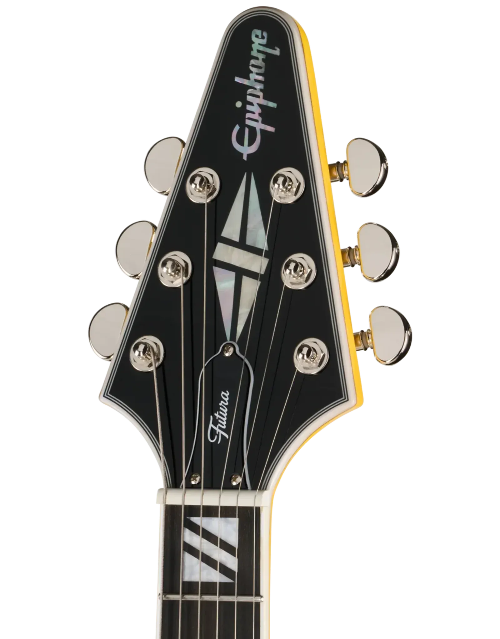 The Epiphone Futura Flying V Custom Solaris Shift has a focused, cutting response that makes it easy to keep parts clear, even as you add gain. There’s a strong attack to each note, so riffs stay punchy and don’t get lost in the mix. It works well when you’re playing tighter rhythm parts or anything where clarity matters more than sheer thickness.