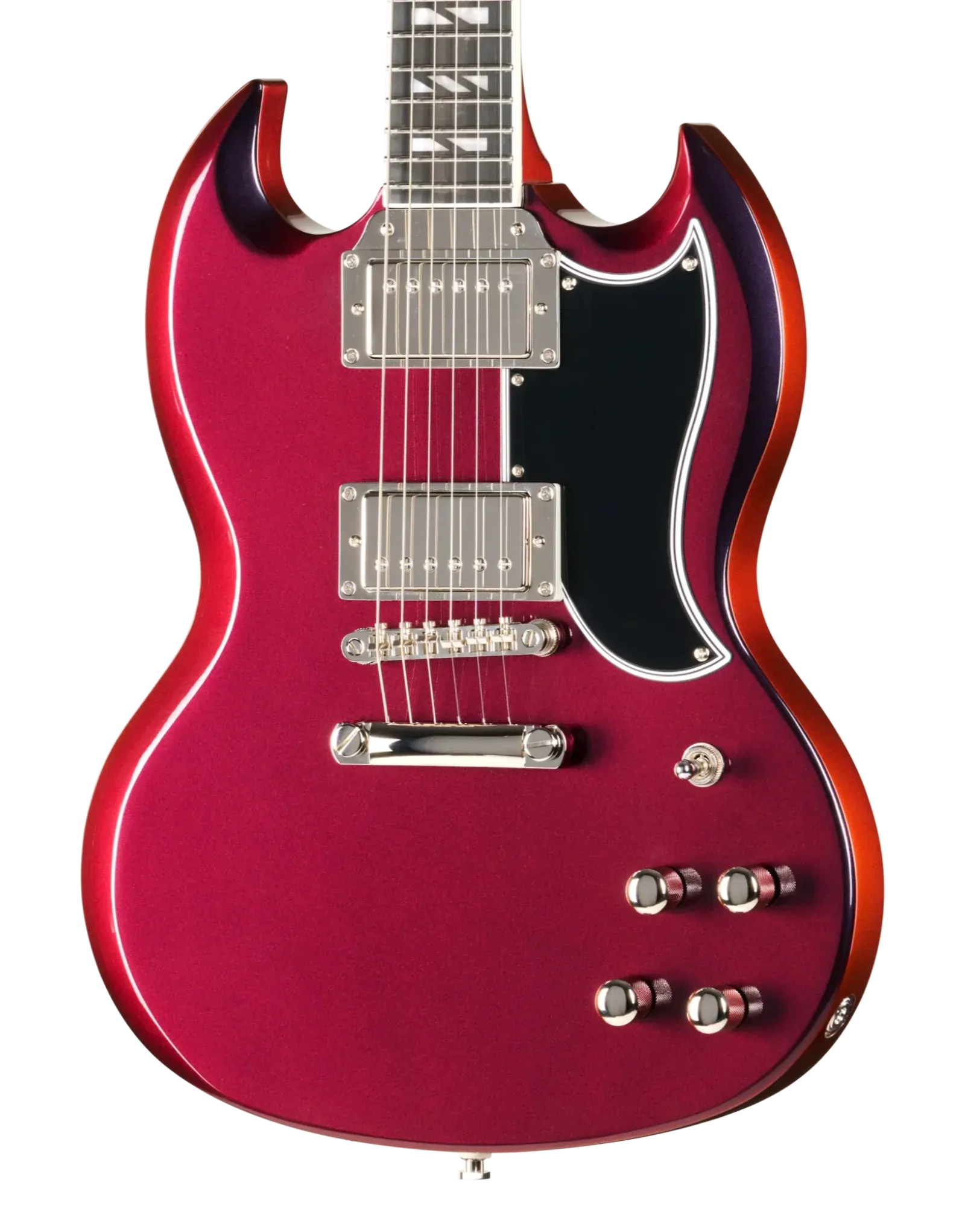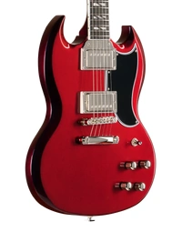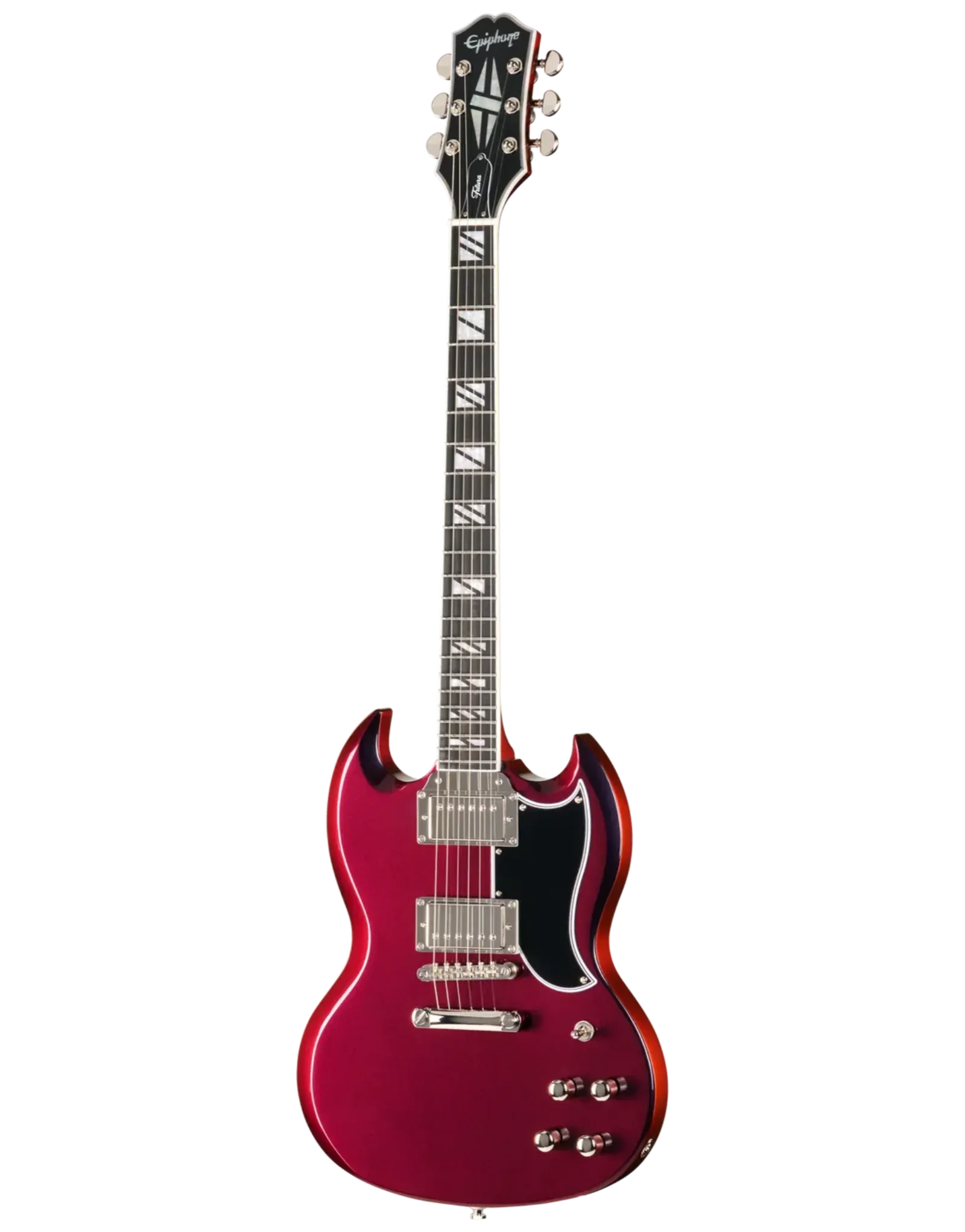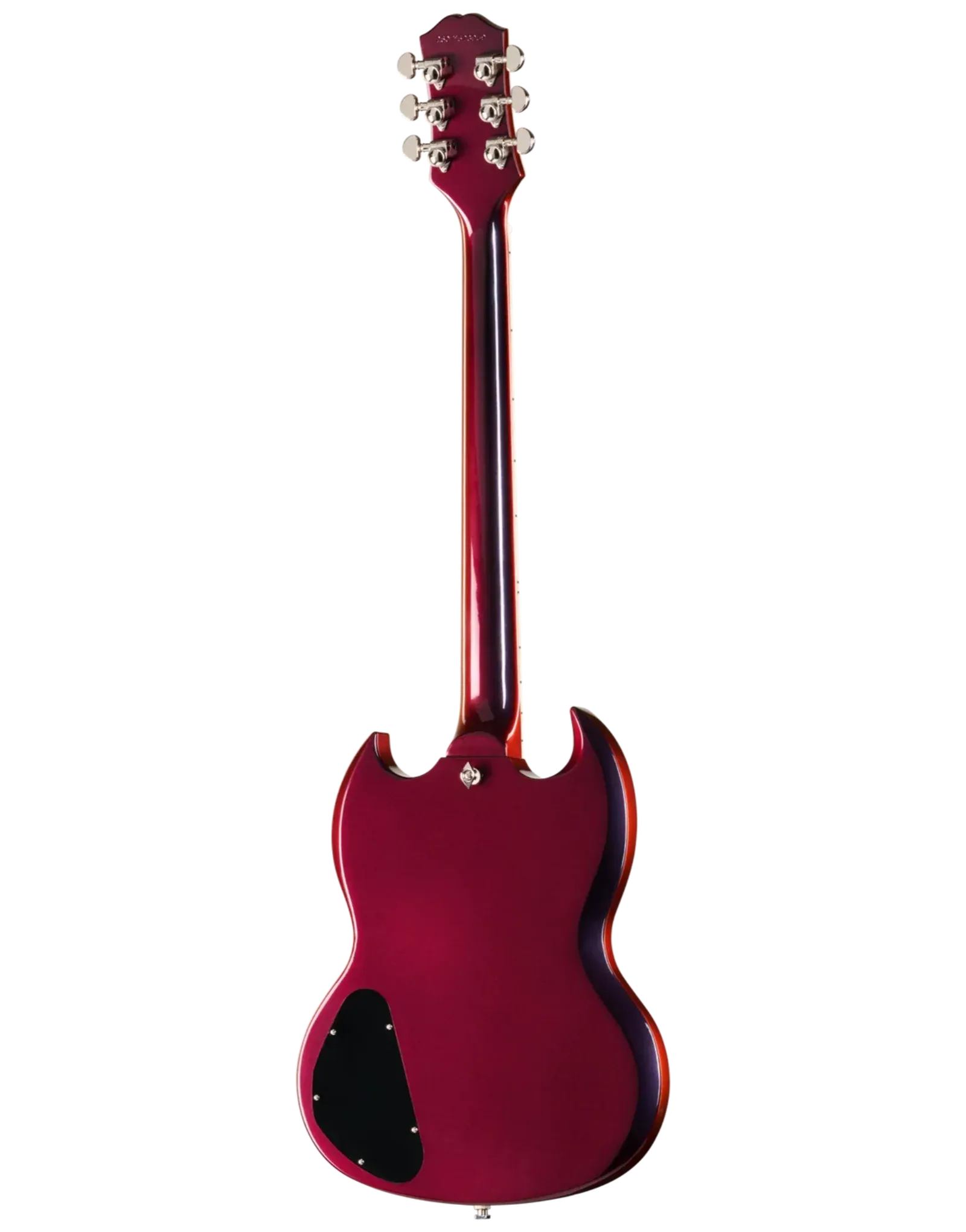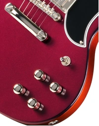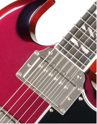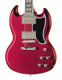 The Epiphone Futura SG Custom Midnight Ember Shift keeps that direct, immediate response SG players tend to like, but with a bit more control when you start adding gain. The all-mahogany body gives you a strong midrange presence, while still leaving enough top-end detail for chords to stay separated when you’re playing with a band or layering parts.