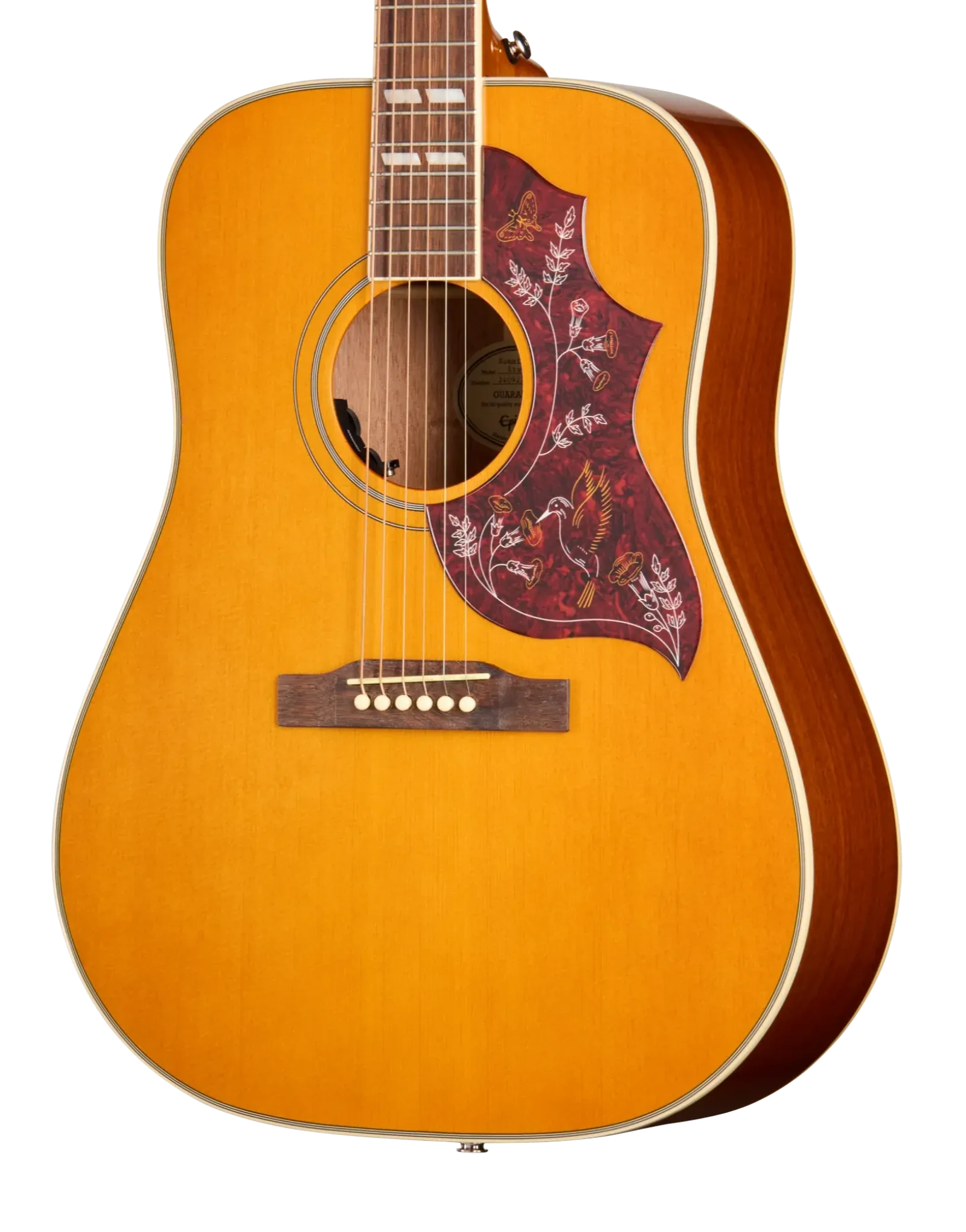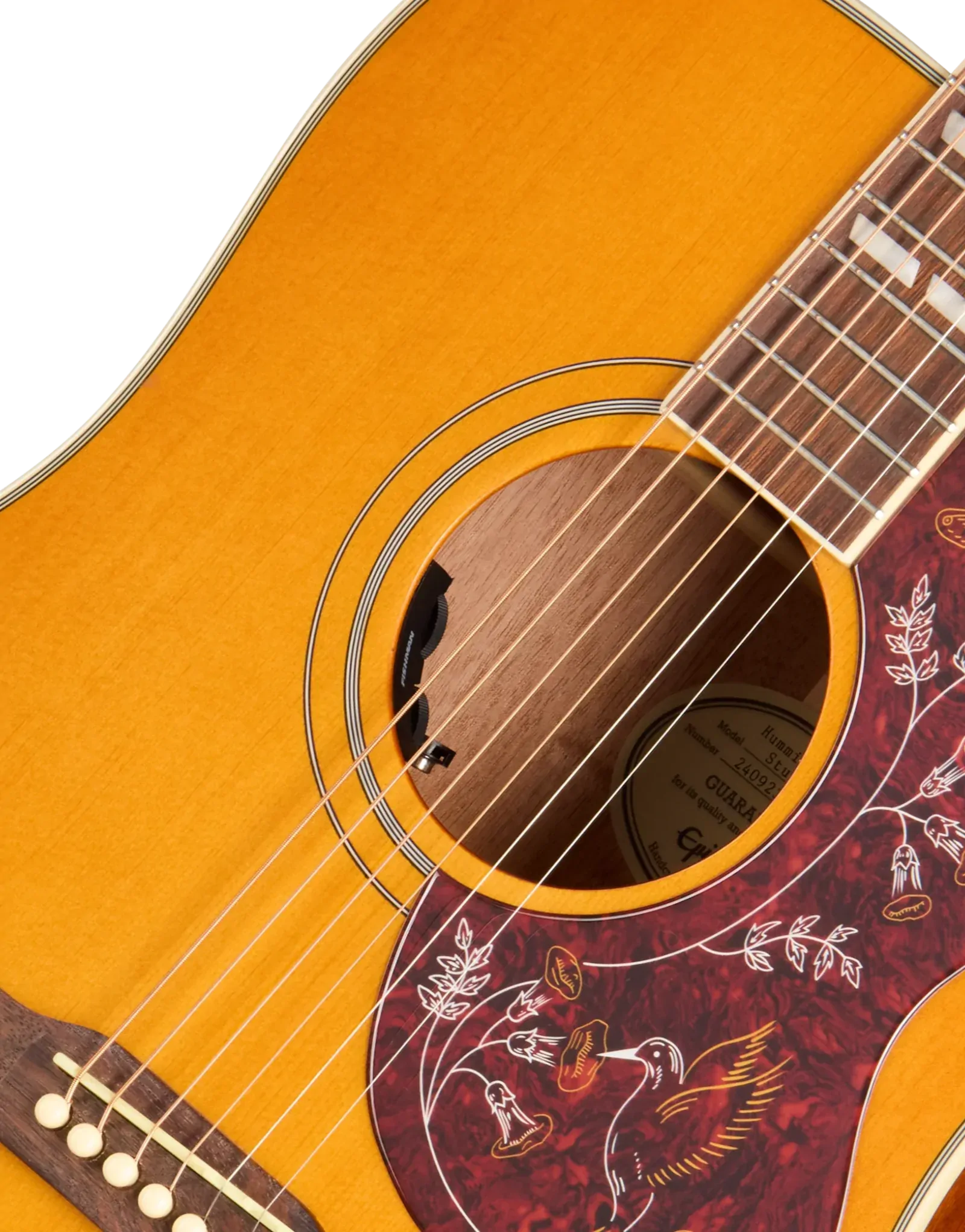 | Pickguard | Hummingbird-shaped Tortoise Shell Epoxy-style with Hummingbird Graphics |