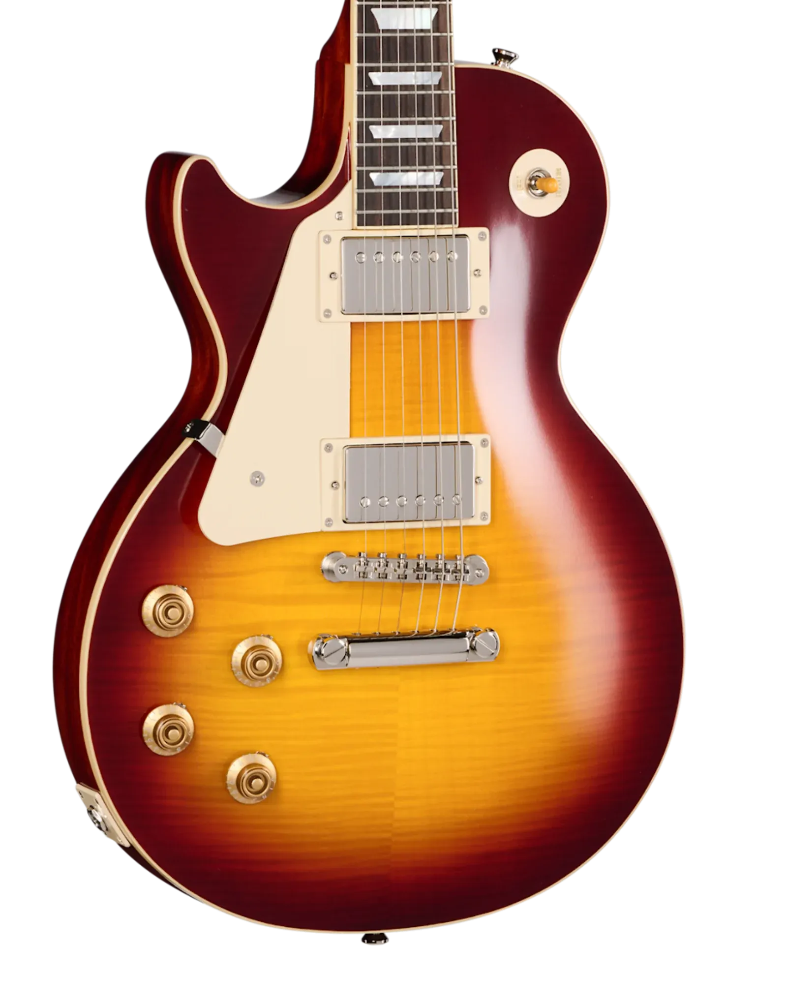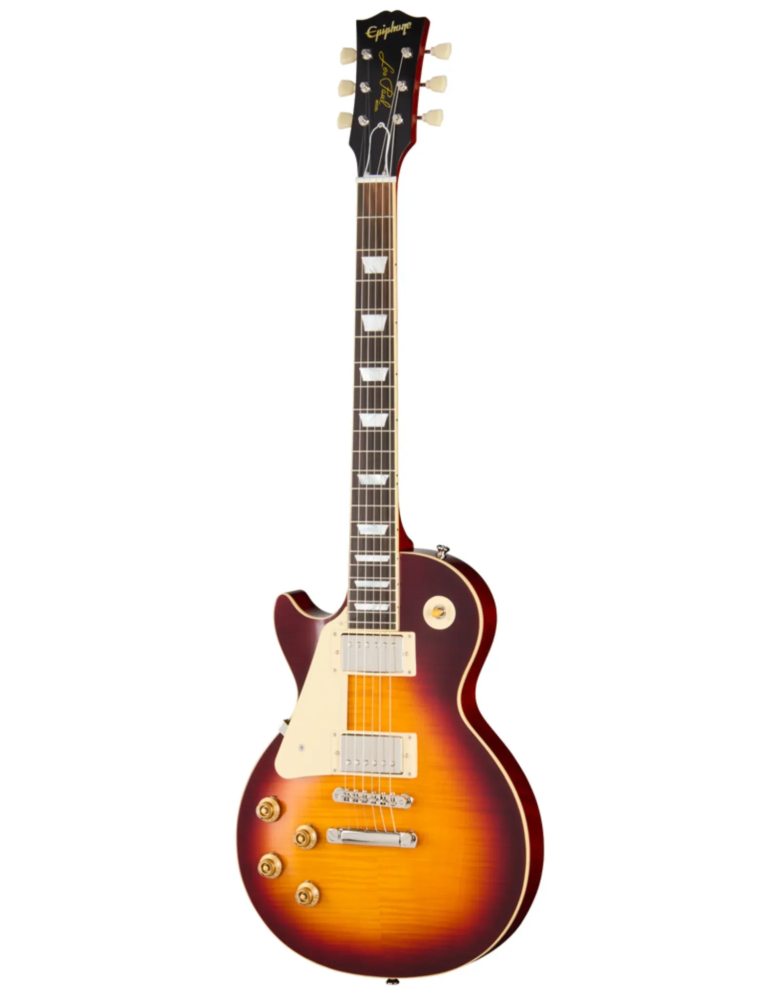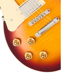 The Epiphone 1959 Les Paul Standard Reissue Left-Handed in Deep Cherry Sunburst offers lefties a true slice of vintage tone and style. Built in collaboration with Gibson Custom, this reissue features a solid mahogany body, AAA flamed maple veneer top, and a one-piece mahogany neck with a long neck tenon and 1959 Rounded Medium C profile. A bound rosewood fretboard with vintage-correct trapezoid inlays adds to the authentic feel. Dual USA-made Gibson Custombucker pickups deliver rich, open PAF-style tones, wired through CTS pots and Bumblebee paper-in-oil capacitors. Finished in vintage gloss and topped with nickel hardware, this model is rounded out with a vintage-style hardshell case.