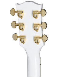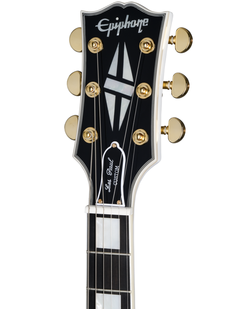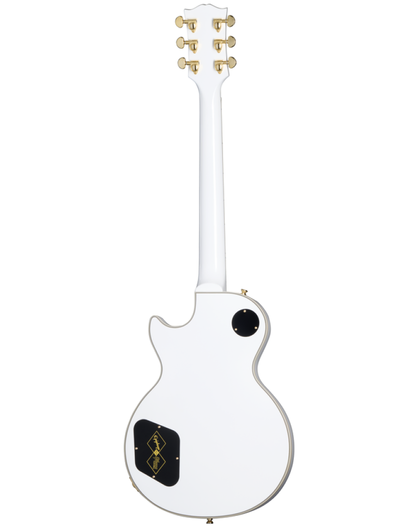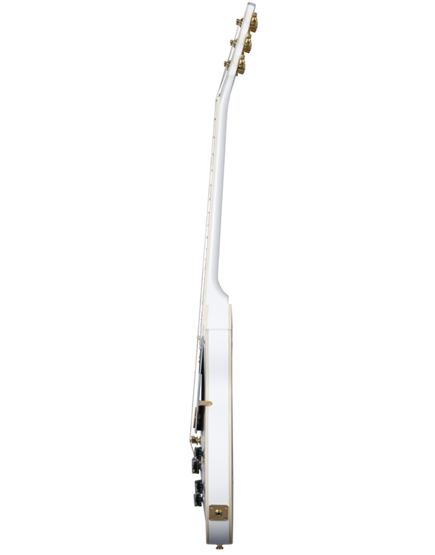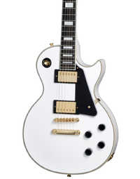 Introducing the Epiphone Inspired By Custom Shop Les Paul Custom Alpine White, a masterpiece born from the collaboration with Gibson Custom. As the flagship model in the Inspired by Gibson Custom lineup, this guitar exudes elegance with its iconic "tuxedo" appointments. Crafted with a one-piece mahogany neck featuring a 50s Rounded C profile and an ebony fretboard adorned with mother-of-pearl block inlays, it offers both style and playability. The mother-of-pearl split diamond and Epiphone logo headstock inlays add to its classic charm. Enhanced with gold hardware, including Grover Rotomatic tuners, this Les Paul Custom boasts visual appeal and reliability. Its solid mahogany body with a maple cap delivers rich, biting tones, complemented by Gibson USA 490R and 498T pickups wired to premium CTS potentiometers, Mallory caps and Switchcraft components. Complete with an Inspired by Gibson Custom double diamond logo on the headstock and a black hard-shell case with goldenrod interior, this guitar is a true gem.