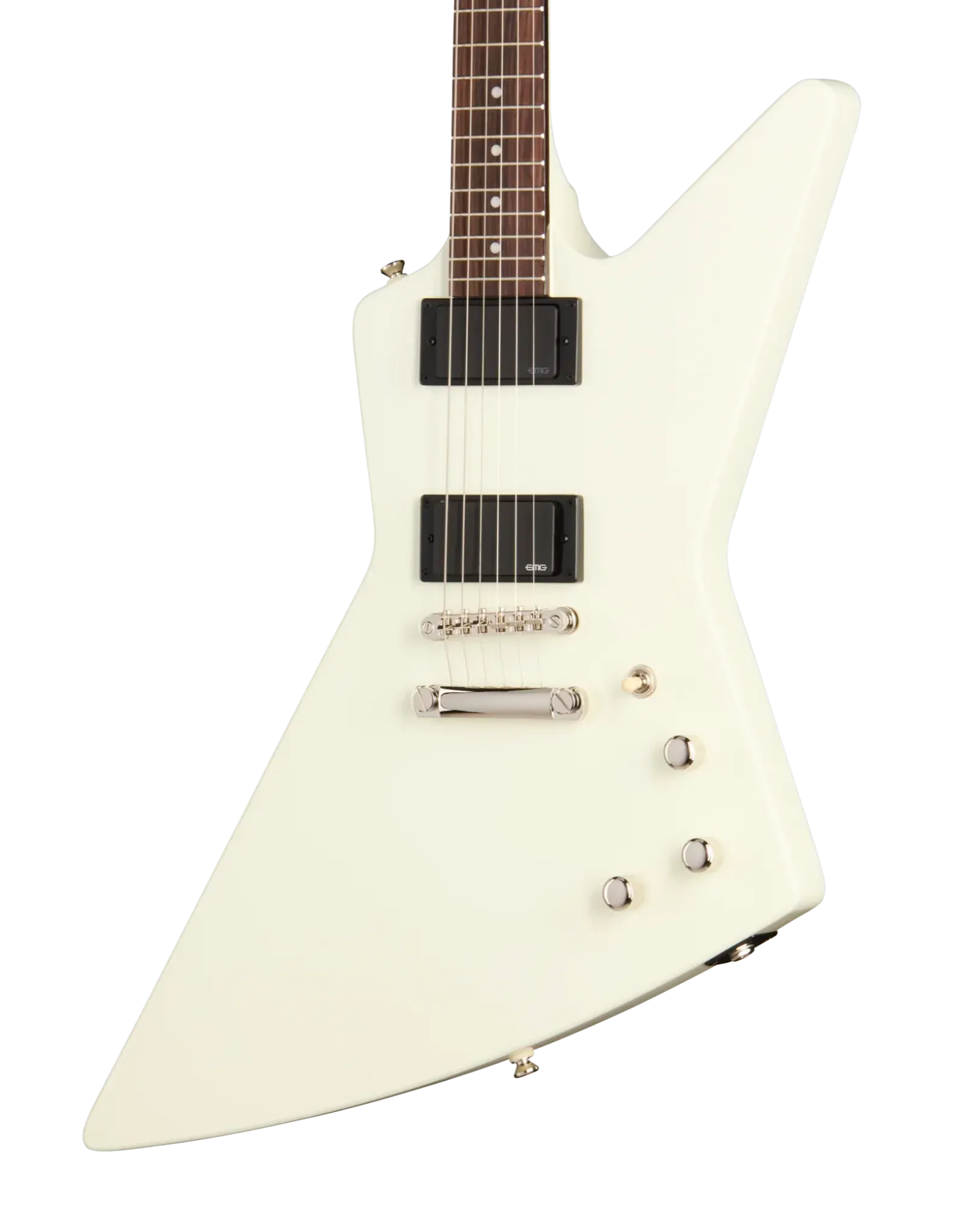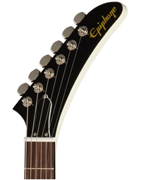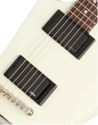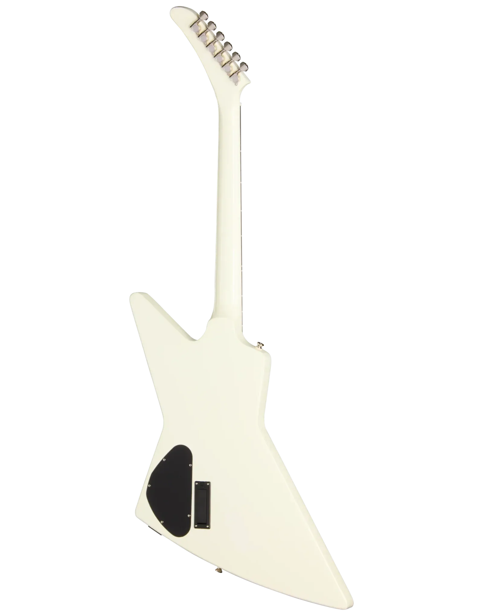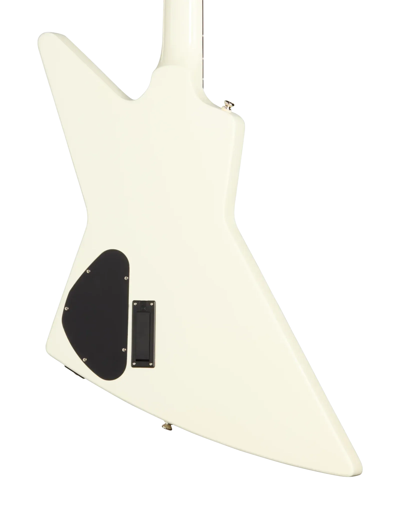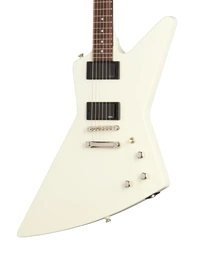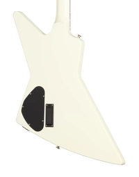 The Epiphone Inspired By Explorer ’80s EMG Classic White delivers the aggressive response and sustain associated with high-output active pickups in a full mahogany platform. A mahogany body and glued-in mahogany neck create a dense, resonant foundation that supports strong low-end weight and extended sustain. The 24.75" (628.65 mm) scale length slightly reduces string tension compared to longer scales, contributing to a smoother feel under bends and fast rhythm work.