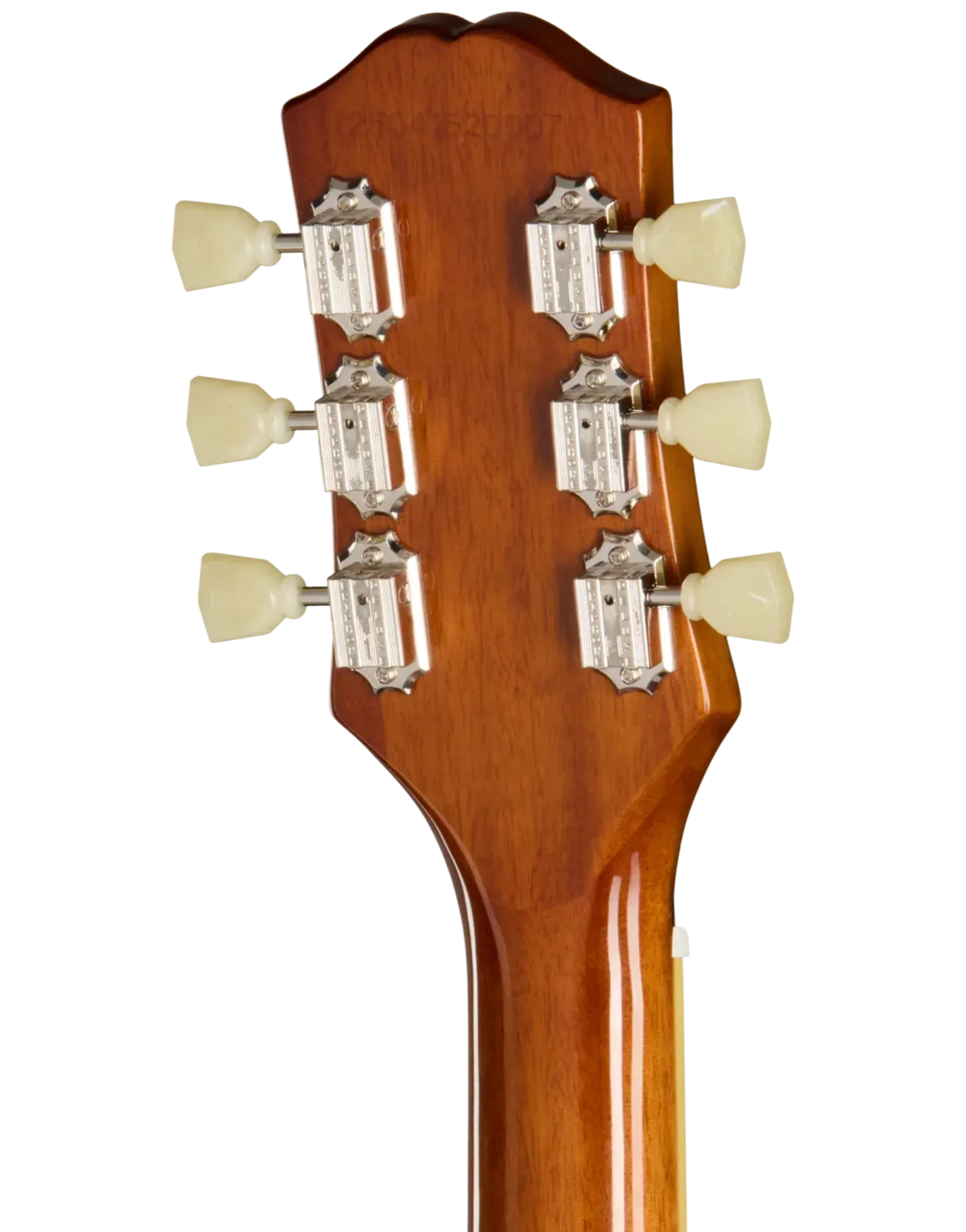 Epiphone ProBucker pickups provide the core voice of the instrument. The ProBucker 1 in the neck position delivers warm, rounded tones for melodic lines and fuller chords, while the slightly hotter ProBucker 2 in the bridge position adds bite and definition that helps rhythm parts stand out. LockTone Tune-O-Matic bridge hardware and CTS potentiometers with 50s-style wiring provide reliable tuning stability and responsive control adjustments.