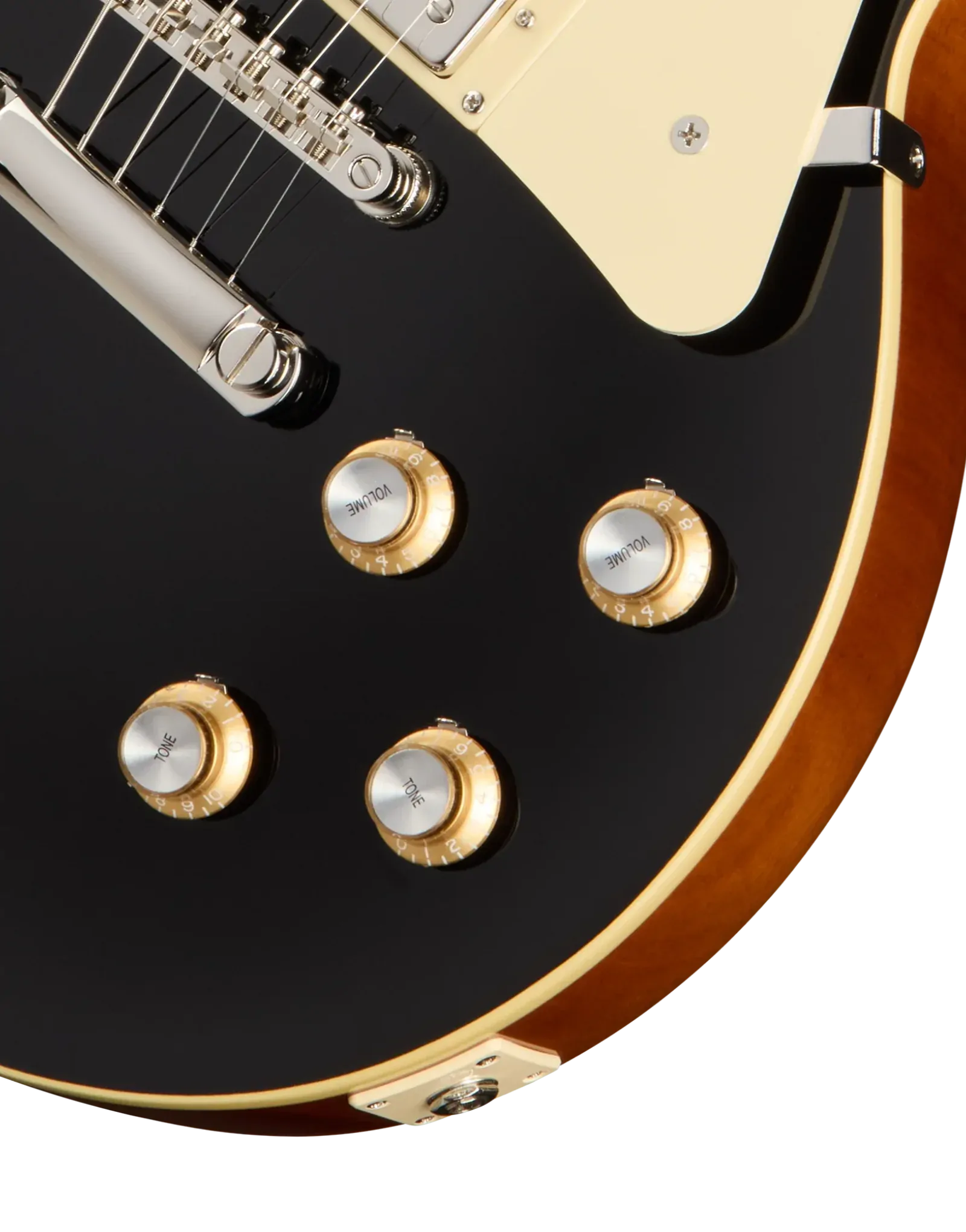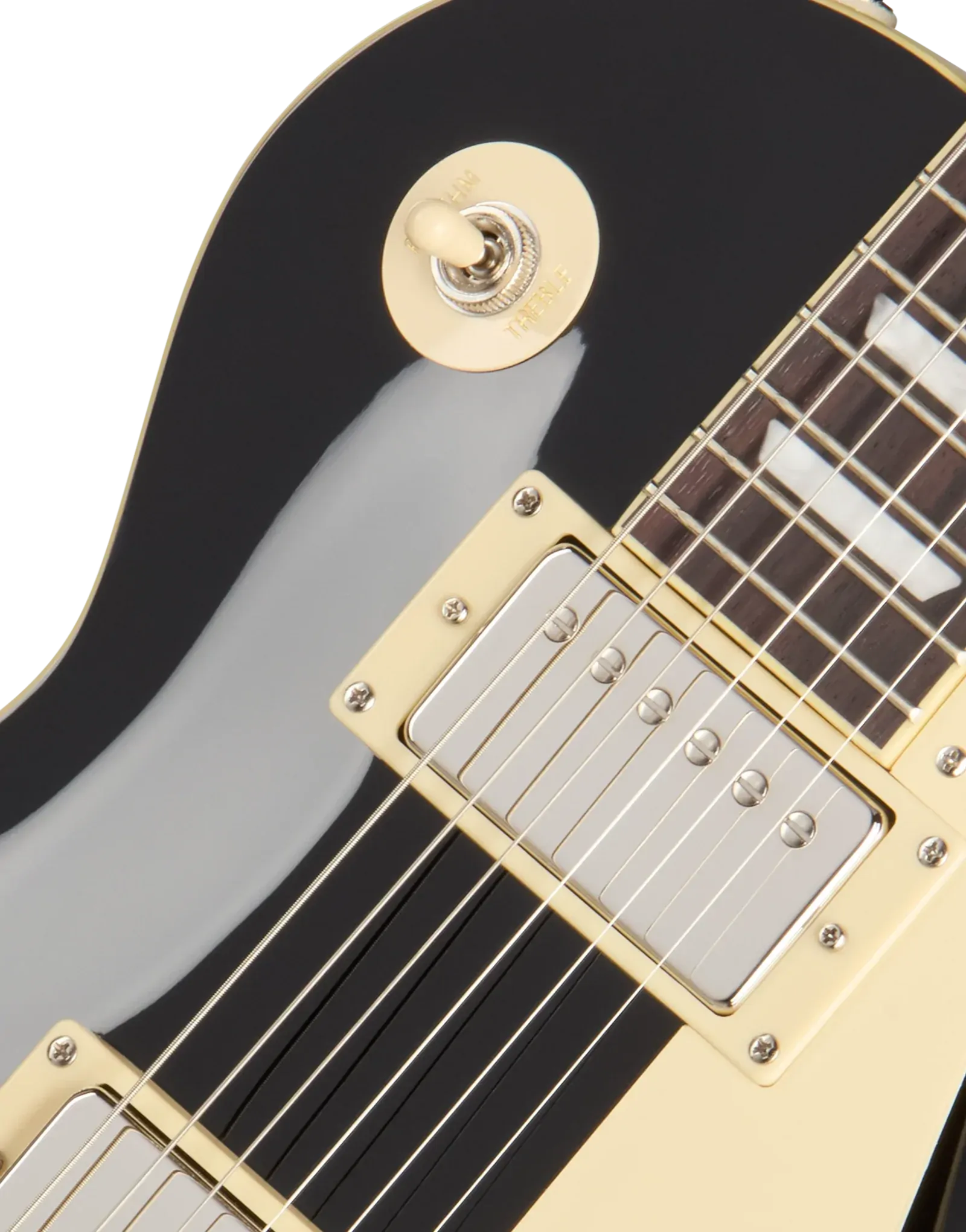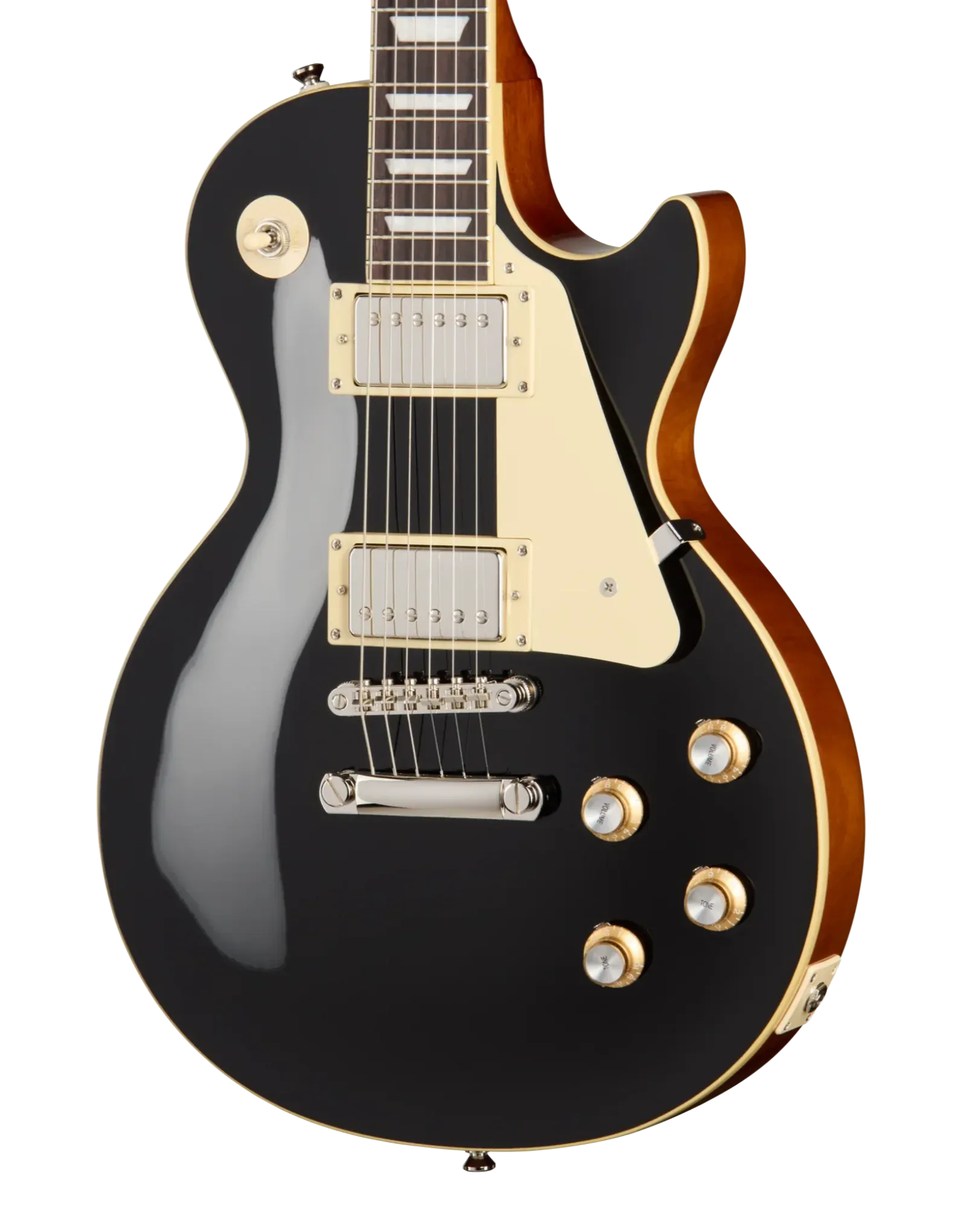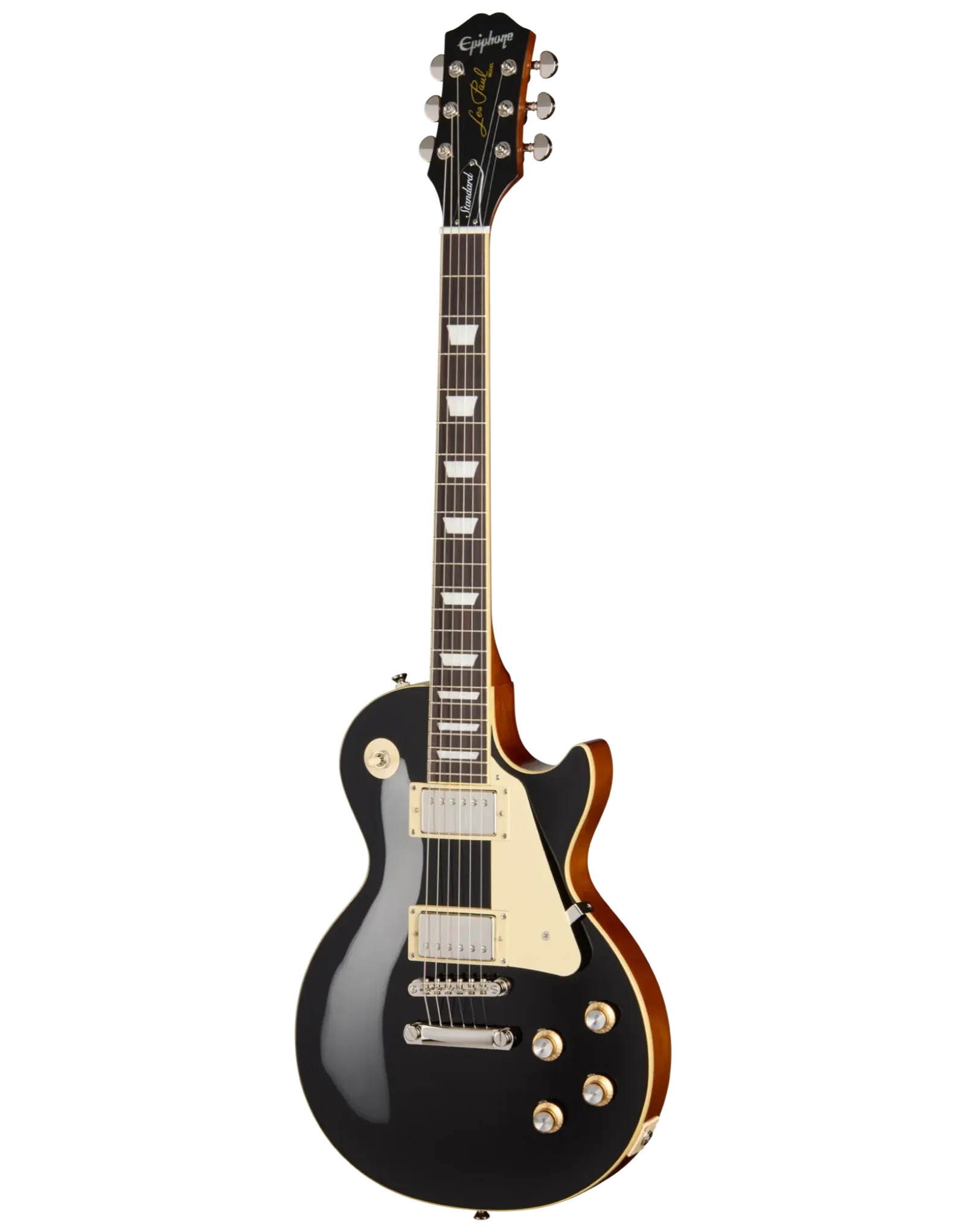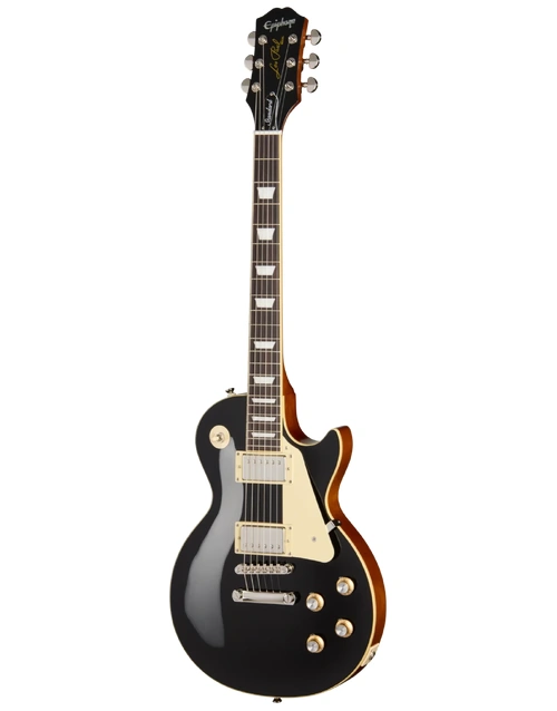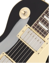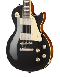 The Epiphone Inspired By Les Paul Standard ’60s Ebony combines a mahogany body with a maple cap to deliver the thick midrange warmth and singing sustain associated with traditional Les Paul construction. Mahogany provides depth and harmonic richness, while the maple top adds clarity and attack, helping notes remain defined under gain. With no weight relief, the body retains a solid feel and extended sustain that responds well to both dynamic clean playing and driven tones.