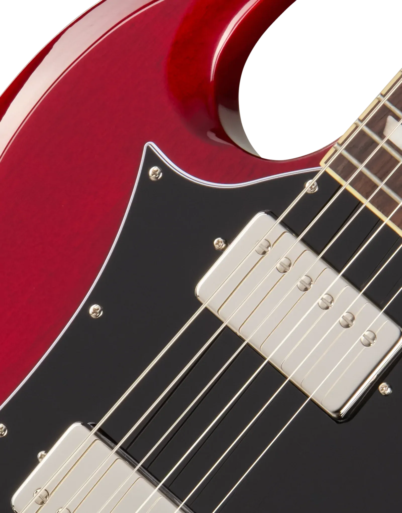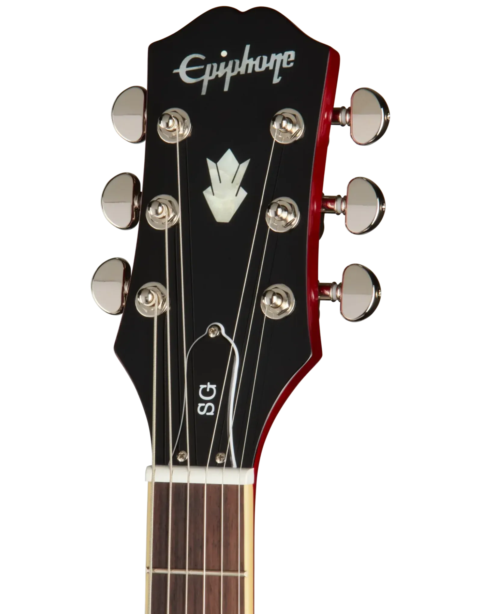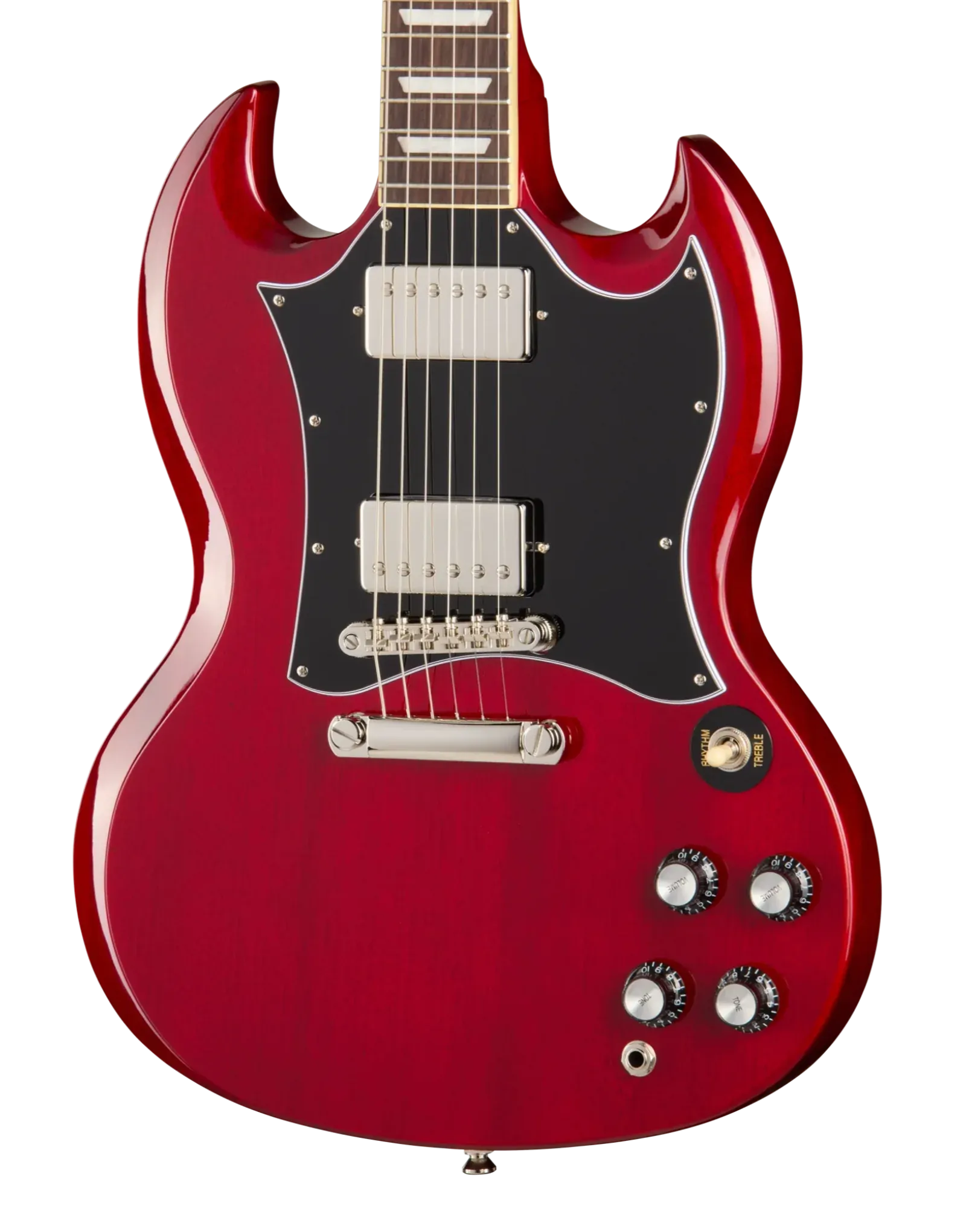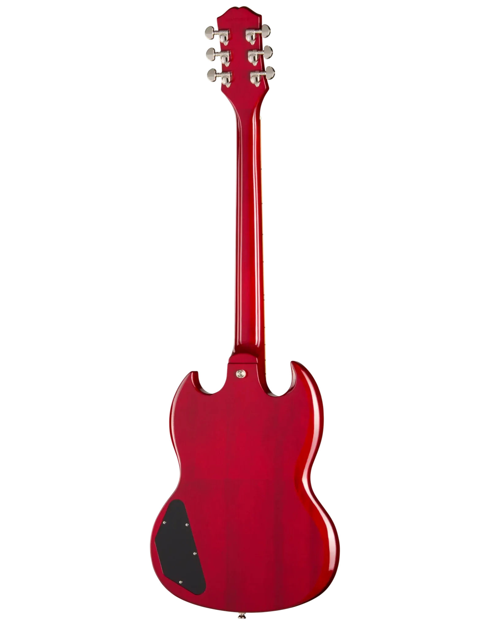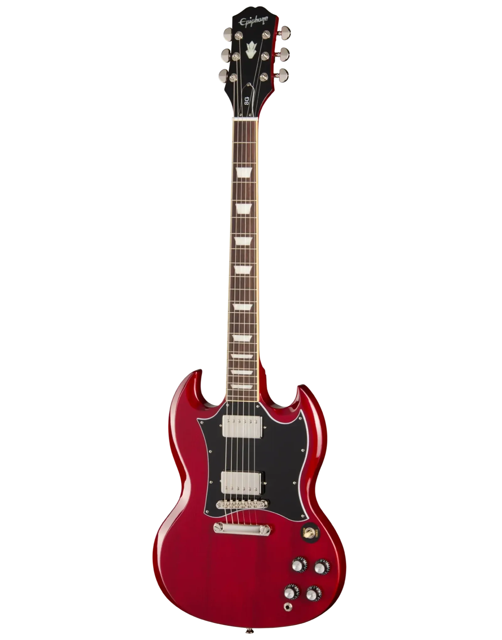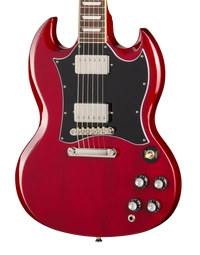 The Epiphone Inspired By SG Standard Cherry delivers the unmistakable feel and tone that made the SG a stage staple. Its contoured double-cutaway mahogany body keeps weight manageable while offering effortless access to all 22 frets. A glued-in mahogany neck enhances sustain and resonance, paired with a comfortable SlimTaper C profile that feels fast without being overly thin.