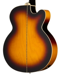The Epiphone J-200 Studio EC Left-Handed in Vintage Sunburst delivers the legendary power and style of the “King of the Flat-Tops” with added upper-fret access for greater versatility. Its Super Jumbo cutaway body, inspired by the Gibson SJ-200, features a solid spruce top paired with layered maple back and sides for bold projection, warm mids, and clear articulation. The mahogany neck with a 1960s SlimTaper D profile and rosewood fretboard ensures a comfortable, fluid playing experience, while details like the moustache bridge, crown inlays, and tortoise pickguard showcase its vintage charm. Equipped with Fishman Presys II electronics and a built-in tuner, the J-200 Studio EC Left-Handed delivers natural amplified tone with flexible EQ control. Finished in Vintage Sunburst and supplied with a gig bag, this lefty model blends classic looks with contemporary performance.
