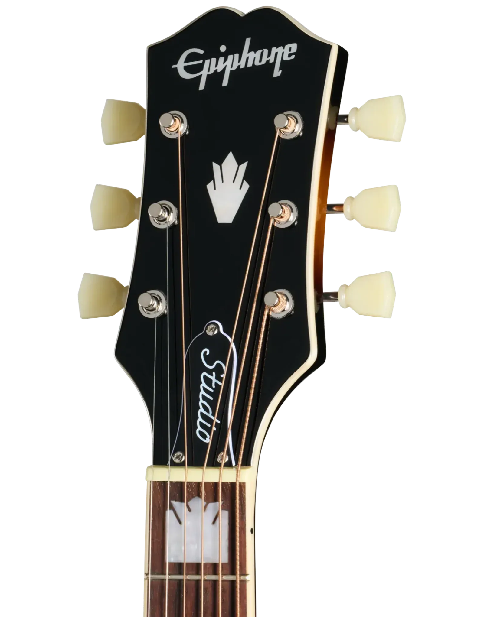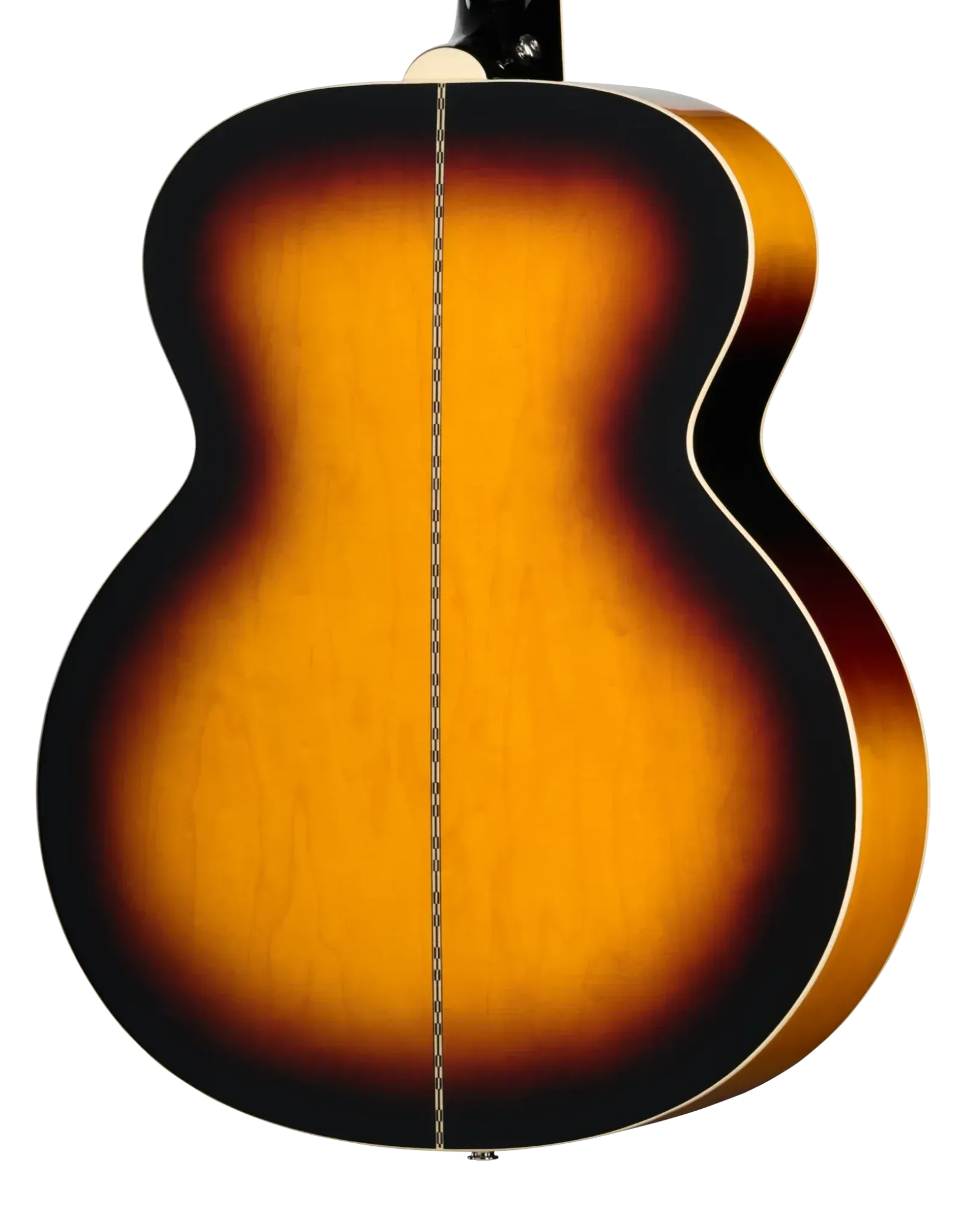 The Epiphone J-200 Studio Left-Handed brings the renowned jumbo tone of the “King of the Flat-Tops” to left-handed players in a beautifully crafted and affordable package. Inspired by the legendary Gibson SJ-200, this Super Jumbo acoustic features a solid spruce top paired with layered maple back and sides, producing rich lows, articulate highs, and balanced projection that suits any playing style. The mahogany neck with a 1960s SlimTaper D profile and rosewood fretboard offers smooth, comfortable playability, while vintage-inspired details — like the moustache bridge, crown inlays, and ornate tortoise pickguard — capture the timeless J-200 aesthetic. Equipped with Fishman S-Core electronics and a Presys VT preamp, it delivers authentic acoustic tone on stage or in the studio. Finished in Vintage Sunburst and complete with a gig bag, this left-handed model offers premium performance for players seeking jumbo sound and classic style.