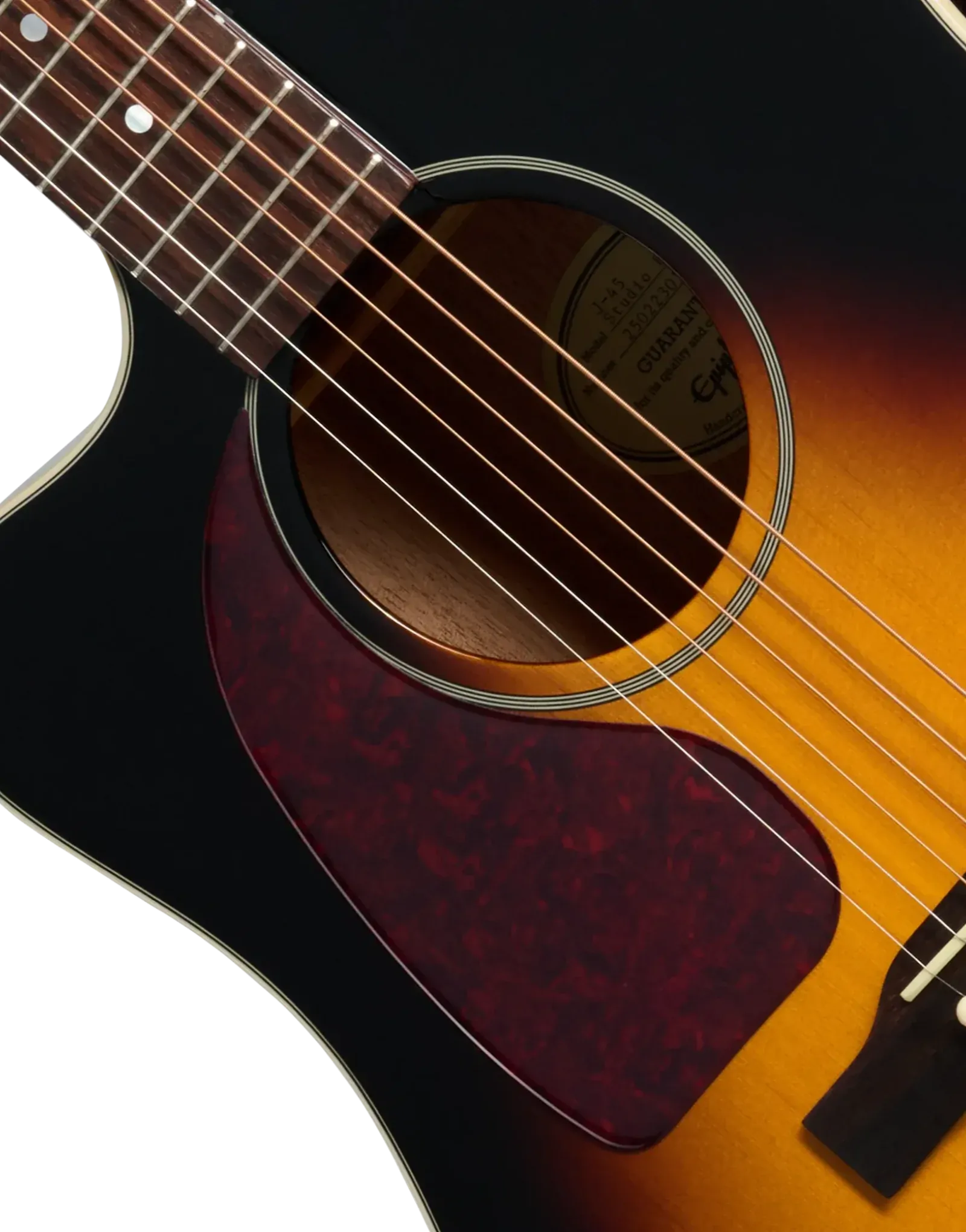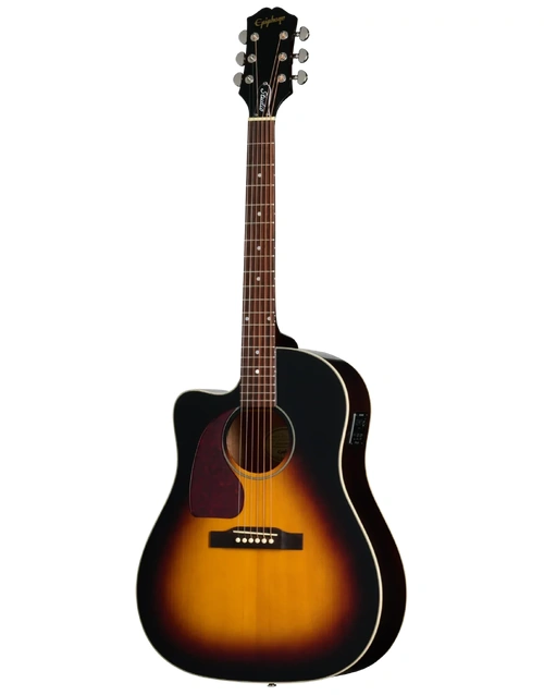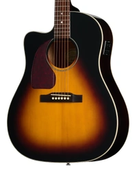 The Epiphone J-45 Studio EC Left-Handed in Vintage Sunburst delivers classic slope-shoulder tone with modern performance features. Its solid spruce top provides clear projection and dynamic response, while the layered mahogany cutaway body adds warmth and balanced low end. The cutaway design allows comfortable access to higher frets, making it equally suited to rhythm work and melodic lead lines.