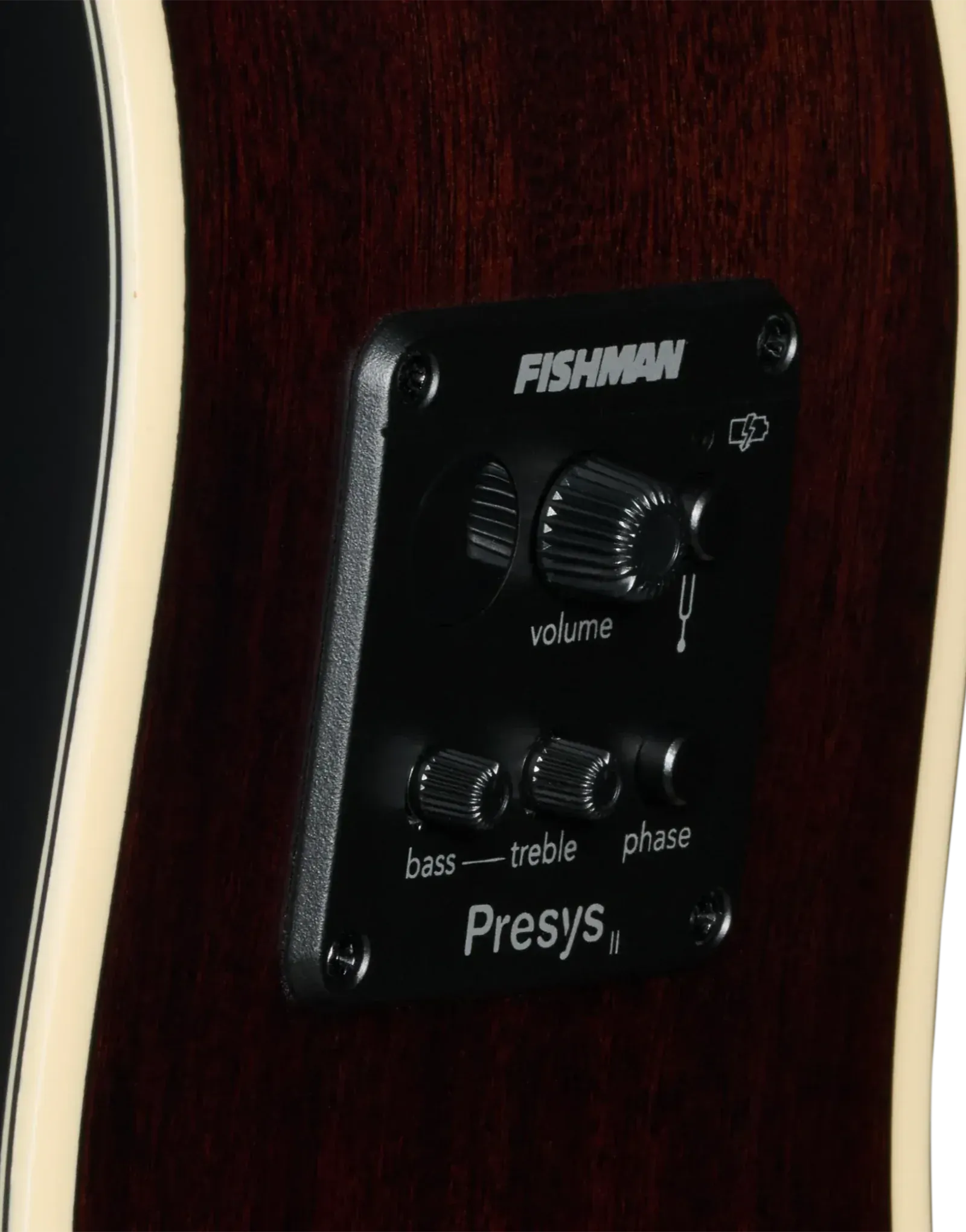 | Controls | Side-mounted Volume, Bass, Treble, Phase Switch, and Tuner, Fishman Presys II, Combination Battery Box and 1/4" Output Jack |