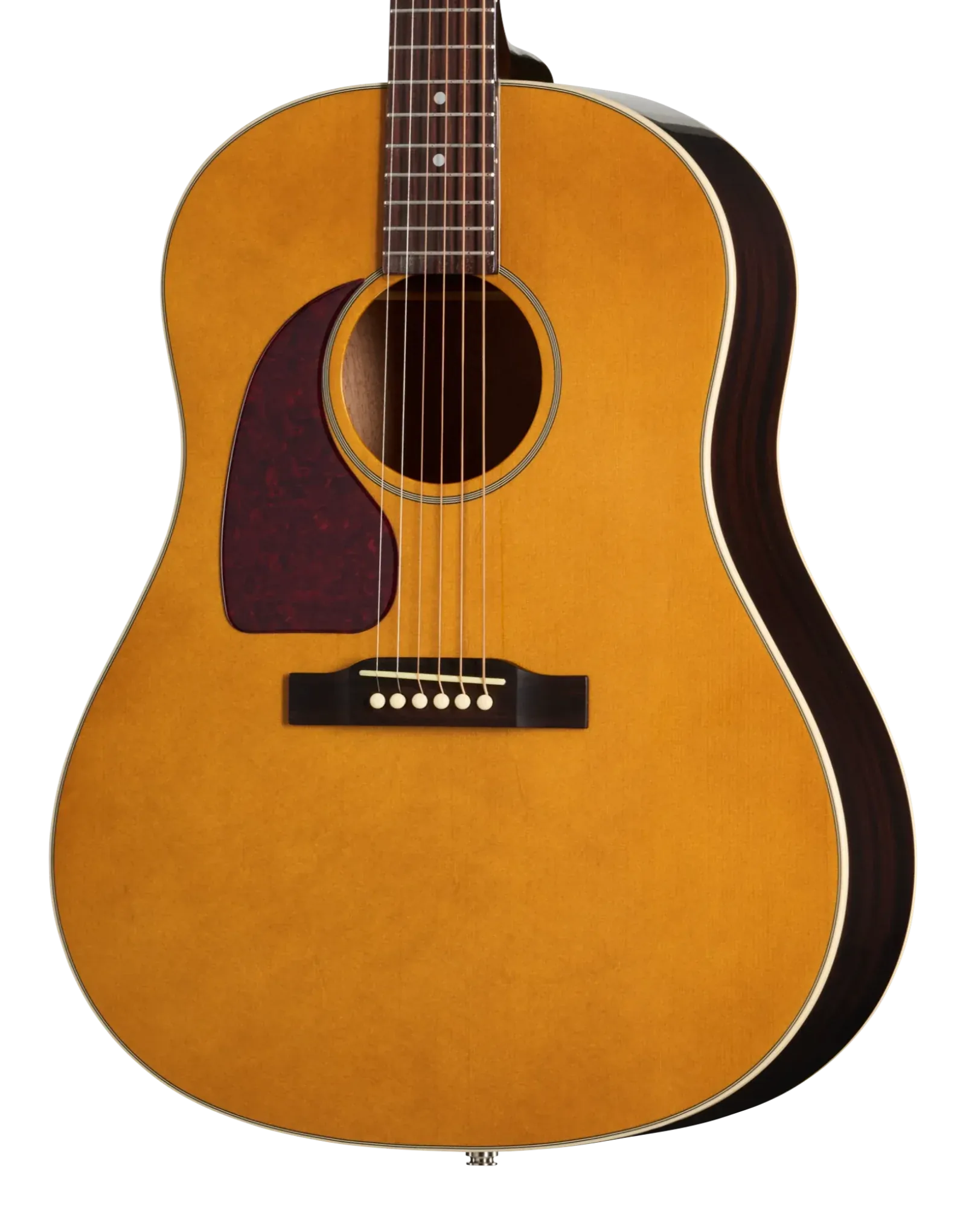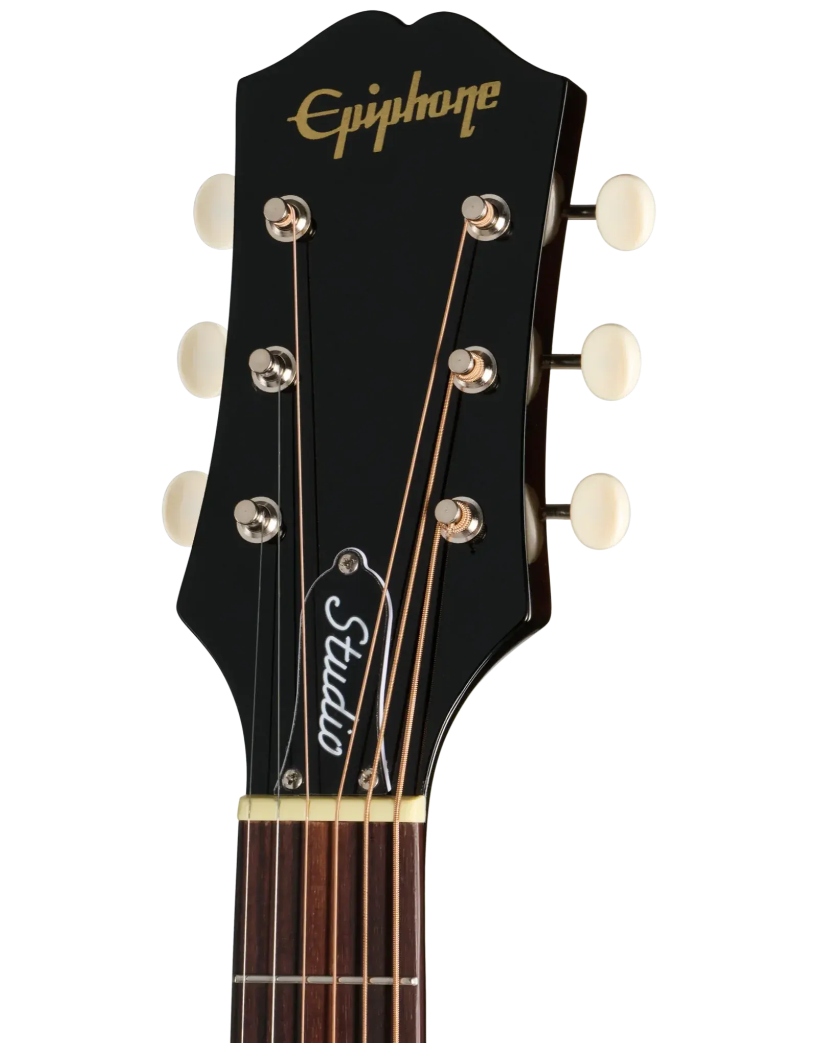 The Epiphone J-45 Studio Left-Handed in Natural brings classic slope-shoulder tone to southpaw players in a practical, stage-ready design. Its solid spruce top delivers clear articulation and strong dynamic response, while layered mahogany back and sides provide warmth and balance suited to strumming, fingerstyle and vocal accompaniment.