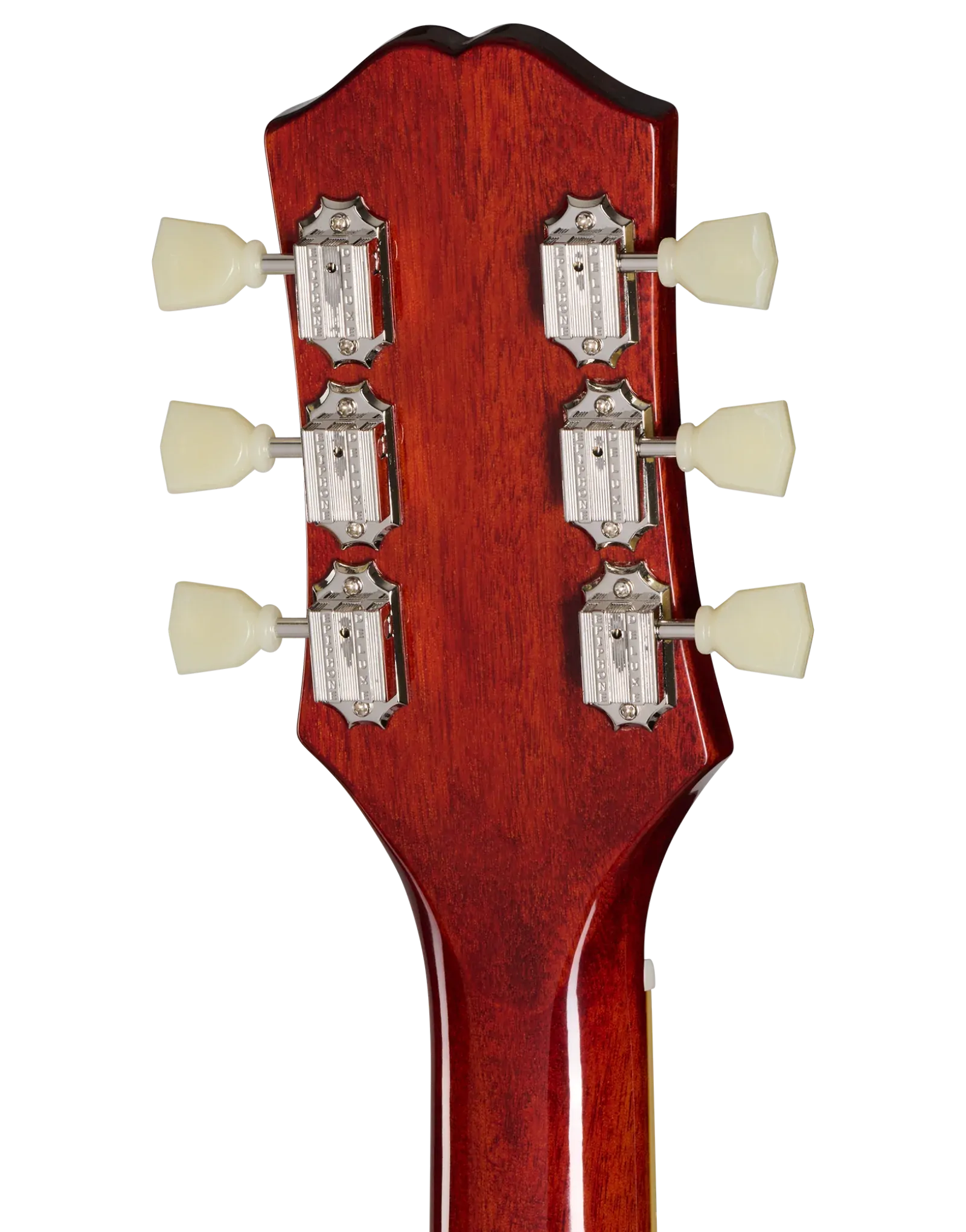 Equipped with ProBucker 1 and ProBucker 2 humbuckers, this guitar delivers authentic PAF-inspired tones, from warm, articulate cleans to thick overdriven sounds. 50s-style wiring and CTS potentiometers enhance clarity and responsiveness. Additional premium features include Epiphone Vintage Deluxe tuners, a Graph Tech nut, gold Top Hat knobs, and the iconic Kalamazoo headstock. A premium gig bag is included for protection and transport.