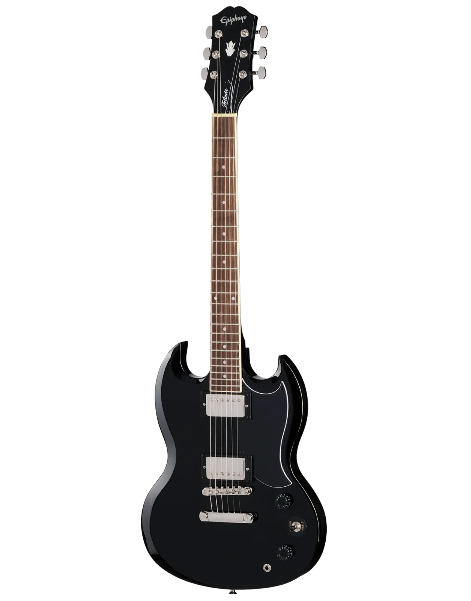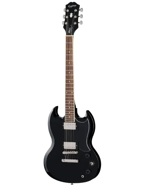 The Epiphone SG Tribute in Ebony is a modern homage to the iconic SG, delivering legendary sound and style at an accessible price. Its mahogany body and neck, paired with a laurel fretboard, provide warm, resonant tones with a smooth playing feel. Equipped with Epiphone 650R and 700T ceramic humbuckers, this guitar delivers bold, articulate sound with plenty of power for rock, blues, and more. Nickel-covered pickups and classic SG styling complete the look of this timeless instrument. Whether you’re on stage or in the studio, the SG Tribute is a versatile, no-nonsense guitar ready to perform.