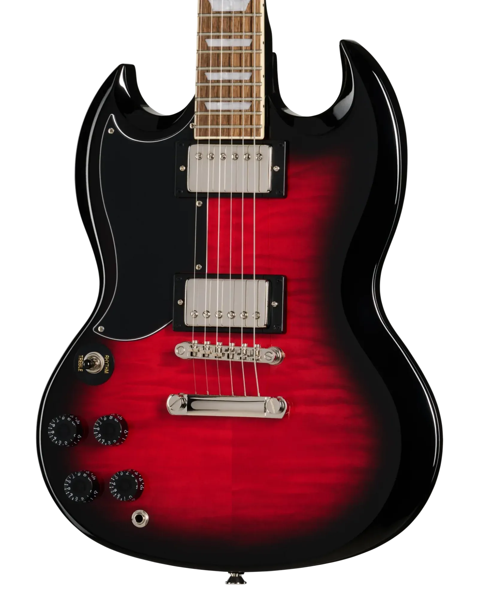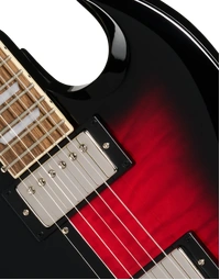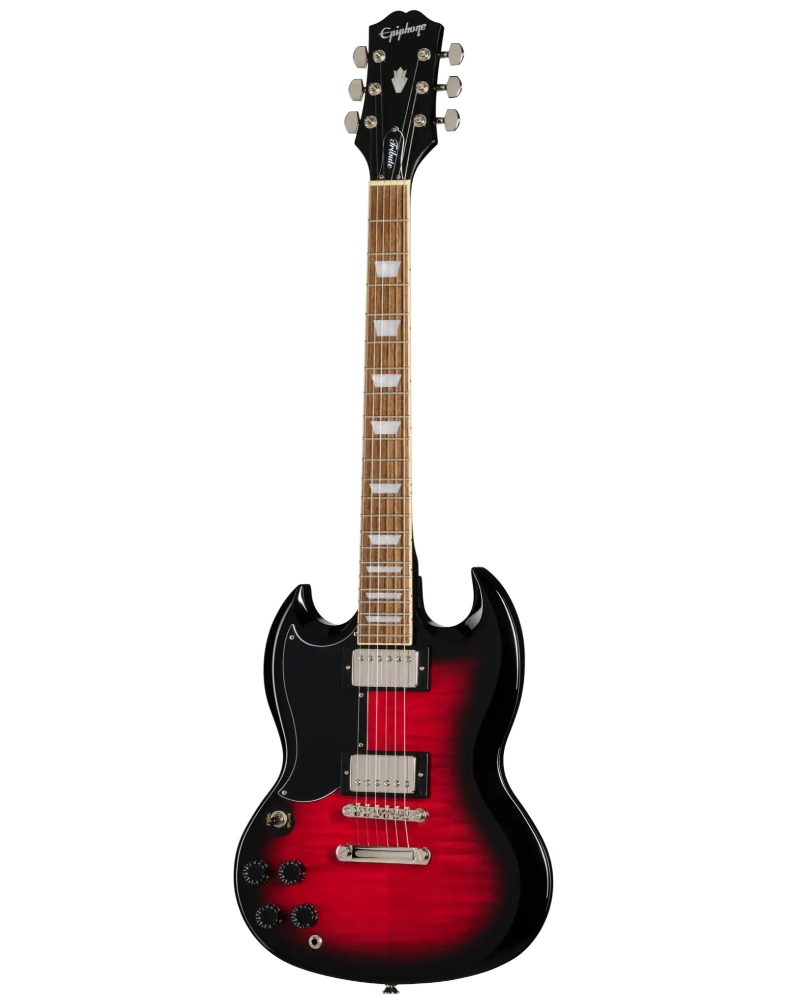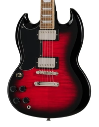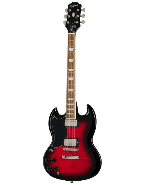 The Epiphone SG Tribute Plus Left-Handed in Cherry Burst delivers iconic SG tone and styling with exceptional comfort and playability. Its mahogany body and flame maple veneer top create a warm, resonant sound with striking visual appeal. The 60s SlimTaper Rounded C neck profile ensures fast, easy movement across the bound laurel fretboard, complete with pearloid trapezoid inlays. Equipped with Epiphone’s 650R and 700T humbuckers featuring ceramic magnets, this SG produces full, dynamic tones suited to a wide range of genres. LockTone hardware provides tuning stability and excellent sustain, while the gloss finish highlights its stunning Cherry Burst flame top. Designed for left-handed players who want a true SG experience without compromise, this guitar offers impressive value and timeless appeal.