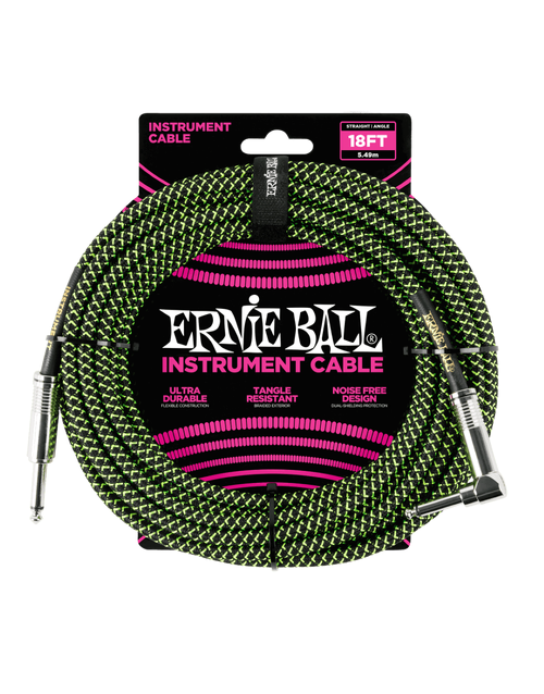 Ernie Ball 18' Braided Straight/Angle Instrument Cable - Black/Green