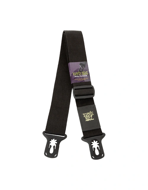 "Patent-pending design makes it easy to securely attach the strap to your electric guitar or bass, without the need for modification or bulky hardware. Simply fasten your Ernie Ball PolyLock Strap to the existing strap buttons on virtually any electric guitar or bass and you're set. Features black 2" wide Polypropylene material. Adjustable length from 38" - 67".