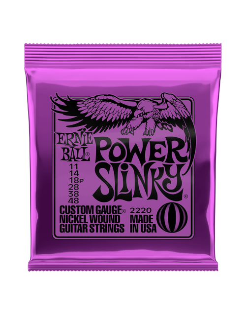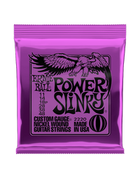 Ernie Ball Power Slinky Electric Strings are a perfect match for those who like chunky rhythms for rock and roll or blues. Power Slinkys have long been favoured by Slash, Metallica, and Kenny Wayne Shepherd due to the thicker gauge combination providing a slightly more powerful tone. These strings are precision manufactured to the highest standards and most exacting specifications to ensure consistency, optimum performance, and long life. Power Slinky wound strings are made from nickel plated steel wire wrapped around a hex shaped steel core wire The plain strings are made of specially tempered tin plated high carbon steel producing a well balanced tone for your guitar.