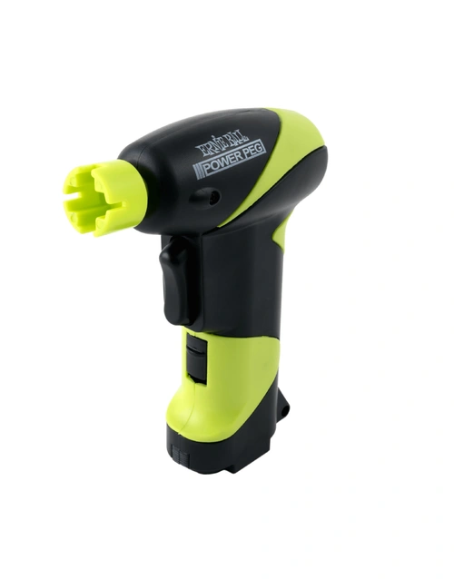 The Ernie Ball PowerPeg is the first of its kind self-contained motorized pegwinder that allows you to restring your instrument up to 70% faster than traditional manual pegwinders. The PowerPeg is powered by 4 AA batteries (not included) featuring a proprietary universal peg head that fits virtually all bass, acoustic, and electric guitar tuning machines.