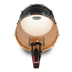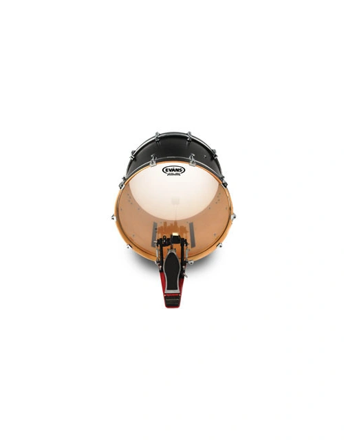 Evans G1 series features a single 10mil ply with a bright sustain and broad tuning range. The G1 is a starting point in traditional bass drum sounds. Tuned in the traditional 'Be-Bop' range, it blends seamlessly with toms and provides subtle reinforcement for the bass line.