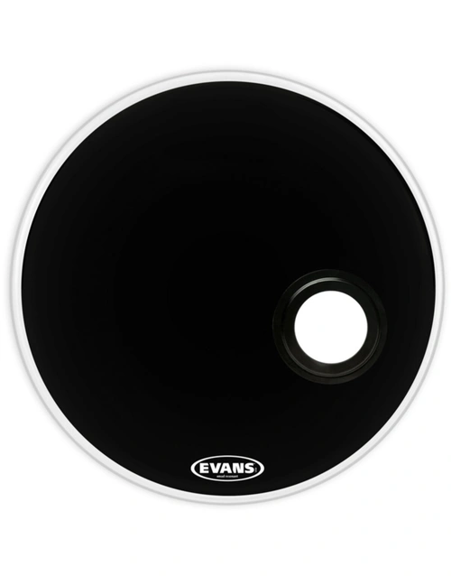 Evans EMAD resonant series features an offset 4" microphone port in a single ply of 10mil film. Similar to the EMAD batter a black, noise-free plastic sleeve holds a foam dampening ring around the edge of the micorphone port which controls overtones; enhancing pitch focus and attack.