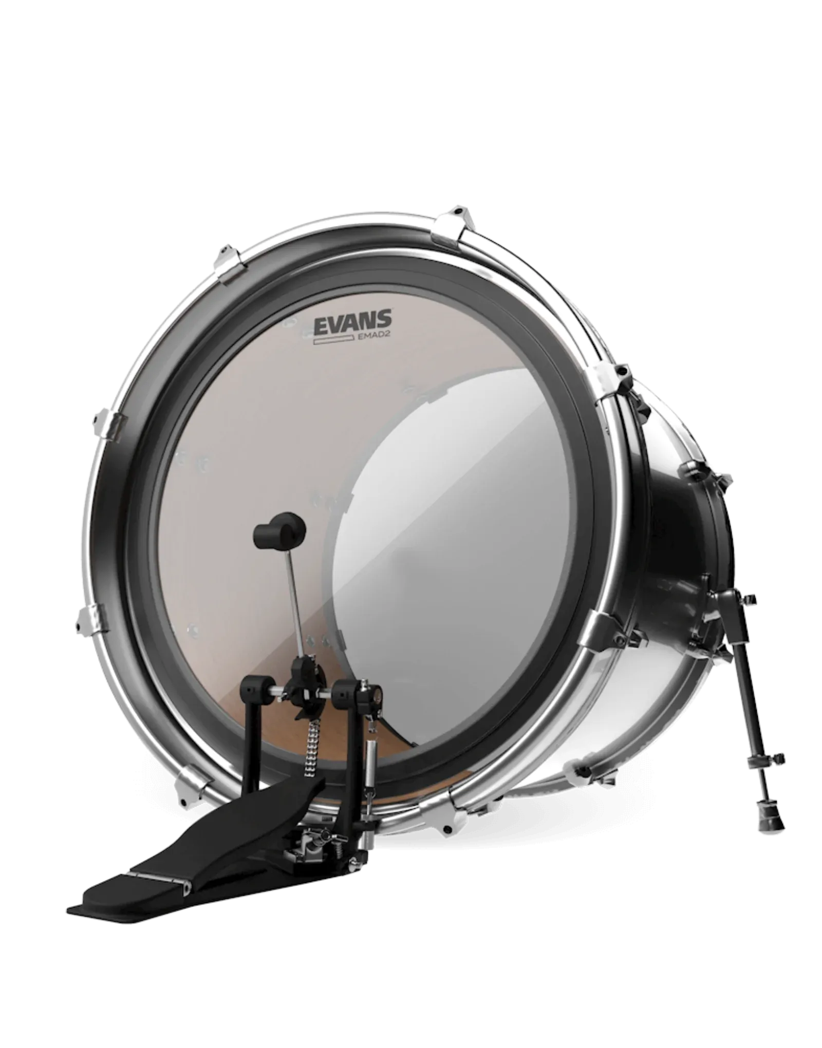The Evans EMAD2 System Pack gives drummers complete control over their bass drum tone with a matched set of batter and resonant heads. The EMAD2 batter head features a two-ply design—7mil outer and 10mil inner—for enhanced durability, deeper low-end, and a more focused attack. Two interchangeable damping rings let you fine-tune sustain and punch. The included EMAD reso head has a 10mil single-ply construction with an offset 4" mic port and external foam damping ring, keeping overtones in check. Both heads feature Level 360 Technology for easier tuning and improved tonal range.