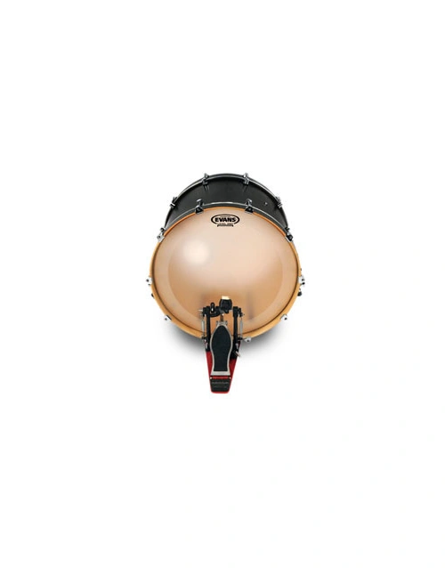 Evans EQ4 series features a single ply of 10mil film. A fixed internal overtone control ring focuses the tonal response of the drum. The frosted surface provides a warmer tone.