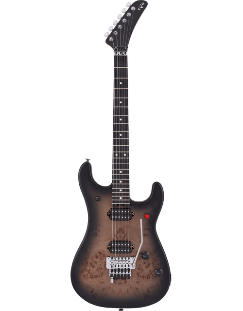 The EVH 5150 Deluxe Poplar Burl, finished in Black Burst, is an 80s hot-rod inspired machine, built for speed, comfort, and full-throttle shredding. With vintage EVH aesthetics, and modern player-friendly features, the EVH 5150 Deluxe is the best of both worlds. A graphite-reinforced hand-rubbed satin urethane-finished modified C-profile quartersawn Maple neck with 12"-16" compound radius Ebony fretboard offers smooth, speedy and comfortable playability. A Poplar-capped Basswood modified Strat-style body features a deeper upper body curve for even greater comfortability.