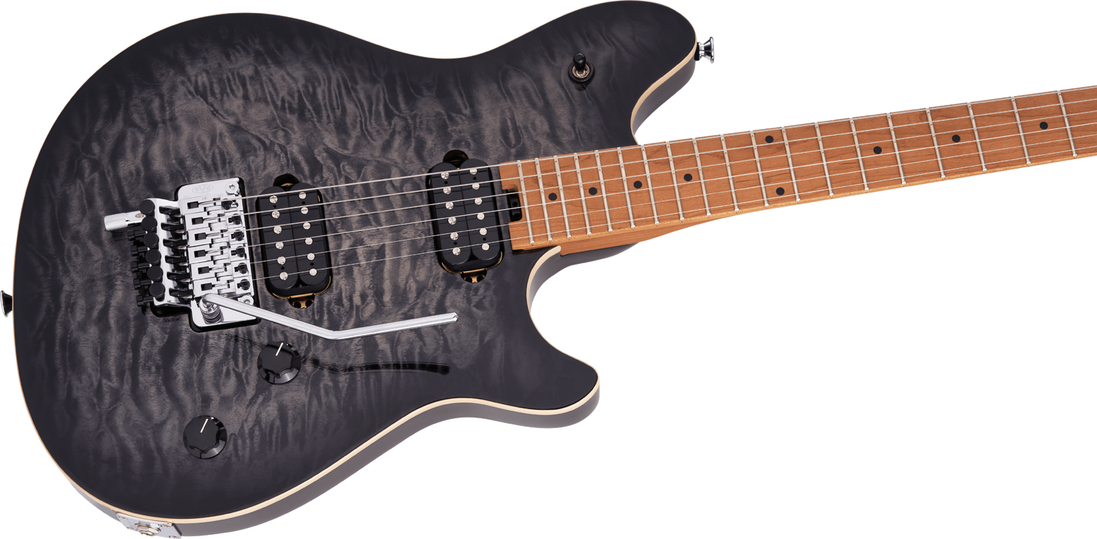 The EVH Wolfgang Special QM is built for players who demand fast response, stable tuning, and consistent tone under high-energy playing. The basswood body keeps the overall weight balanced and responsive, while the arched quilt maple top adds snap and upper-mid definition, helping notes stay clear under gain. A quartersawn baked maple neck with graphite reinforcement increases stiffness, supporting tuning stability and a direct, immediate feel across the fretboard.
