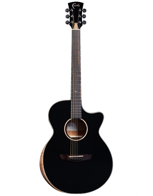 The Faith Eclipse Venus Cutaway Electro is a modern reimagining of a classic auditorium design, purpose-built for stage performance. With a solid Engelmann Spruce top and solid Mahogany back and sides, it delivers a beautifully balanced tone with warmth, clarity, and focus. The sleek gloss black finish and solid figured maple binding give it a commanding stage presence, while the ergonomic figured maple forearm contour enhances playing comfort. Equipped with Fishman’s revolutionary INK BODY preamp system, it combines the precision of an undersaddle pickup with the dynamic response of an under-bridge body sensor, capturing every nuance of your performance. Ethically built and completely free from animal products, it’s as sustainable as it is striking. Complete with a premium black woodshell hardcase, this Venus is both elegant and road-ready. At Riffs & Licks Music, we think it’s the ultimate all-solid stage acoustic.