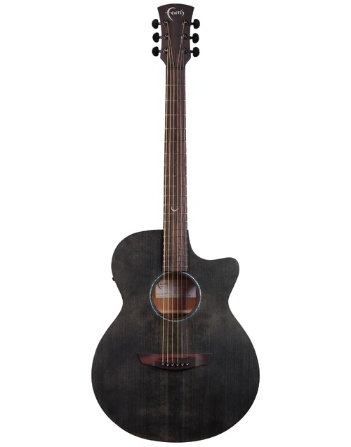 The Faith Naked Venus Black Stain is a striking take on the award-winning Venus design, featuring a solid Engelmann spruce top and solid mahogany back and sides, dyed black but still allowing the natural wood grain to shine through. The satin finish keeps the tone lively and resonant, while the auditorium body with cutaway provides excellent balance, projection, and comfortable playability. Its naturally varied ‘denim-like’ patina gives each guitar a unique character. A striped ebony fingerboard and bridge complete the understated look. Equipped with a Fishman Presys 1 preamp and undersaddle pickup, this guitar is stage-ready with onboard tuner, EQ contour, and phase control. Supplied with a padded gig bag for safe transport. At Riffs & Licks Music, we think the Naked Venus Black Stain is perfect for players wanting the tonal and visual character of solid woods with a moody, distinctive aesthetic.