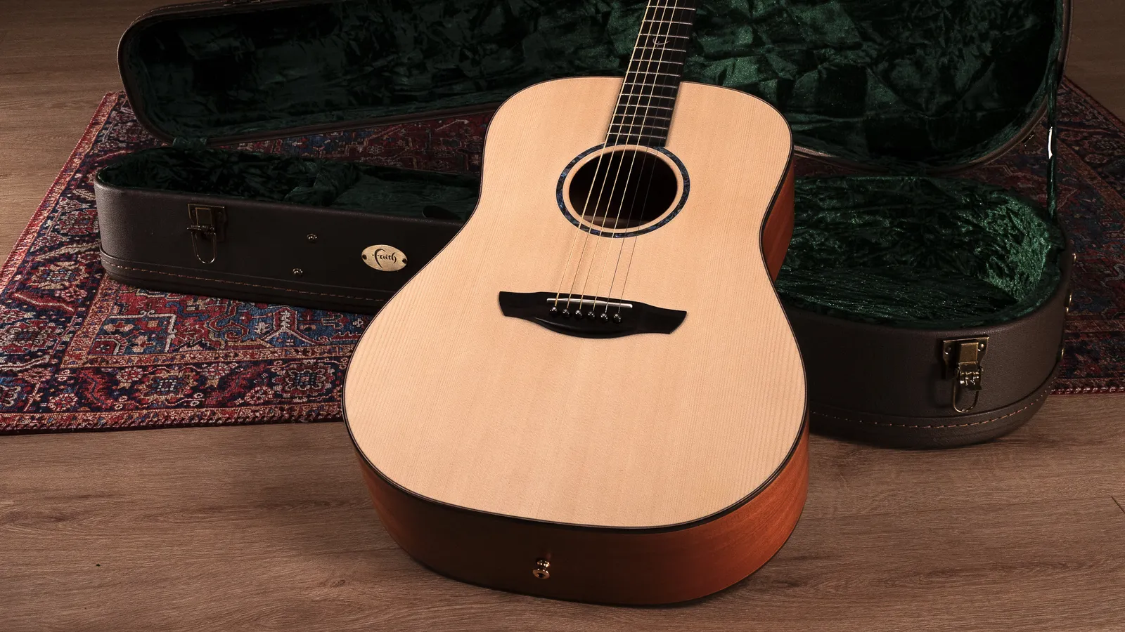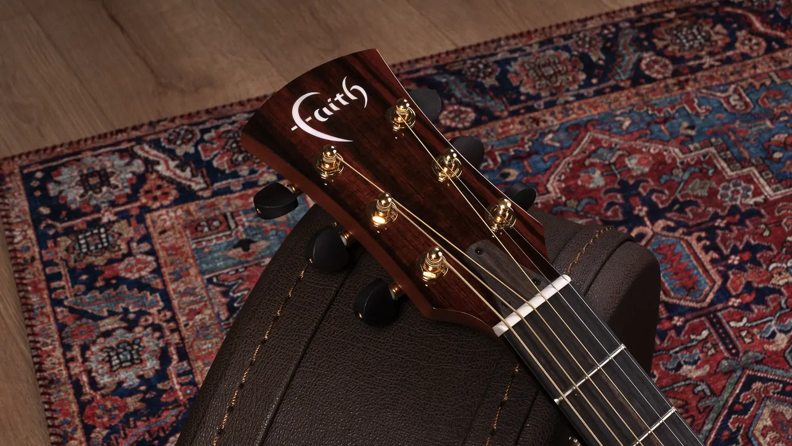 The Faith Natural Saturn is the original Faith dreadnought — bold, balanced, and built entirely from solid tonewoods. Featuring a premium Engelmann Spruce top paired with solid Indonesian Mahogany back and sides, this model produces a warm, articulate tone with impressive projection and clarity. Its gloss lacquered top enhances focus and presence, while the satin-finished back and sides allow for natural resonance and a smooth, organic feel. Appointed with Macassan Figured Ebony for the fingerboard, bridge, and headplate, and finished with solid Rosewood binding, the Natural Saturn exudes understated elegance. Perfect for strummers and singer-songwriters alike, it delivers the classic dreadnought sound that defined generations of acoustic music. Complete with a plush-lined hardcase, the Saturn is as durable as it is beautiful. At Riffs & Licks Music, we think this guitar is a timeless workhorse with the soul of a vintage classic.