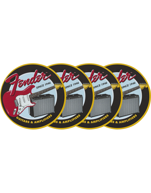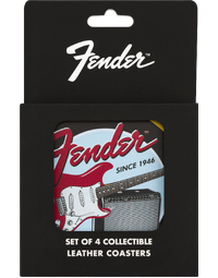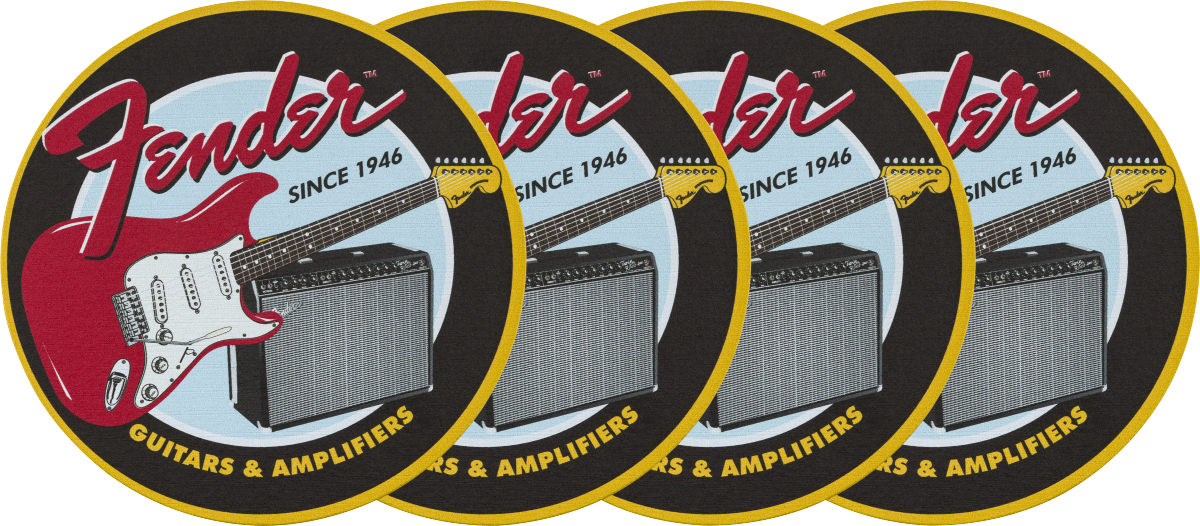 Fender's ventures in 1946 set the stage for the company's future success, establishing a legacy of innovation, quality, and influence in the world of electric guitars and amplifiers. The guitars and amplifiers crafted in those early years epitomized ingenuity, setting new standards for tone, reliability, and playability Fender's beautiful leather 1946 guitars and amps 4-piece coaster set is the perfect complement for your home or office. Your drinks have never looked more enticing under one of these coasters.