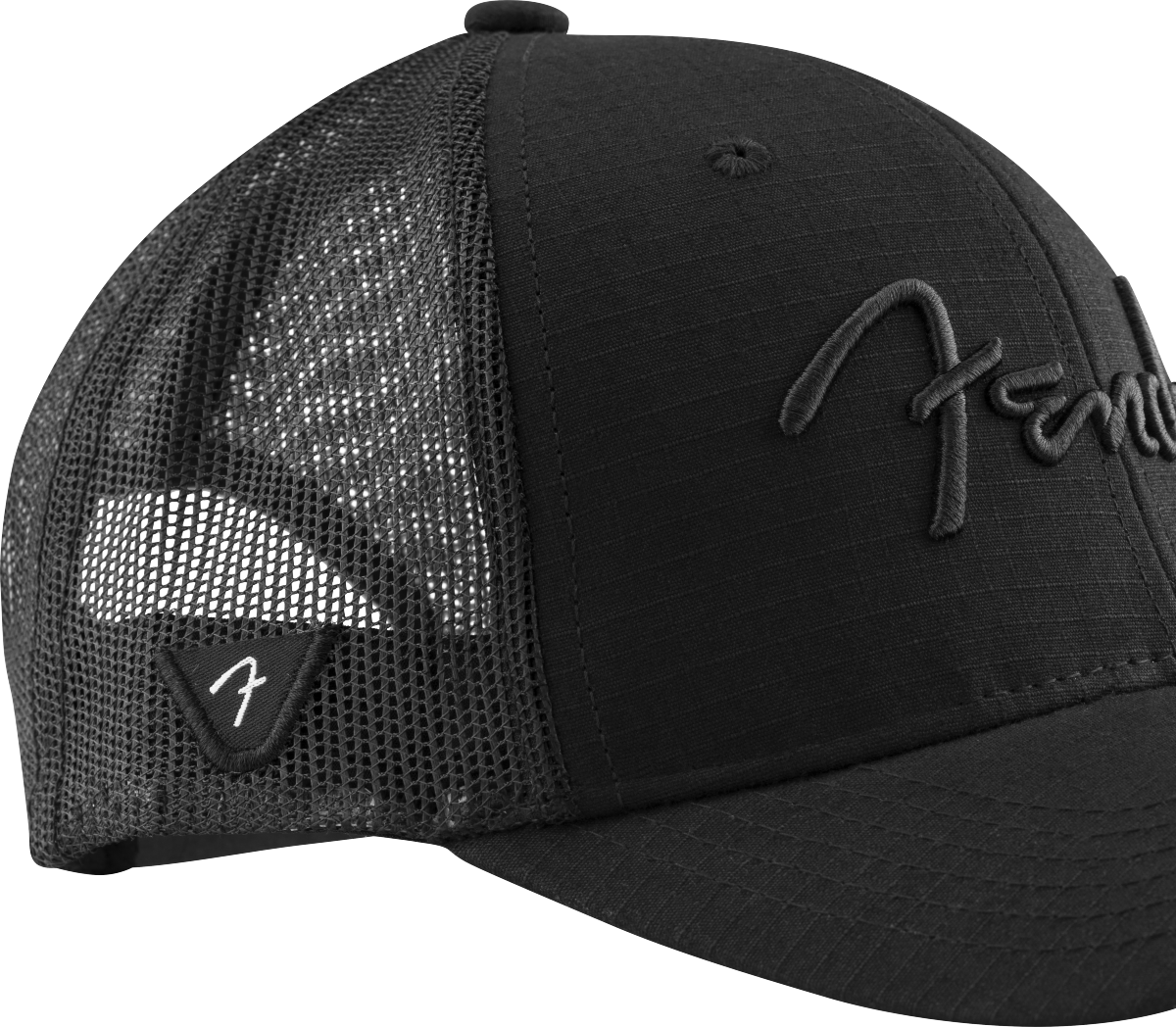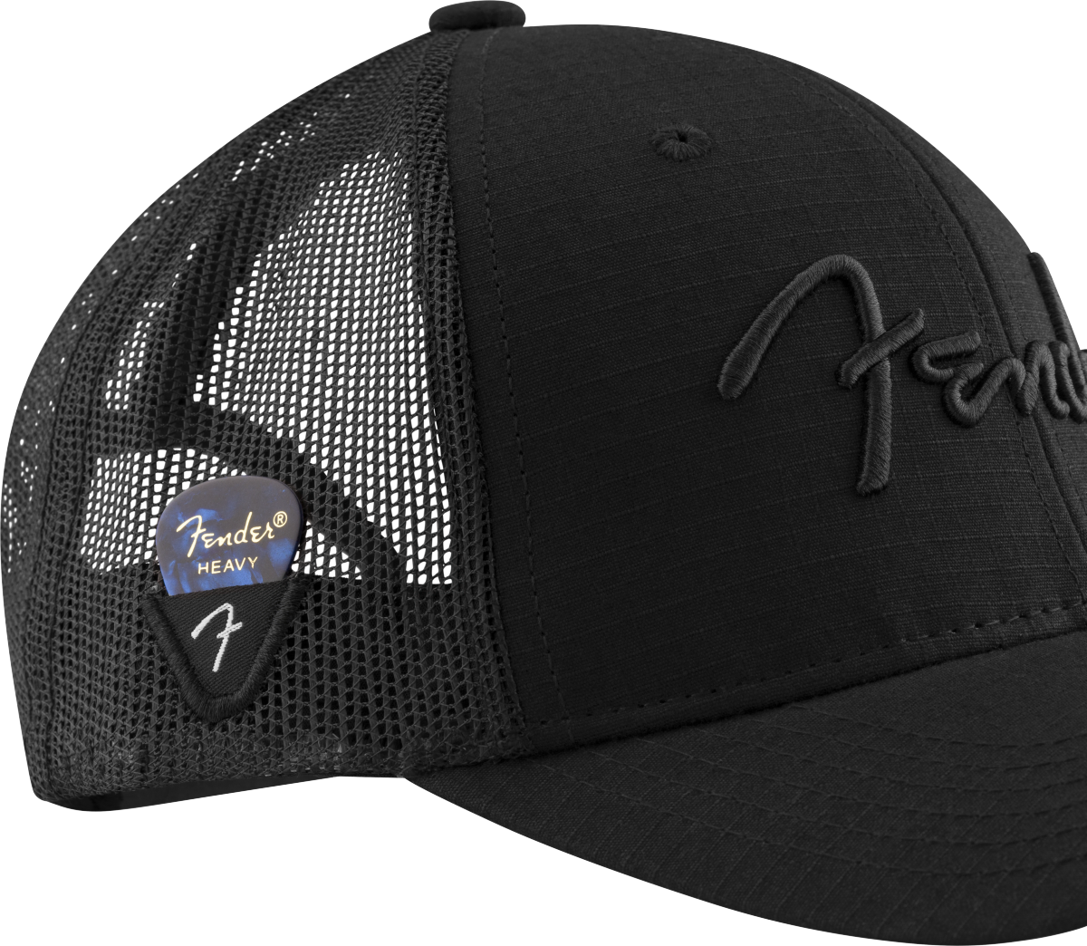 Fender 6 Panel Mesh Back Pick Pocket Hat Black