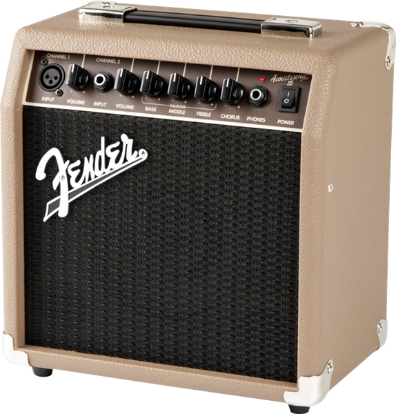 The Fender Acoustasonic 15 is a compact 15 watt acoustic combo designed for players who need clear amplification for both guitar and voice. Its 6 inch Fender Special Design speaker offers enhanced high-frequency response, helping acoustic instruments sound natural and articulate at lower volumes. Two independent channels let you balance guitar and microphone levels easily, each with full EQ for shaping your sound. The instrument channel also includes a chorus effect that adds subtle depth and shimmer. With its lightweight plywood cabinet, headphone output and classic Fender brown-and-wheat styling, it’s a practical amp for home use, busking, teaching, small gigs or basic public address.