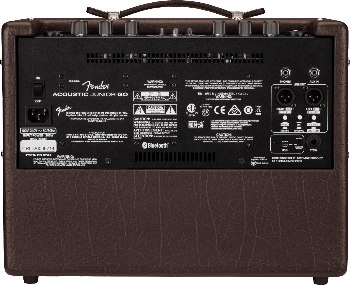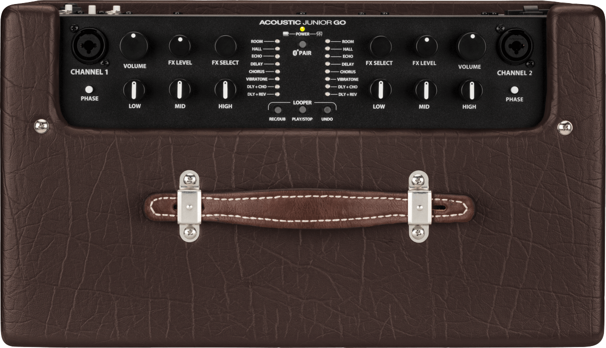 The Fender Acoustic Junior GO amplifier delivers full, natural, best-in-class performance for acoustic-electric guitar and vocals. This powerful, portable system has two channels designed for instrument or microphone use, each with studio-quality effects. Other convenient features include Bluetooth wireless audio streaming and an onboard 90-second looper perfect for solo shows. And its rechargeable battery means that you can unplug it from the wall and take your music anywhere!