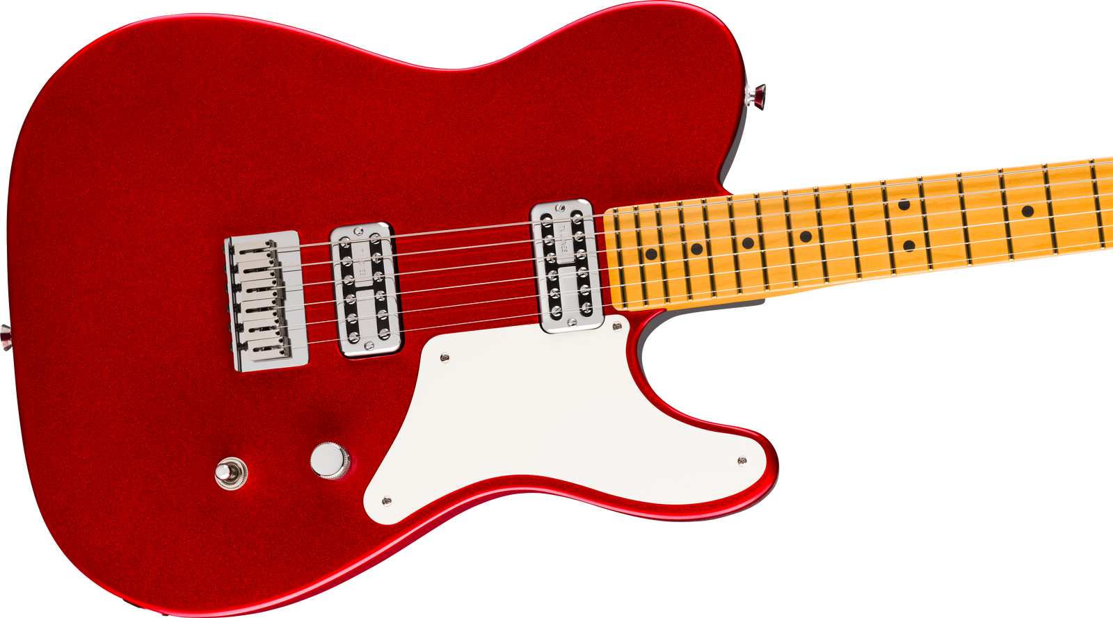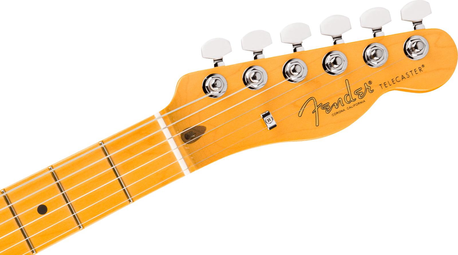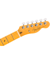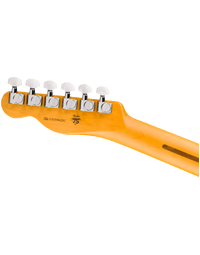 The six-saddle string-through-body bridge with polished block steel saddles allows precise intonation adjustment while maintaining the strong attack associated with Telecaster bridge designs. Deluxe sealed tuning machines with pearloid buttons offer smooth tuning response and stable pitch during extended playing.