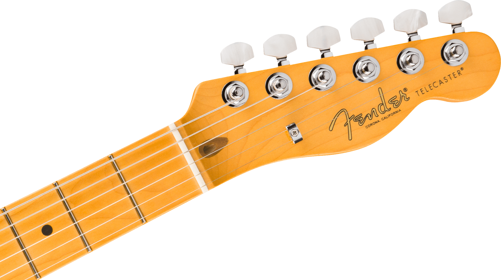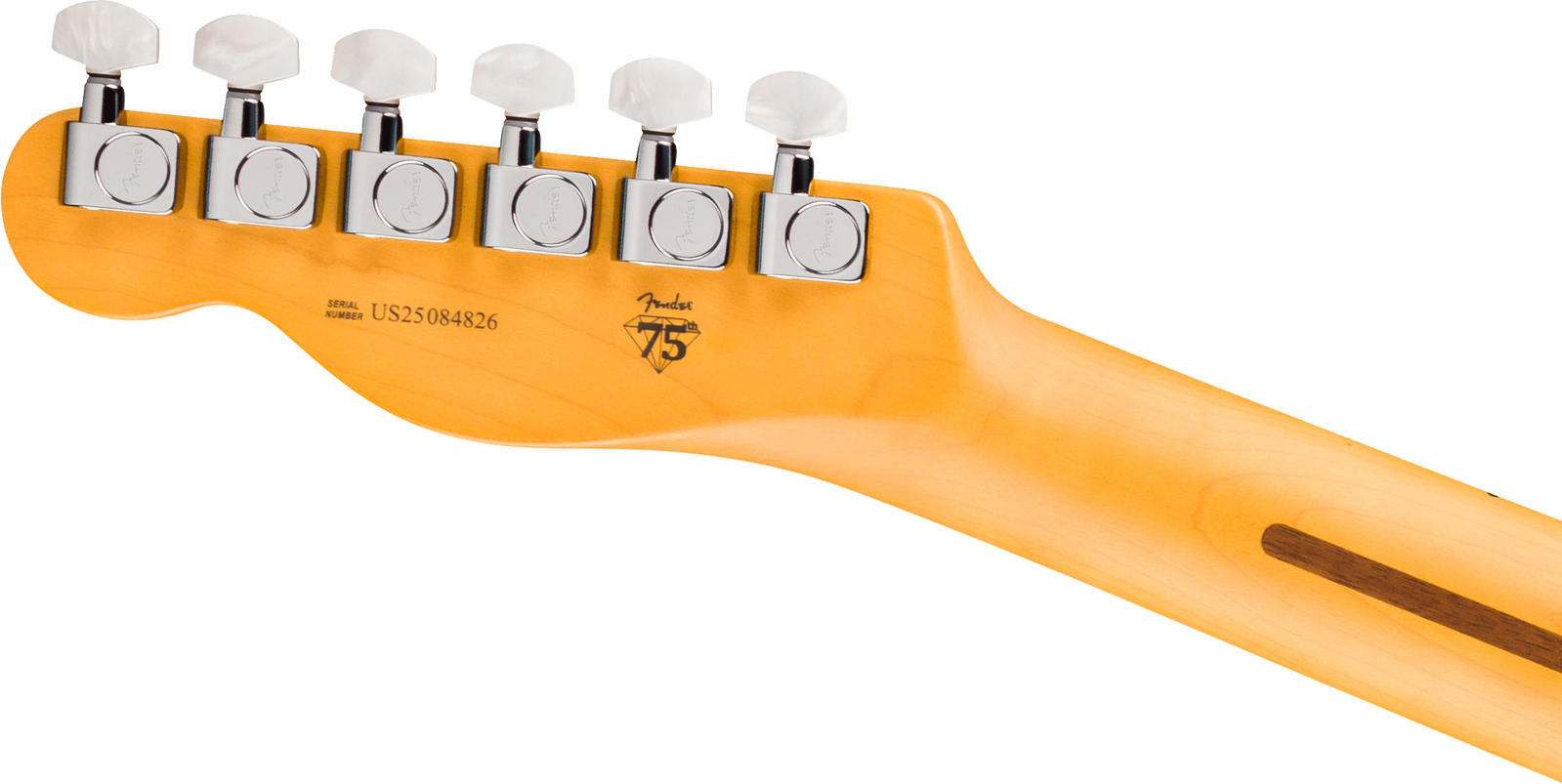 The six-saddle string-through-body bridge with polished block steel saddles allows precise intonation adjustment and reinforces the direct attack associated with Telecaster bridge designs. Deluxe sealed tuning machines with pearloid buttons provide smooth tuning action and reliable stability during long rehearsals, recording sessions and live performances.