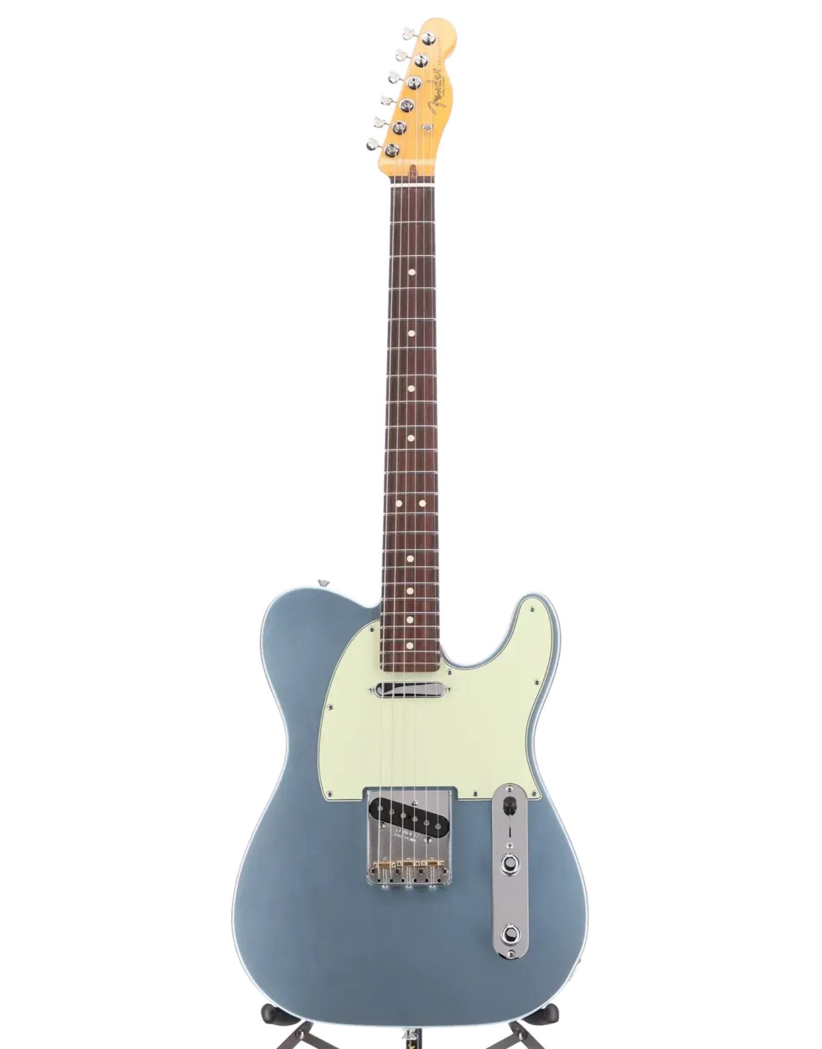 The Fender American Professional Classic Telecaster in Mystic Ice Blue blends vintage tone with modern precision. Its alder body provides a resonant, balanced foundation, while Coastline ’63 Telecaster pickups deliver the signature twang, clarity, and warmth players love. A Modern “C”-shaped maple neck with a rosewood fingerboard and 9.5" radius ensures effortless playability and smooth bending. Staggered ClassicGear tuners keep tuning stable, and the Greasebucket Tone System offers refined tonal control without excess bass.