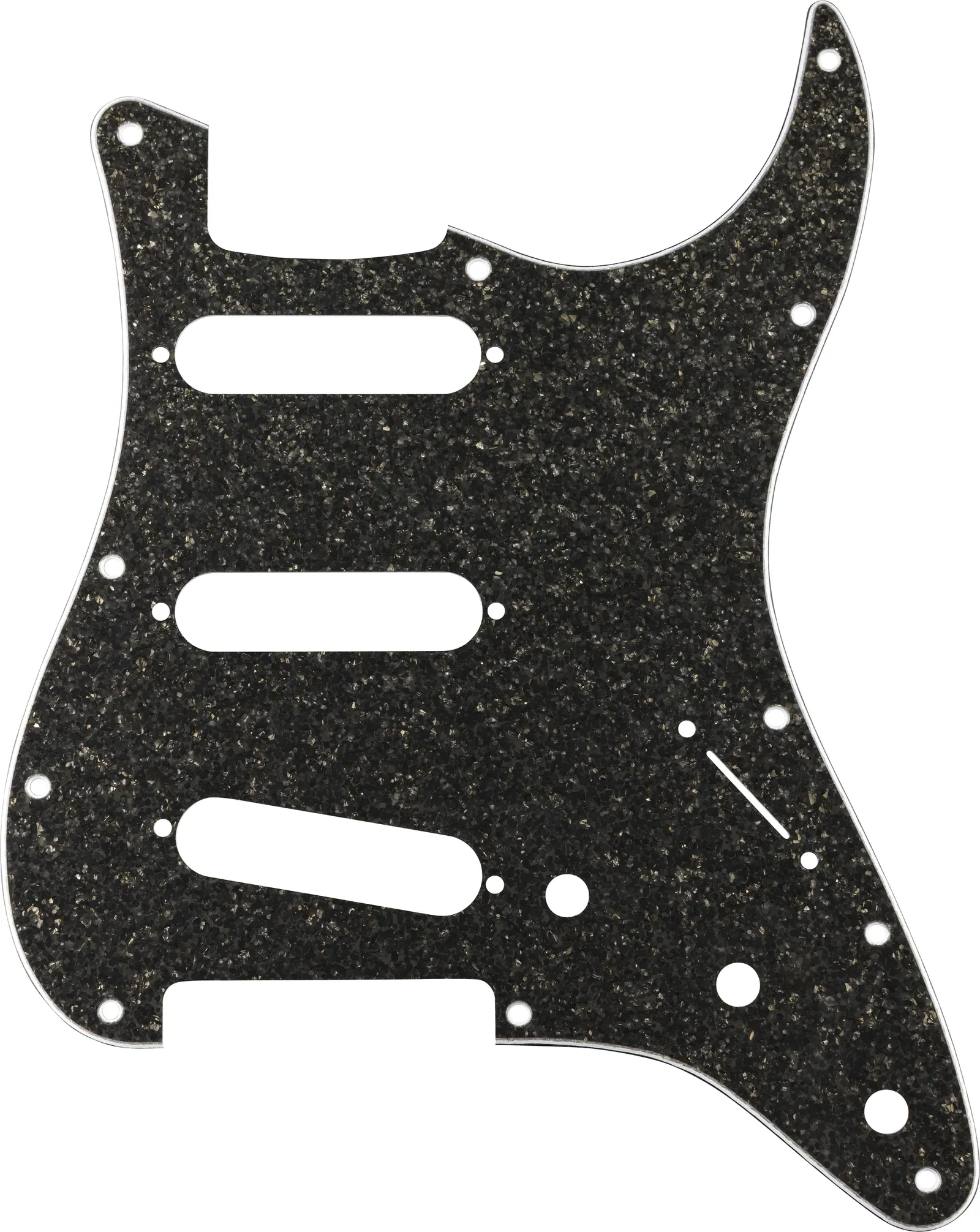 The Fender American Hybrid Glass and Glitter Stratocaster pickguard is designed to change the look of a Strat quickly and dramatically without altering the instrument itself. A hybrid surface blends glass glitter with traditional sparkle, creating a layered, multi-dimensional finish that reacts strongly to stage and room lighting rather than appearing flat or uniform.