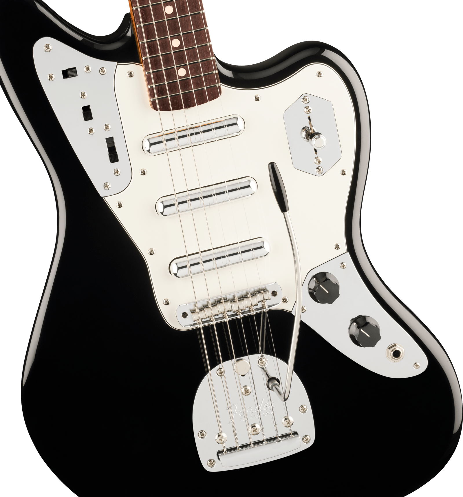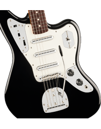 The Fender American Limited Edition Johnny Marr Signature Special Jaguar in Black reimagines the indie legend’s beloved 1965 Jaguar with fresh detail and sonic depth. Crafted with a gloss nitrocellulose black lacquer finish over an alder body, it delivers both vintage style and modern performance. The custom-shaped maple neck, modelled on Marr’s original, pairs beautifully with a 9.5" rosewood fretboard for smooth playability and a familiar, broken-in feel. Three custom-wound Kent Armstrong lipstick pickups, combined with Marr’s unique wiring configuration, unlock a vast tonal range—from bright, jangly textures to rich, full-bodied warmth. A Jaguar bridge with Mustang saddles ensures stable tuning and precise intonation, while the vintage-style floating tremolo adds expressive character. Complete with vintage tuners and a hardshell case, this limited edition celebrates one of modern rock’s most distinctive guitar voices.