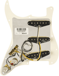 Inspired by the original era of the Fender Stratocaster, these single-coil '59 Strat pickups deliver a round, warm tone with a sweet edge. With vintage bobbin construction and genuine original-era cloth wiring, each Fender Pure Vintage pickup is wound to precise specifications for traditional Fender tone and performance. The addition of a reverse-wound, reverse-polarity middle pickup eliminates 60-cycle hum in positions 2 and 4 while adding the classic Stratocaster quack to those positions.