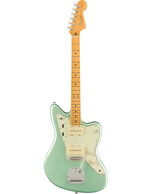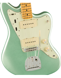 The Fender American Professional II Jazzmaster MN, finished in Mystic Surf Green, is designed for players, drawing on over 60 years of Fender inspiration, innovation, and evolution. Comfortably play your favourite licks for hours, with a sculpted neck heel, Deep "C" profile Maple neck, with 'Super-Natural' satin finish, and a Maple fingerboard with 22 Narrow Tall frets and smooth rolled fretboard edges. A pair of V-Mod II Jazzmaster single-coil pickups make for the most articulate Jazzmaster chime and sparkle that Fender has ever created. A tap function in the Bridge pickup further expands the Jazzmaster's sonic palette, adding a vintage lower-output powerful throaty tone.